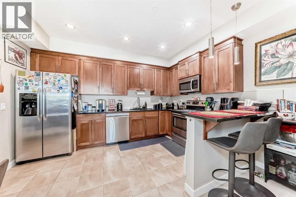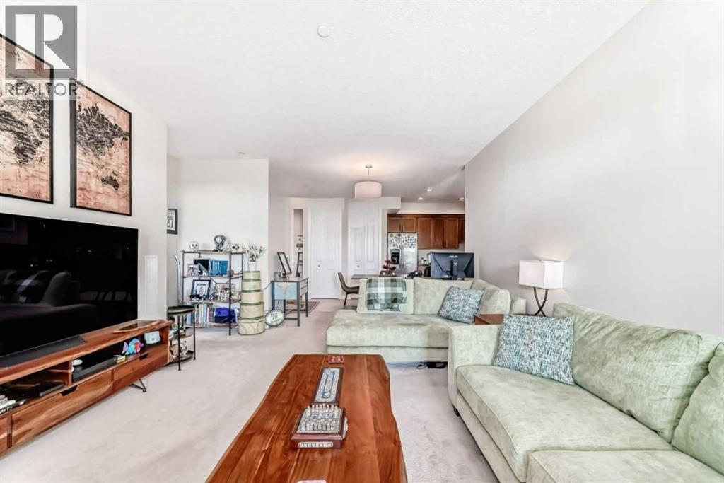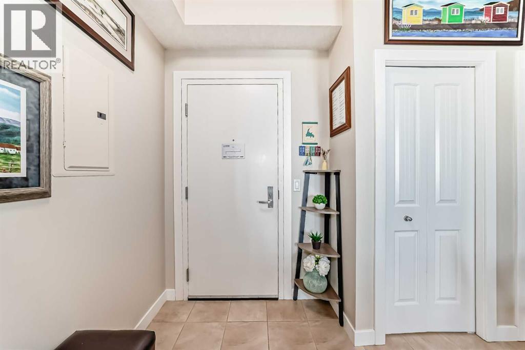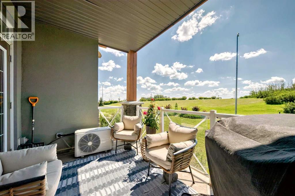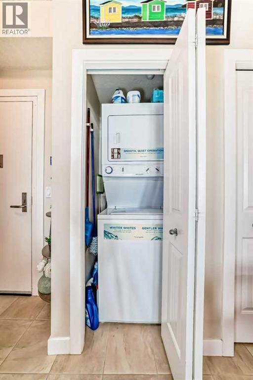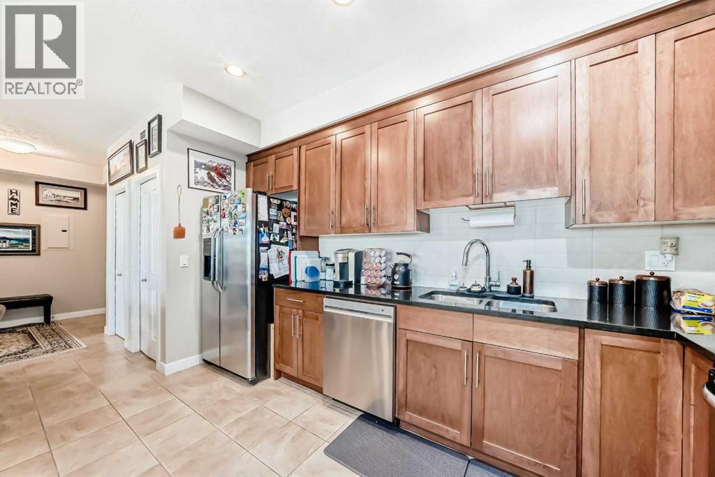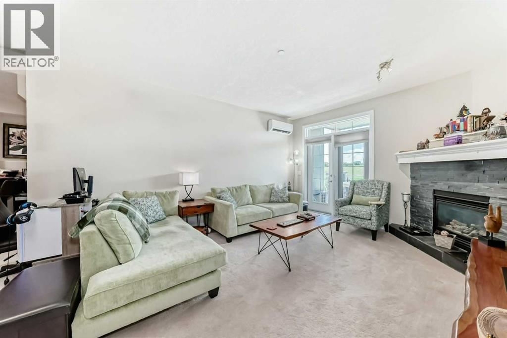 Location, location, location!! One of the largest units in the Savana Condos of Strathmore offers a prime location within walking distance to the lake, pond, and all nearby amenities. With over 1,000 square feet of living space, this spacious two-bedroom, two-bathroom condo is an excellent opportunity for both homeowners and investors. The unit includes three titled parking stalls—one tandem heated underground stall (with extra storage in front) and one titled exterior surface stall. Underground stall is 111 and surface stall is 205 Inside, the layout is open and inviting with open concept from the living room to the dining area and kitchen. The kitchen is thoughtfully designed with abundant cabinet space, upgraded stainless steel appliances including a fridge with water and ice, a large L-shaped island with an eating bar, a pantry, and granite countertops. Ceramic tile flooring is featured in the kitchen and bathrooms, while the rest of the unit is finished in carpet. The living room offers a cozy gas corner fireplace and access to a spacious balcony with a lovely view. The master bedroom is impressively large and filled with natural light from multiple windows. It includes a walk-through closet that leads to a luxurious five-piece ensuite with double sinks, a separate shower, and a soaker tub. The second bedroom is also generous in size with plenty of closet space, and there's an additional four-piece bathroom for guests. For added comfort, the unit features in-floor heating, air-conditioning unit on the deck and wall unit in living room, and a washer and dryer are conveniently located in-suite. This well-managed complex is known for its popularity and desirability. Currently, the property is tenanted with a lease in place until June 2026 at $2,000 per month. The tenant is open to extending their stay, making this a strong investment opportunity for those looking to secure a reliable rental income. Please note that while dogs are not permitted in the complex, cats are allowed with board approval. (id:55577)