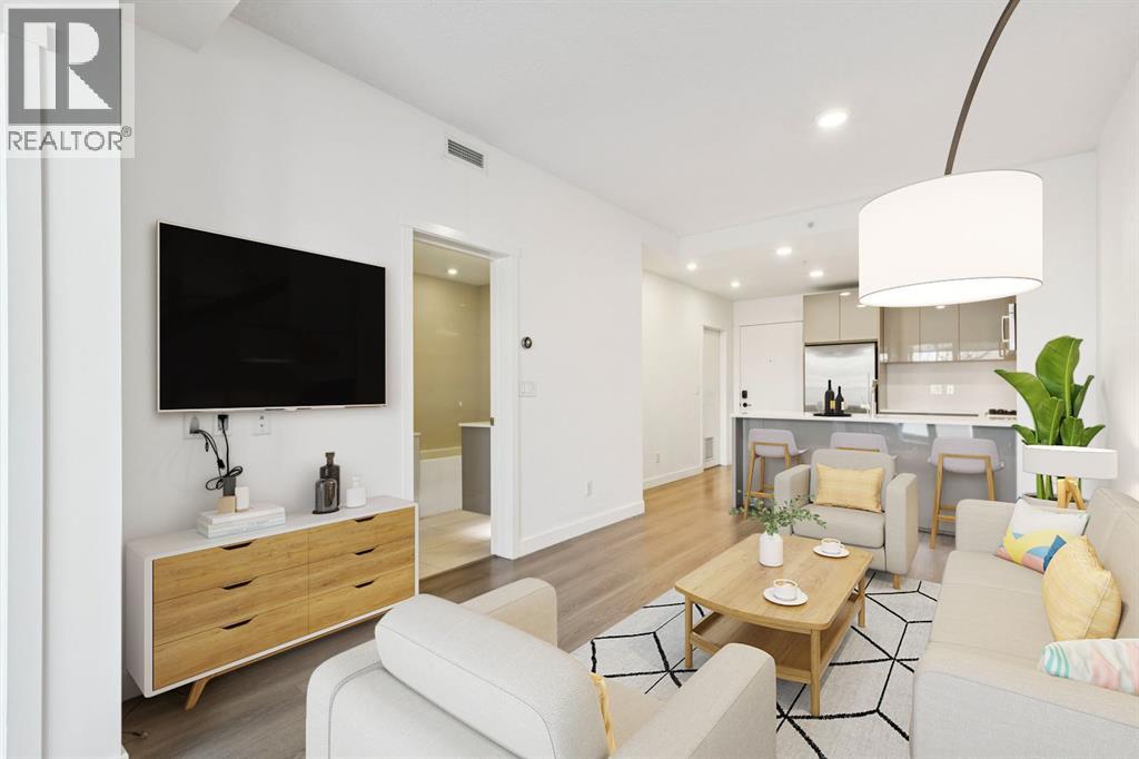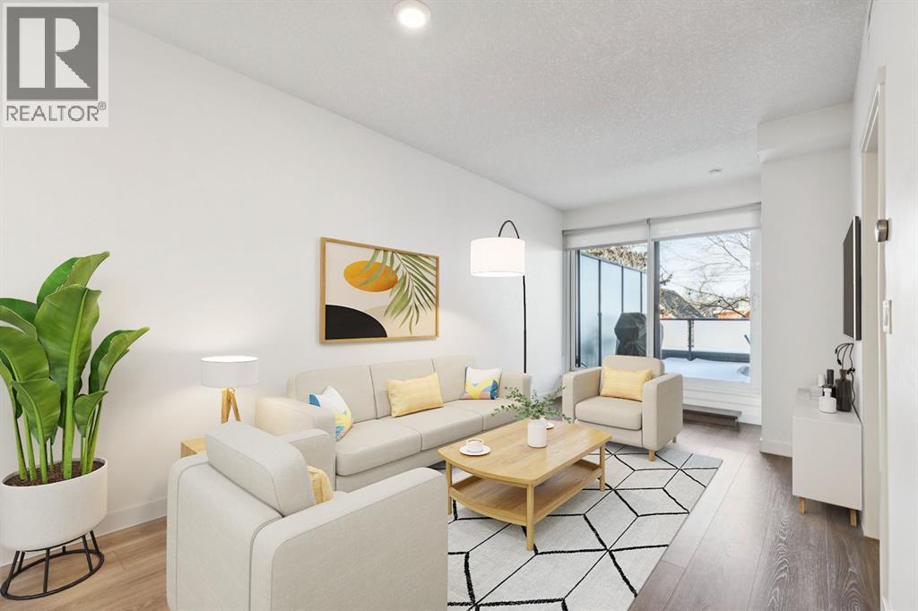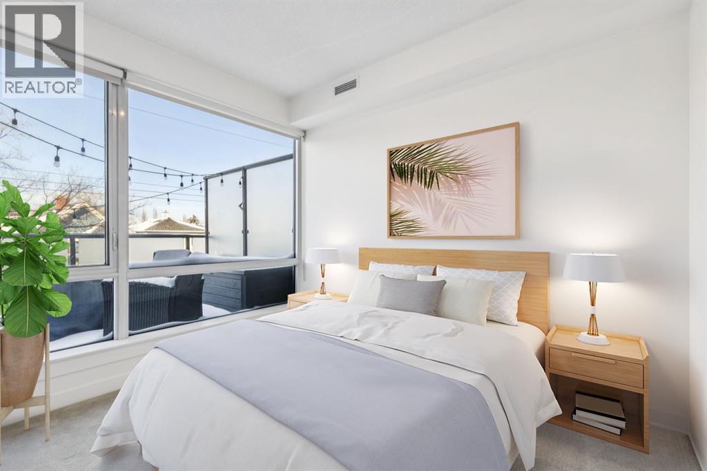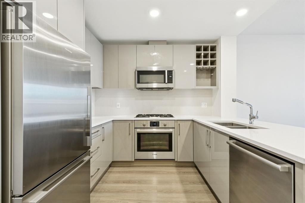 Elevate your urban lifestyle in this sophisticated second-floor sanctuary, tucked away on the quiet west side of the prestigious, concrete-built Kensington building. While many one-bedroom condos feel confined, this residence breaks the mold with an expansive, oversized patio. This massive outdoor footprint is a rare architectural feature reserved for only a select few units in the building and acts as a seamless extension of your living space, perfect for hosting summer dinner parties under the stars or creating your own lush garden oasis in the heart of the city. Inside, the condo is a masterclass in refined style, anchored by a chef’s kitchen that punches far above its weight class. It is fully equipped with high-end Fisher & Paykel stainless steel gas cooktop & oven + Bosch fridge and dishwasher, plus a custom-integrated wine rack, all framed by elegant quartz countertops and a peninsula with seating for four. Practicality is a priority here with the inclusion of convenient in-suite laundry, an in-unit storage room, and a separate assigned storage locker for all your seasonal gear. The primary bedroom serves as a sun-drenched escape, featuring large windows and a walk-through closet that leads directly into the spa-inspired bathroom. This retreat offers a deep soaker tub, a separate glass-enclosed shower, and a sleek vanity with quartz countertops. Beyond the unit walls, the building offers a level of convenience rarely seen, including central air conditioning, titled underground parking, a dedicated car wash bay, and secure bike storage. Whether you are walking through Riley Park, commuting via the nearby Sunnyside LRT, or exploring the boutique shops and cafes of Kensington Village, this pet friendly residence offers the perfect balance of a serene retreat and vibrant urban vitality. (id:55577)