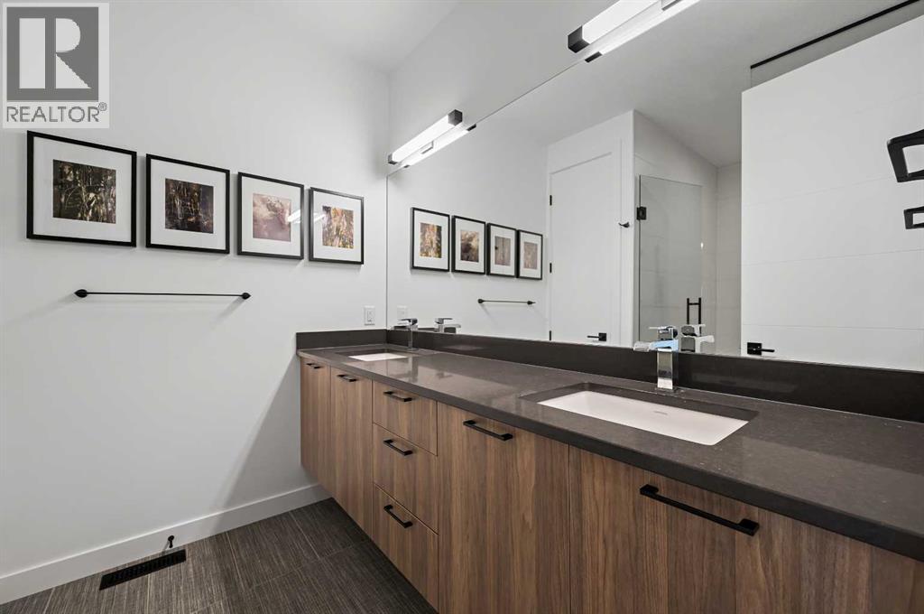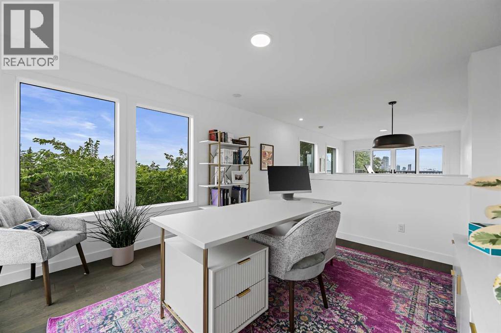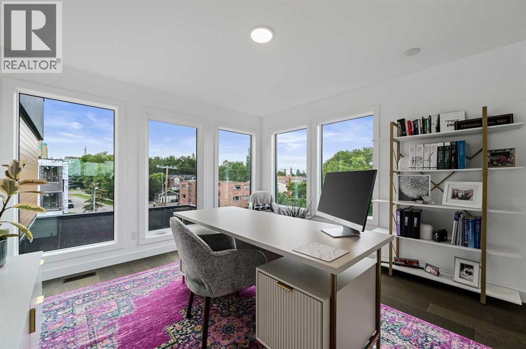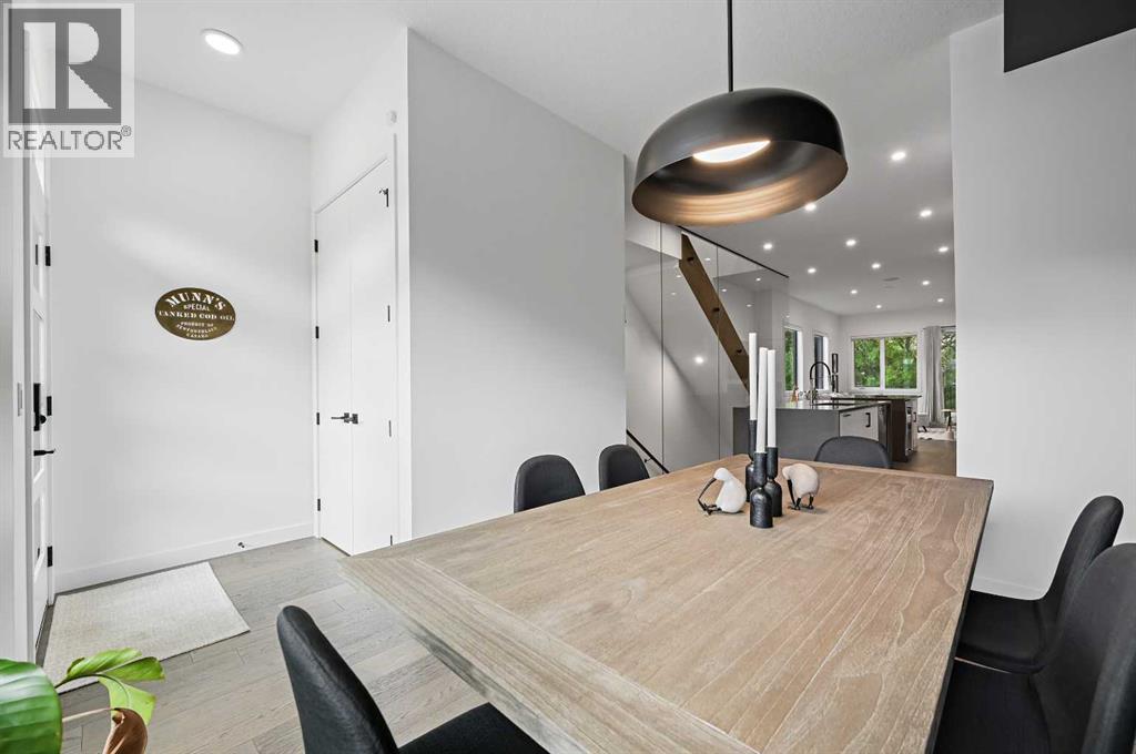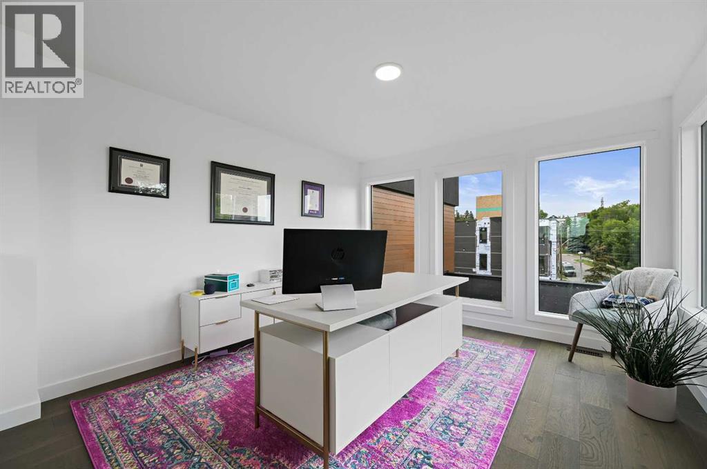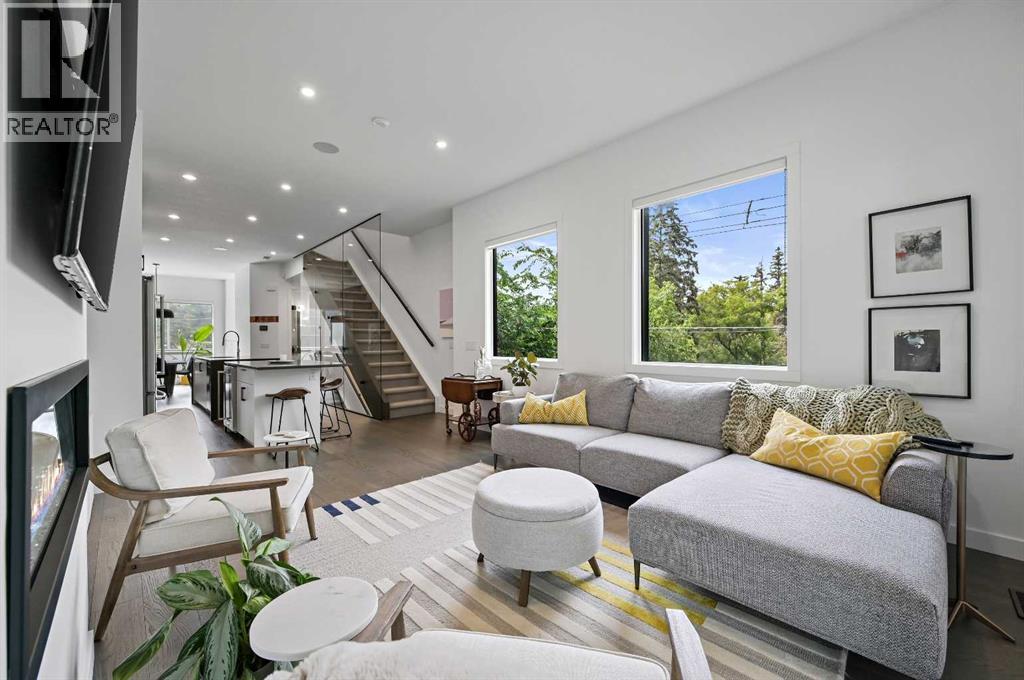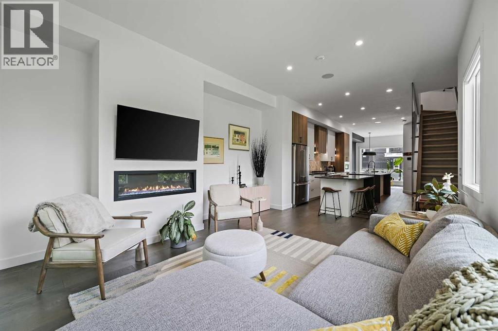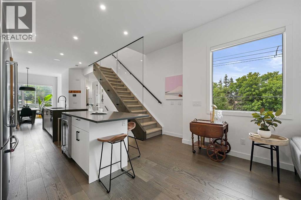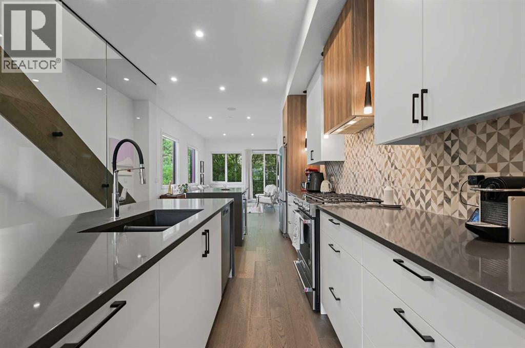 LUXURY. CONVENIENCE. COMMUNITY.Welcome to 2100 17A Street SW – a sophisticated urban retreat just steps from the energy and vibrancy of 17th Avenue. This beautifully designed end-unit luxury townhouse seamlessly blends upscale finishes, modern comfort, and low-maintenance living in the community of Bankview. From the moment you arrive, you'll notice the high-end upgrades and attention to detail that set this home apart. Key features include: A heated tandem garage with in-floor heating and parking for 3 vehicles (2 in the garage + large driveway), end unit backing onto a park for added privacy and green space, Soaring 10’ ceilings on the main level and 9’ ceilings on the upper level, spacious roof top patio. The main floor offers open-concept living ideal for both relaxing and entertaining. The gourmet kitchen is a true showpiece, featuring dual quartz waterfall islands, premium stainless steel appliances, and custom cabinetry. The living area is anchored by a sleek electric fireplace and opens to a private patio—perfect for morning coffee or evening cocktails. Upstairs, the primary suite is a private sanctuary with custom built-ins, a spa-inspired ensuite, and a walk-in closet. A spacious second bedroom, full bathroom, and a large, well-appointed laundry room complete this level. On the top floor, discover a versatile loft/bonus room—perfect as a home office, fitness space, or even a third bedroom. Step outside onto your expansive terrace, an ideal space for entertaining under the stars and taking in the city skyline. The developed lower level walks out to a private fenced backyard surrounded by mature trees—an unexpected oasis offering tranquility and privacy in the heart of the city. Located just steps from trendy shops, top-rated restaurants, cozy cafés, and minutes from the downtown core, this home delivers the ultimate in walkability and urban lifestyle. Don’t miss this rare opportunity to own a truly luxurious inner-city townhome. (id:55577)