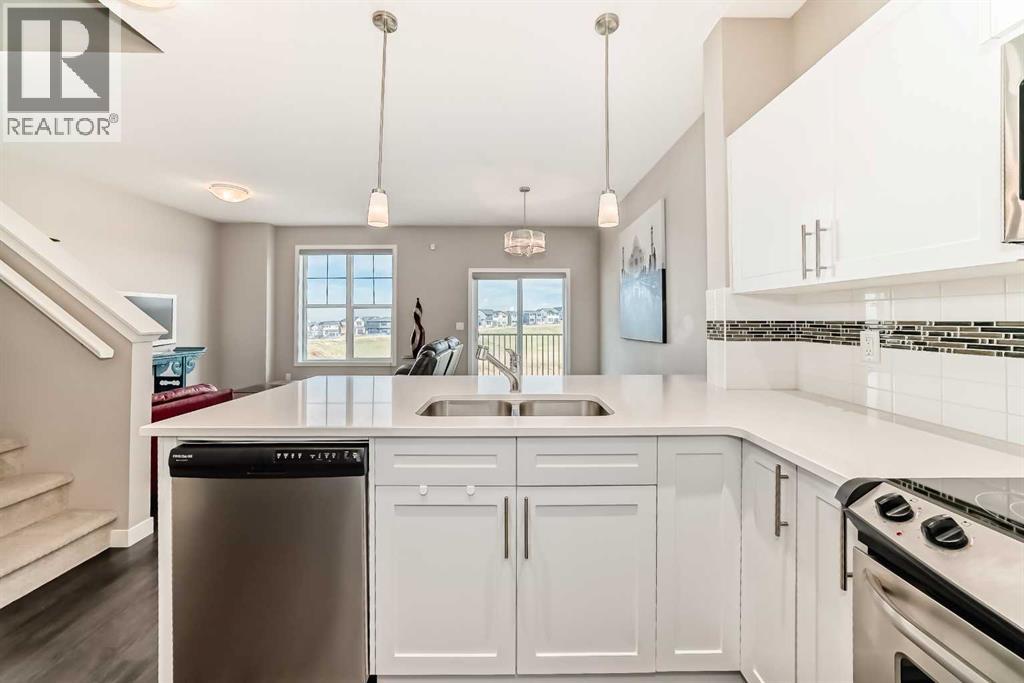 Welcome to one of the largest floor plans in the beautifully maintained Sonoma complex, located in the picturesque northwest community of Sage Hill. This exceptional home backs east onto a serene ravine with expansive green space, complete with walking and biking paths right at your doorstep. The east ravine location offers spectacular sunrise views from all three floors! The main floor features a 2-piece powder room, a versatile open den/dining area, and an elegant kitchen with quartz countertops, stainless steel appliances, and a breakfast bar. The kitchen overlooks a spacious dining area and an open living room, where large windows flood the space with natural light and provide access to a balcony with breathtaking ravine views. Stylish vinyl flooring enhances the modern, airy feel of the open layout. Upstairs, you’ll find dual primary suites, each with walk-in closets, ceiling fans, and private ensuite bathrooms—one with a large shower and the other with a soaking tub. One of the bedrooms also enjoys unobstructed ravine views. For added convenience, the laundry room is located on the upper level. The bright, unfinished walkout basement includes a rough-in for plumbing and offers endless possibilities for customization. Step outside to a covered concrete patio with direct access to the ravine pathways. Central air Conditioning. Additional highlights include an attached single garage and plenty of visitor parking within the complex. Nearby, you’ll enjoy a variety of retail shopping, restaurants, and cafés, along with quick access to Shaganappi Trail, Stoney Trail, and other major roadways. (id:55577)