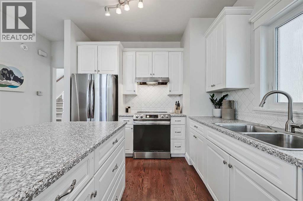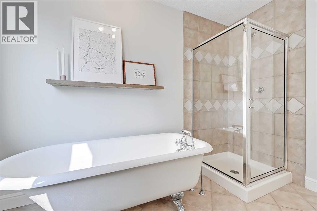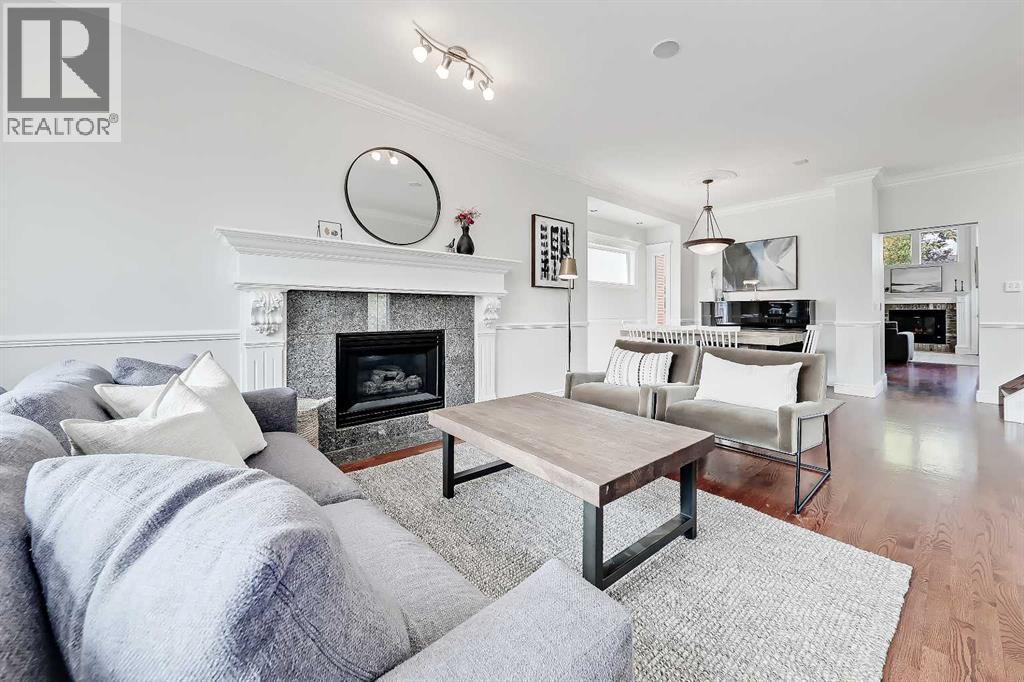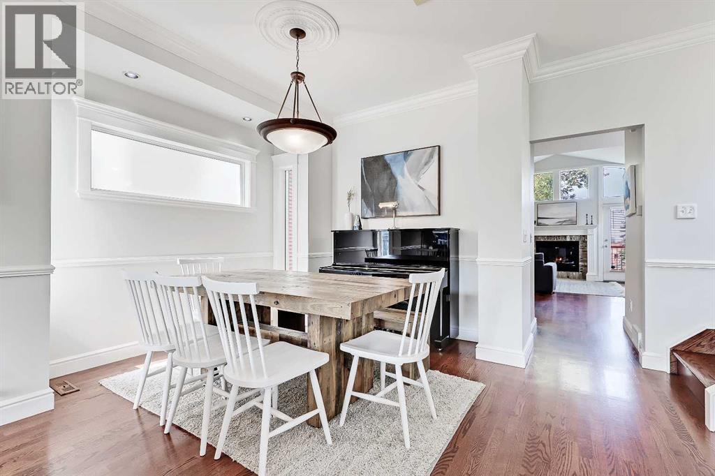 GORGEOUS EXECUTIVE HOME | HUGE PRIVATE YARD & DECK | A/C | GREAT LOCATION CLOSE TO DT & AMENITIES!Welcome to this well maintained and thoughtfully updated executive home, offering just under 2,000 sqft. of versatile living space and a backyard retreat rarely found in the inner city; this property strikes the perfect balance between urban convenience and private sanctuary. Set in a great community, walkable to playgrounds, sports fields, tennis courts, off-leash parks and schools, as well as the South Calgary Outdoor Pool, Giuffre Public Library and the vibrant shops, cafés and restaurants of Marda Loop and 17th Avenue.Step inside to discover an inviting open-concept layout where the living and dining areas flow seamlessly together. Hardwood floors, crown moulding, a cozy fireplace and oversized windows create a warm, sunlit space with plenty of room for hosting family dinners or relaxed evenings. A tucked-away powder room on the landing offers convenience, while the spacious kitchen at the rear of the home impresses with stainless steel appliances, classic white cabinetry, a centre island, tiled backsplash and ample pantry storage. The adjoining family room is a perfect gathering space featuring a second fireplace and a wall of windows overlooking the yard and deck. Upstairs, the primary suite is a true retreat with a vaulted ceiling, large windows that capture a skyline view and a large walk-in closet. The 2nd bedroom also impresses also featuring a vaulted ceiling, a dramatic feature window and a closet spanning the full width of the room. The spacious 5-piece bathroom offers a gorgeous free-standing claw foot tub, a separate fully tiled shower and a huge double sink vanity with loads of storage space. The lower level is as versatile as it is welcoming. It can easily serve as a 3rd bedroom with ensuite or a multi-use space for a home theatre, games room or office. Highlights include a built-in Murphy bed, custom entertainment unit, large windows and a brand ne w 3-piece bathroom with a sleek tiled shower and glass enclosure. From this level, you’ll also find access to the laundry/furnace room and the oversized single garage with exceptional storage capacity. The backyard is the true star - a rare inner-city retreat surrounded by greenery. The multi-level deck features an upper BBQ area and a sprawling lower-level ideal for entertaining or unwinding with family and friends. A generous lawn area and planter boxes complete the space and create a true outdoor escape that feels worlds away while still being just minutes from downtown.The list of additional features includes new front steps, posts and railing on the bright and sunny front balcony (2023), huge oversized front driveway for additional parking, central A/C, gorgeous oak hardwood, 9’ and vaulted ceilings, built-in and wall-mounted speakers on the main level, blinds package, most windows upgraded to triple pane (2021), newer paint, upgraded carpet on the upper level and more. Welcome Home! (id:55577)