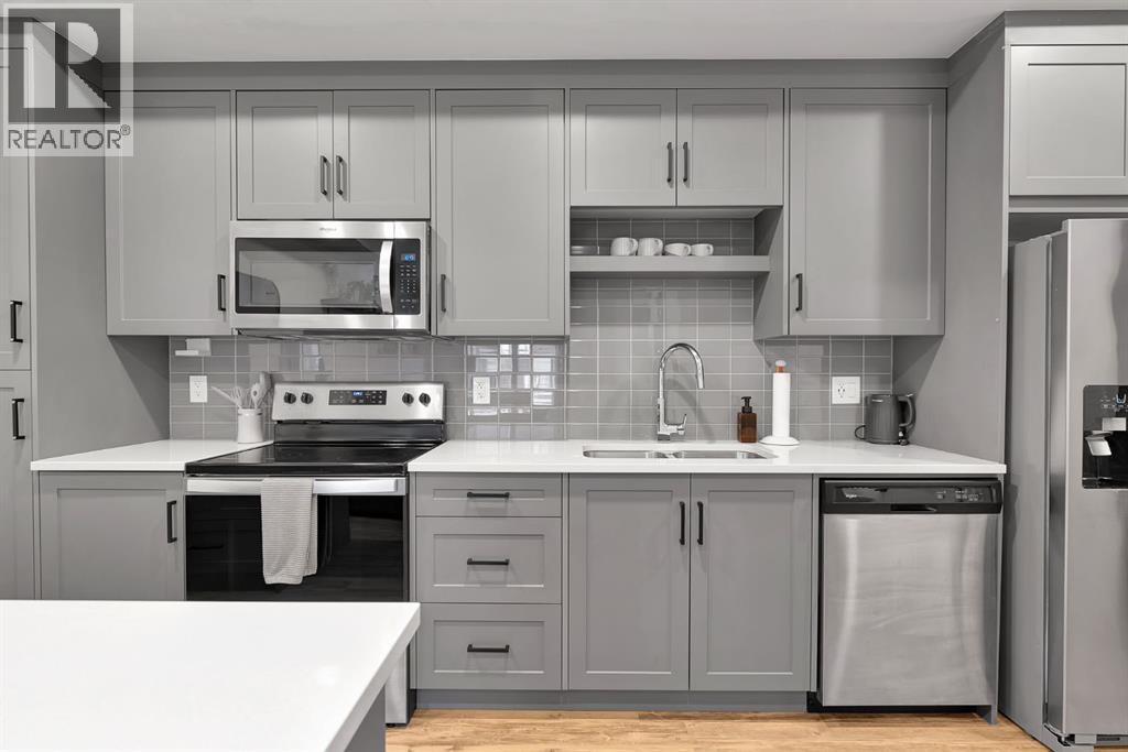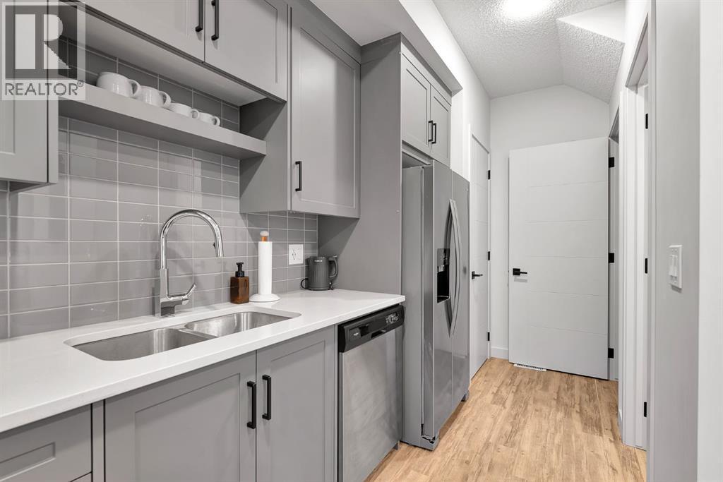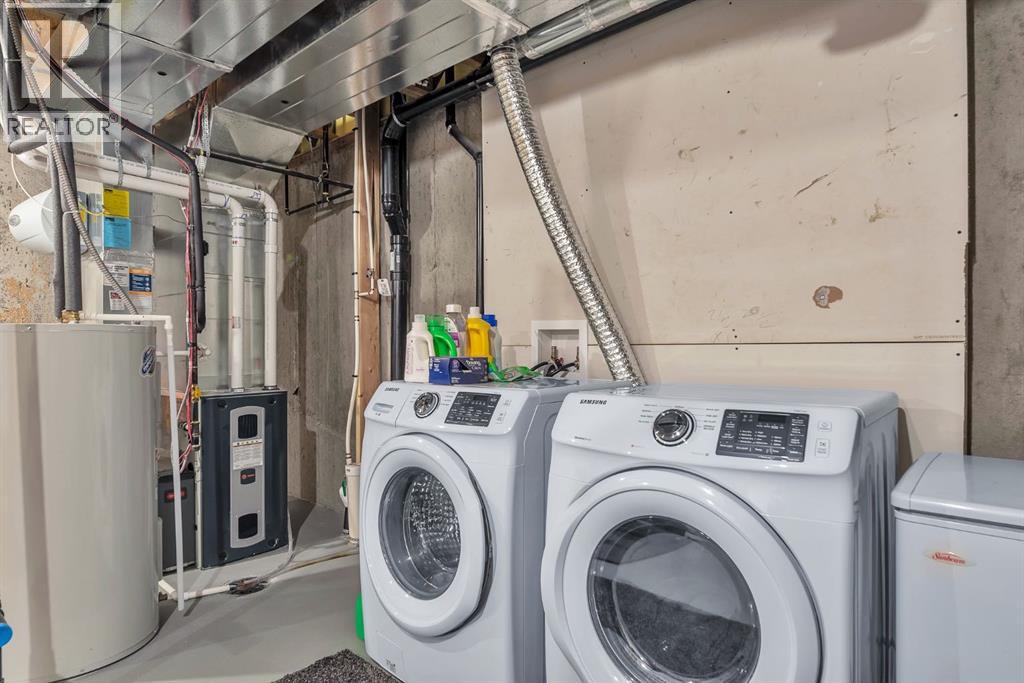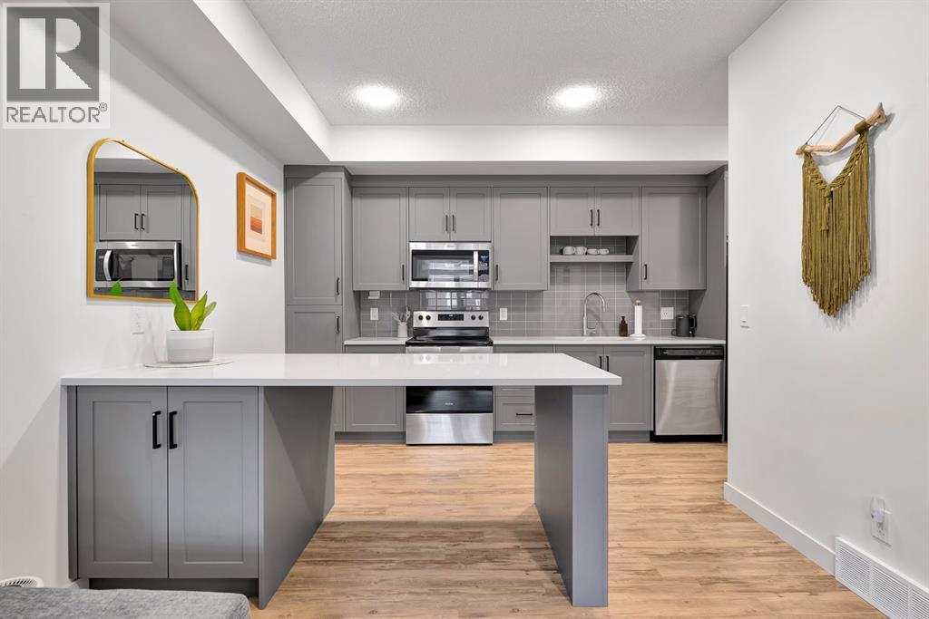 Welcome Home to this beautifully maintained HOMES BY AVI townhome offering nearly 1000 sq ft of stylish living space with 2 bedrooms and 2.5 bathrooms in one of Calgary’s most desirable communities. The open-concept main floor is bright and inviting, featuring LUXURY VINYL PLANK flooring throughout. The chef-inspired kitchen showcases shaker cabinetry, QUARTZ COUNTERTOPS, an oversized island, stainless steel appliances, and a subway tile backsplash, flowing seamlessly into the living and dining areas. A convenient half bath completes this level.Upstairs you’ll find two spacious bedrooms, each with its own bathroom. The primary suite includes a WALK IN CLOSET and PRIVATE ENSUITE, while the second bedroom is served by another full bath. Smart storage with both a linen and broom closet adds to the functionality. The undeveloped basement provides future potential with rough-in bathroom plumbing, front load laundry, and plenty of storage. Enjoy outdoor living in your fenced courtyard with concrete patio, and GAZEBO, perfect for summer BBQs. STAY COOL all summer long with CENTRAL AC. A titled parking stall is included, with visitor parking nearby. Outstanding location—steps to Fish Creek Park, schools, playgrounds, dog parks, and sports fields, plus quick access to shopping and dining at Township at Legacy. Easy commuting with nearby public transit, Stoney Trail, and Deerfoot Trail.This is modern, low-maintenance living at its best! (id:55577)