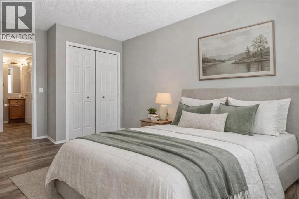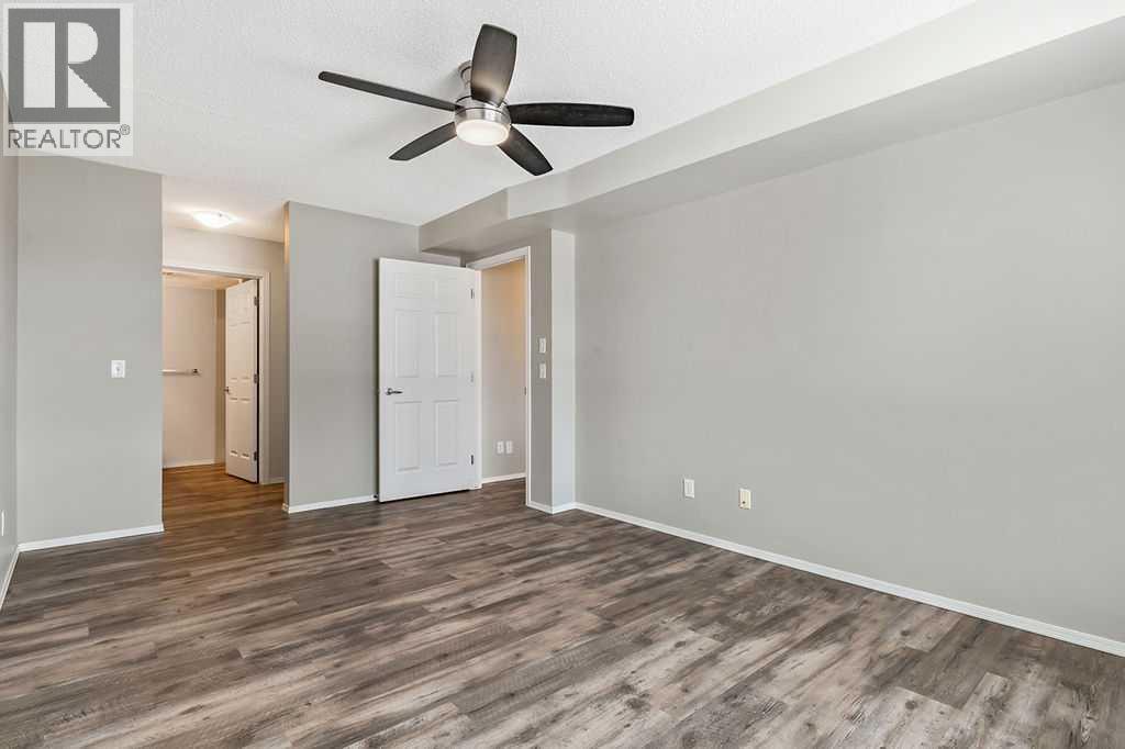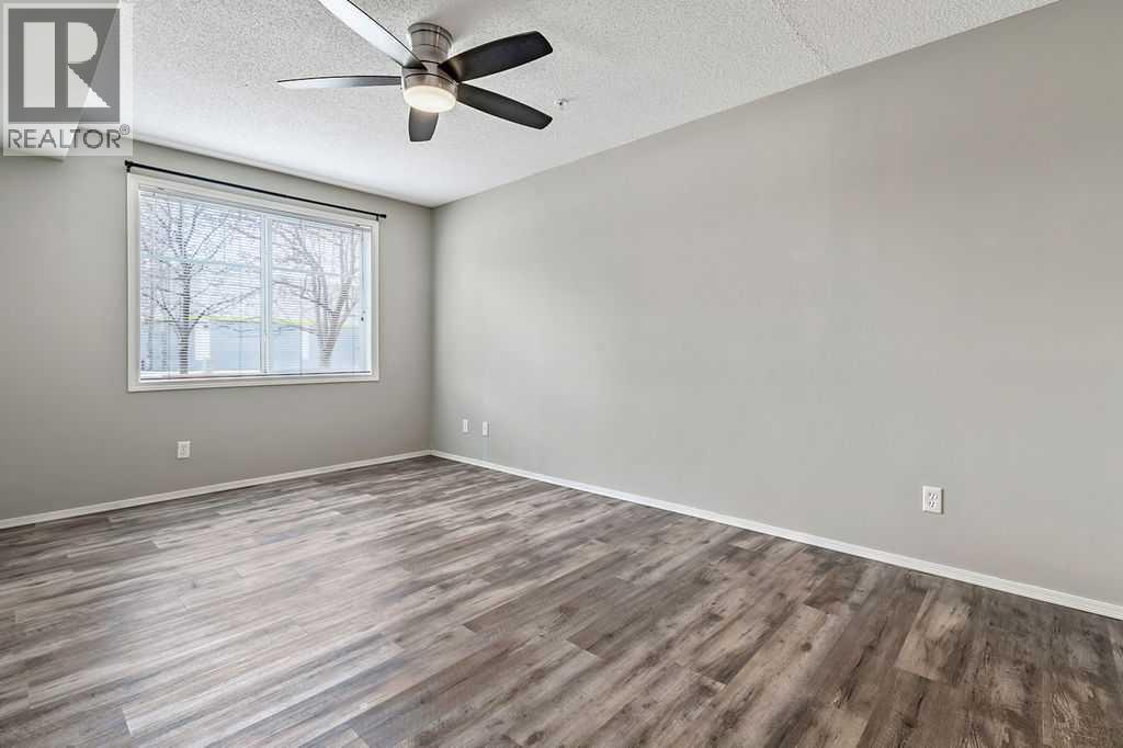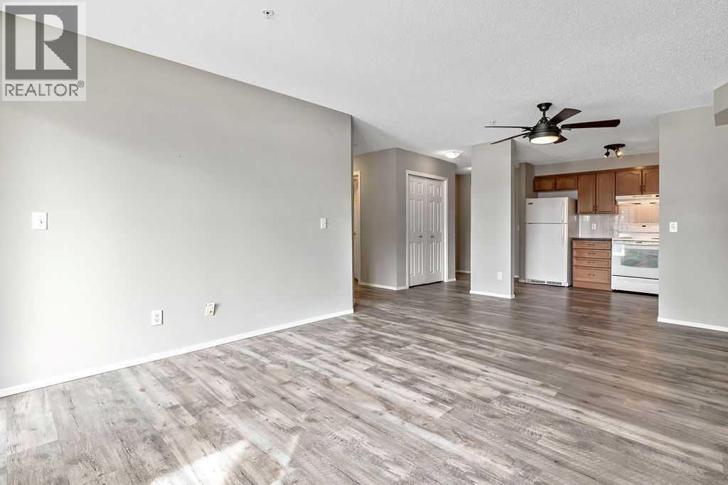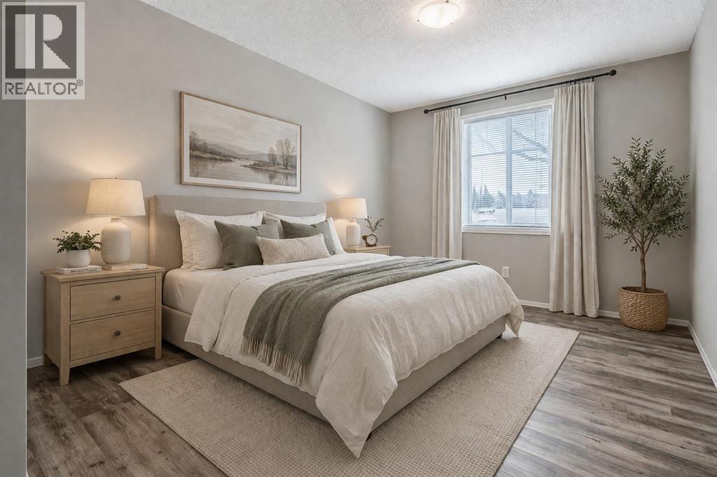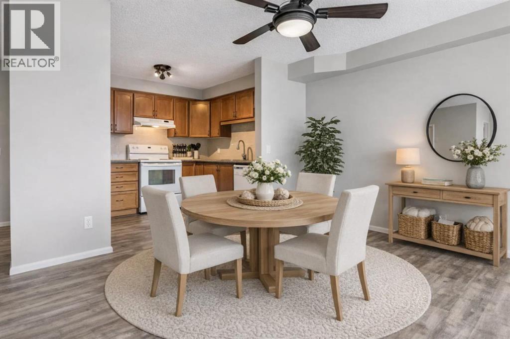 Welcome to Calvanna Village—an exceptional 55+ community known for its vibrant atmosphere and strong sense of connection. This bright and beautifully updated main-floor unit offers nearly 900 sq ft of comfortable living, featuring 2 bedrooms, 2 full bathrooms, in-suite laundry, and new vinyl plank flooring with fresh paint throughout. The open-concept layout includes a spacious kitchen with maple cabinetry, flowing into a large, sun-filled living and dining area—perfect for both everyday living and entertaining. The two generously sized bedrooms include a primary suite with full ensuite, offering both comfort and privacy. Calvanna is loved for its welcoming, close-knit community and low-maintenance lifestyle. Residents enjoy a variety of amenities including a clubhouse with social activities, fitness equipment, games room with pool table and table tennis, and inviting common areas to gather with friends and neighbours. This unit also includes underground parking and a storage locker. Ideally located within walking distance to shopping, restaurants, grocery stores, pharmacies, banks, the Okotoks Senior Centre, and scenic river pathways. A wonderful opportunity to enjoy easy, connected living in a highly sought-after community. (id:55577)