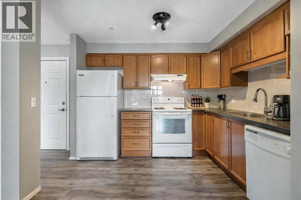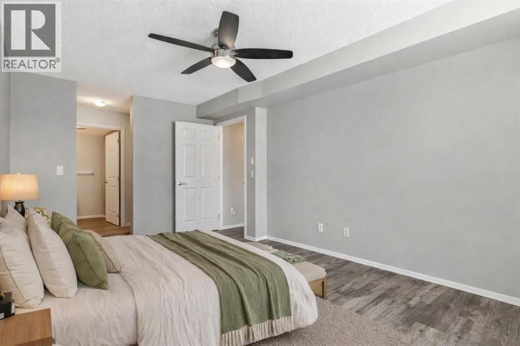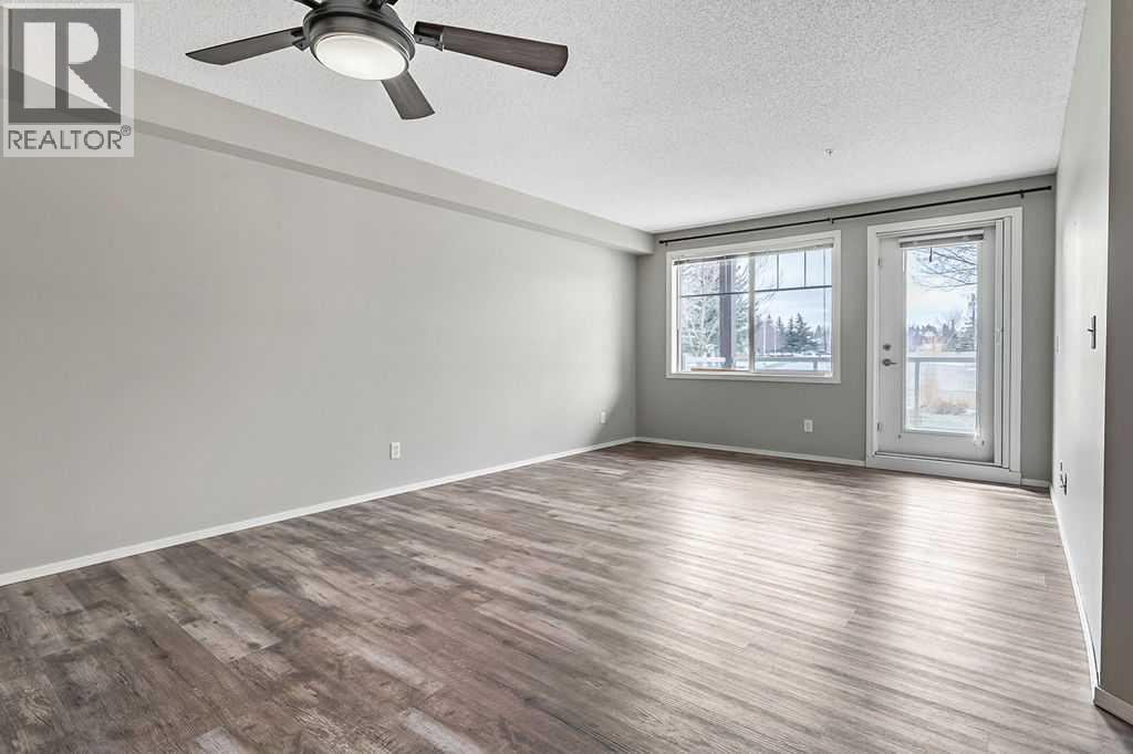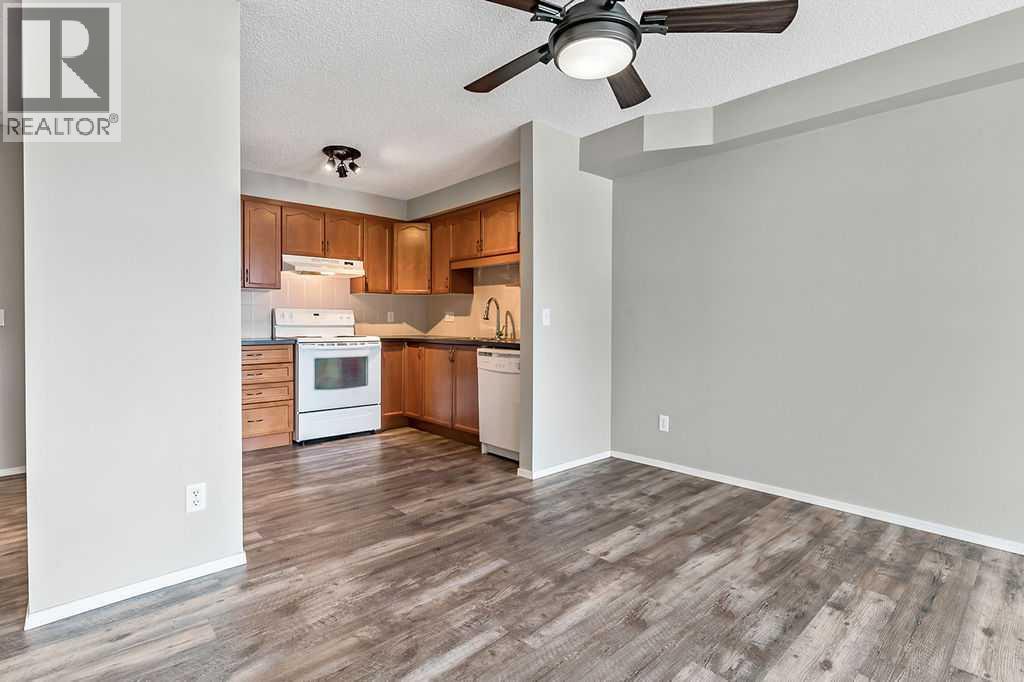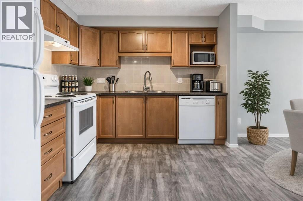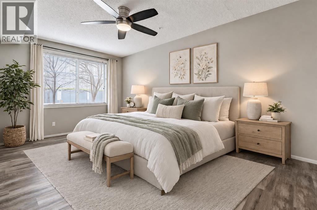 Welcome to Calvanna Village—an exceptional 55+ community known for its vibrant atmosphere and strong sense of connection. This bright and beautifully updated main-floor unit offers nearly 900 sq ft of comfortable living, featuring 2 bedrooms, 2 full bathrooms, in-suite laundry, and new vinyl plank flooring with fresh paint throughout. The open-concept layout includes a spacious kitchen with maple cabinetry, flowing into a large, sun-filled living and dining area—perfect for both everyday living and entertaining. The two generously sized bedrooms include a primary suite with full ensuite, offering both comfort and privacy. Calvanna is loved for its welcoming, close-knit community and low-maintenance lifestyle. Residents enjoy a variety of amenities including a clubhouse with social activities, fitness equipment, games room with pool table and table tennis, and inviting common areas to gather with friends and neighbours. This unit also includes underground parking and a storage locker. Ideally located within walking distance to shopping, restaurants, grocery stores, pharmacies, banks, the Okotoks Senior Centre, and scenic river pathways. A wonderful opportunity to enjoy easy, connected living in a highly sought-after community. (id:55577)