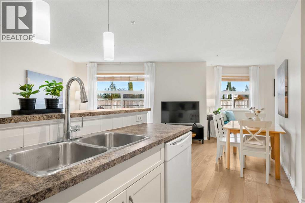 Welcome to #2121–700 Willowbrook Road, located in the vibrant community of Willowbrook, Airdrie! Here you will discover effortless living in this bright and beautifully updated 2-bedroom 2-bath condo which is a perfect blend of comfort, convenience and value. As you enter, you’ll be impressed by the abundance of natural light streaming in from the SOUTH-EAST EXPOSURE. Stylish new vinyl flooring (2024) leads you through a welcoming front entrance, complete with a spacious coat closet featuring built-in shelving. Stepping into the kitchen you will love the open-concept design with generous storage, a pantry, a NEW DISHWASHER (2024) and a large island with room for bar stools, creating the ideal setting for casual meals or entertaining. Just off the kitchen is space for a formal dining table, a RARE feature in apartment living. The living room is bright and inviting, with plenty of room for friends, family and nights in. This versatile living space offers many ways to layout your furniture, with the option to mount your TV on the wall with swivel to be visible from the sofa and the kitchen. A notable feature is that the entire unit has been FRESHLY PAINTED (October 2025) in a beautiful off-white tone that enhances the natural light. The primary bedroom is a true retreat. It features a large WALK-IN CLOSET with built-in shelves, plus an additional closet with bi-fold doors that can serve as extra storage or linen space. The four-piece ensuite bathroom includes a new toilet (2025). The room easily accommodates a king-sized bed with plenty of space to spare and offers a large window overlooking the private balcony. A SECONDARY BEDROOM with a large window provides versatility and can serve as a guest room, office or fitness space. A second three-piece bathroom with a stand-up shower, new toilet (2025) and convenient IN-SUITE LAUNDRY complete this well-designed home. For added peace of mind, the BOILER SYSTEM for the IN-FLOOR HEATING was REPLACED in (2024). Stay warm in th e winter months with your TITLED, UNDERGROUND PARKING STALL. There is also an abundance of outdoor VISITOR PARKING for your friends and family to visit. The condo fees conveniently include everything except electricity (covering heat, water, landscaping, snow removal, professional management & more). Living in Willowbrook means having the best of both worlds - easy access to all of your essential amenities nearby including Main Street, Shoppers, Sobeys, Original Joes, Good Earth and more. From your building, you can also step right into the extensive walking paths of NOSE CREEK PARK to enjoy all year round, ideal for pet owners. A standout feature is the complex’s FLEXIBLE PET FRIENDLY POLICIES, offering peace of mind for pet owners. Whether you're a first-time home buyer, downsizing, or an investor searching for a fantastic move-in ready home, you have found it here. This apartment offers exceptional value with its recent updates, thoughtful layout and inclusive condo fees. Book today! (id:55577)