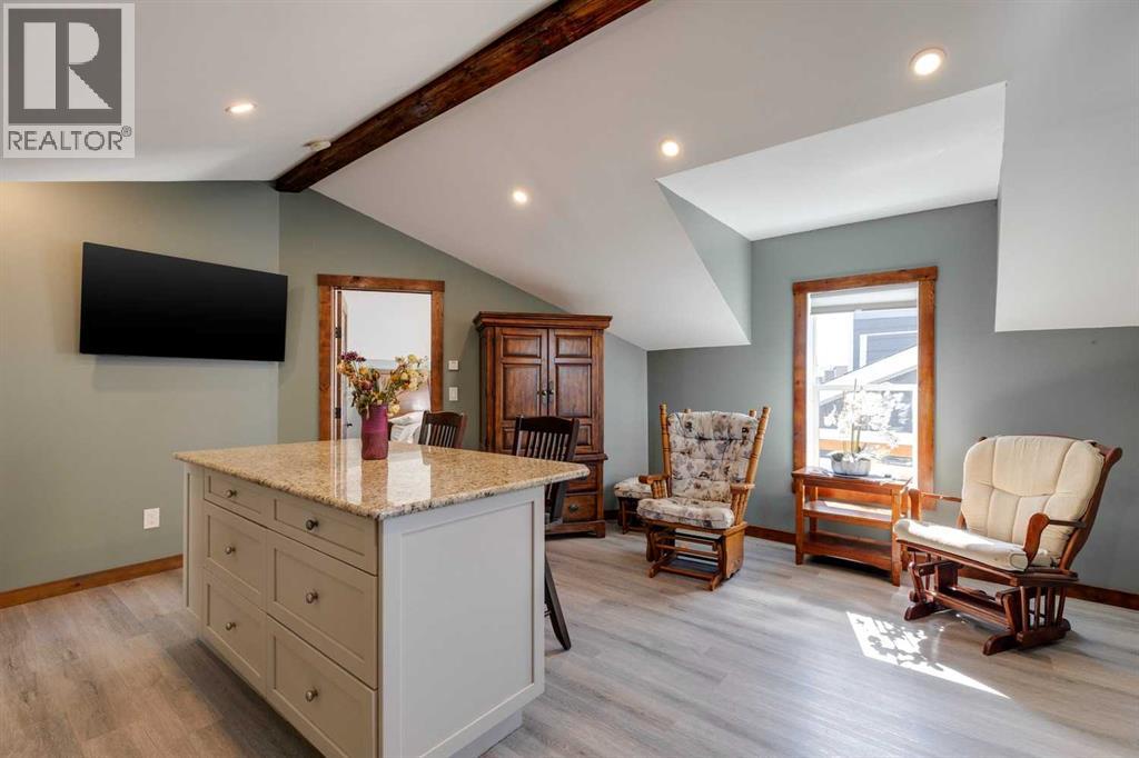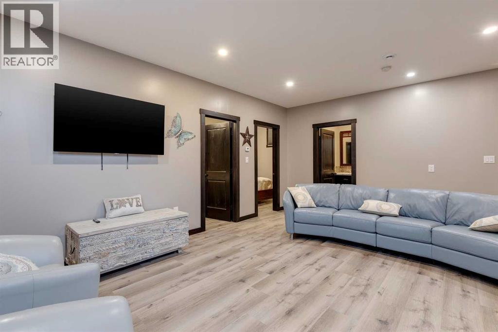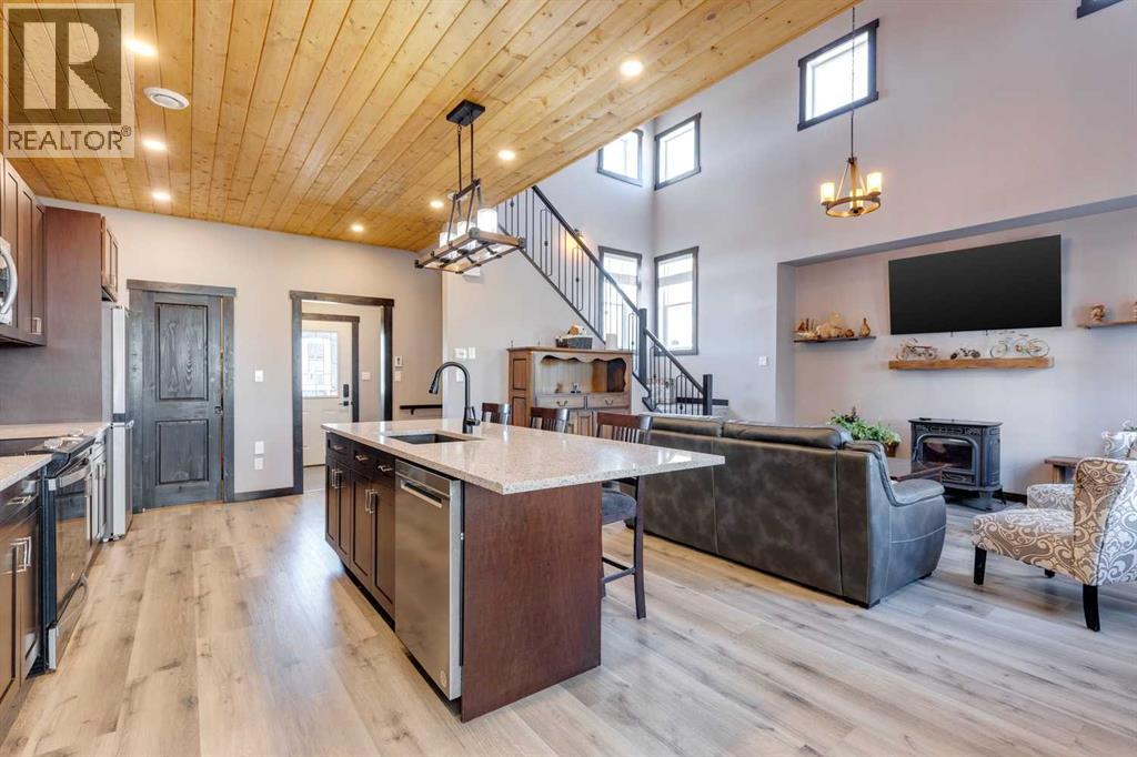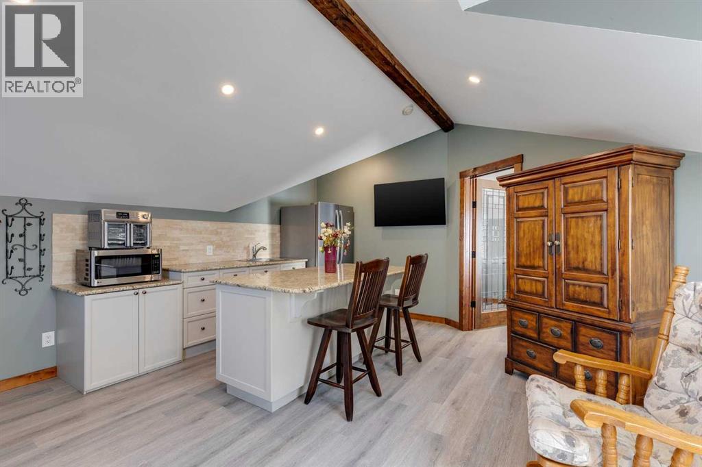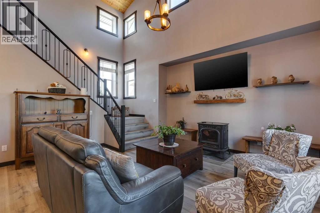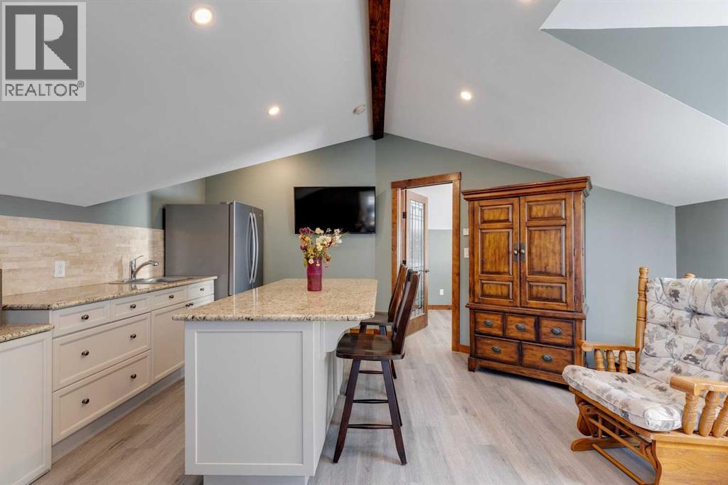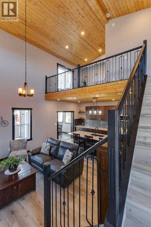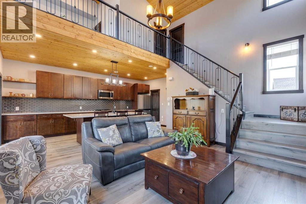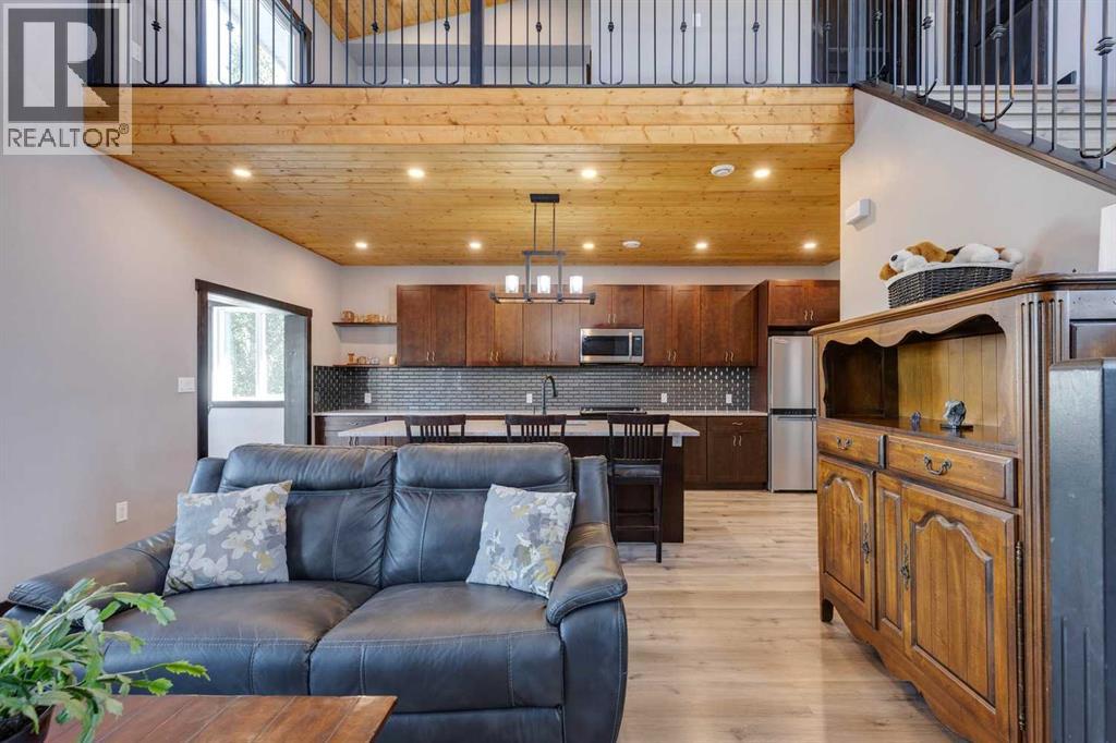 Rarely does a home of this size and quality come to market in CottageClub. This 4-bedroom, 4-bath modern chalet blends exceptional craftsmanship with thoughtful design and high-efficiency construction, making it perfect for year-round living or luxurious weekend escapes. From the moment you step inside, you’ll notice the attention to detail: soaring ceilings, expansive windows filling the home with natural light, and premium finishes throughout. The open-concept main floor is ideal for entertaining, with a spacious living area anchored next to comforting pellet stove, a gourmet kitchen with custom cabinetry, and a dining space that flows seamlessly to the outdoor deck. Comfort is built in at every level, thanks to in-floor heating throughout the home and highly efficient ICF block insulation that keeps energy costs low in all seasons. The upper floor features a primary suite and large washroom and upper-sitting area next to beautiful Juliet balcony. Downstairs you will find two spacious bedroom, lower living room, 3-piece washroom and large wet-bar. Perfect for guest or extending family. The detached garage offers even more flexibility with its lofted design — ideal for a guest suite, with granite countered summer kitchen, large bedroom and 4-piece bathroom. Located in the matured original Phase of CottageClub, you’ll enjoy access to premium community amenities, including a clubhouse, fitness centre, private beach, tennis courts, and miles of scenic trails. This is more than a property — it’s a lifestyle. Whether you’re looking for a primary residence or a recreational haven, this home delivers unmatched space, quality, and value in one of Alberta’s most desirable lakefront communities. (id:55577)