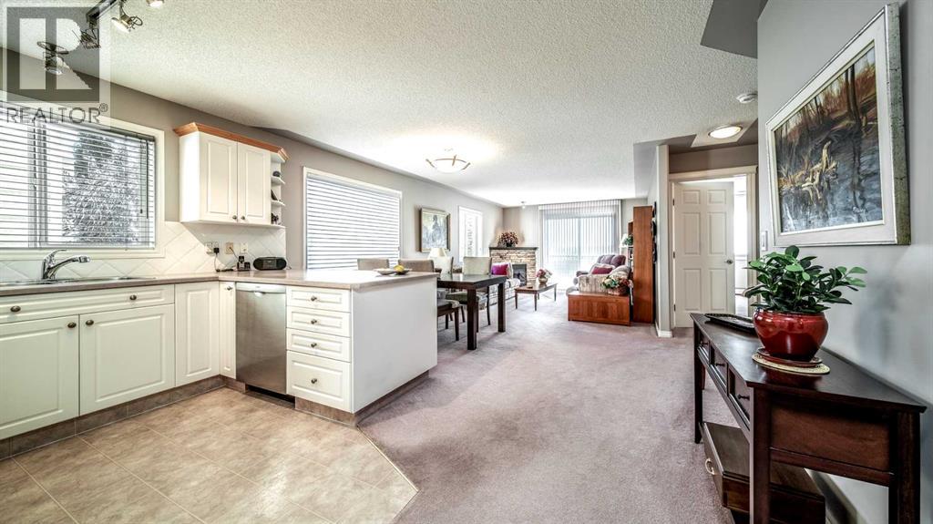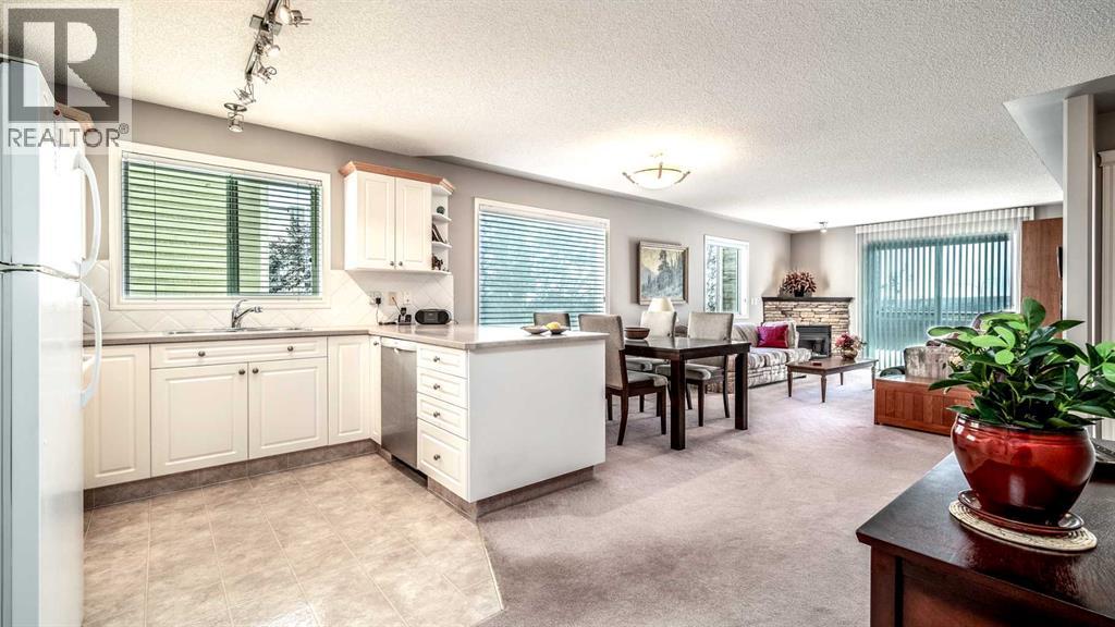 Fabulous 2 bedroom, 2 full baths, end unit in Mountain View Terrace in Springbank Hill! Meticulously maintained, this bright and open corner unit is inviting and perfect for entertaining, offering, a spacious living/dining room with corner gas fireplace and open to a sparkling, white kitchen with ample cupboard and counter space. The master bedroom is complimented by a generous walk-in closet and huge 4-piece ensuite. The second bedroom is conveniently located on the other side of the unit providing privacy and ease of access to main bath. New stacked washer and dryer (2024) and new microwave hood cover (2025)! Enjoy a large, south facing deck including exterior storage room, in-suite laundry and a secured underground, titled parking stall with additional caged storage in front of stall. Perfect location! A wonderful place to call home! (id:55577)