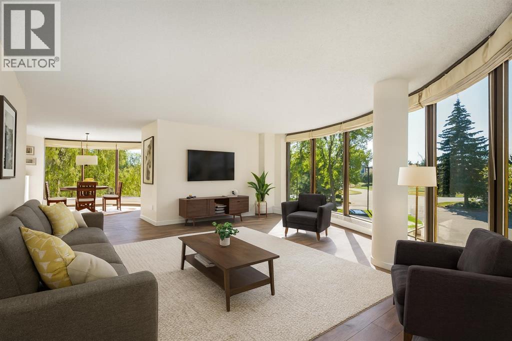 Welcome to this incredible over 1300 sq.ft. apartment in the sought-after Odyssey complex. This bright and spacious 2-bedroom, 2-bathroom home impresses with its functional layout, massive size, and twelve floor-to-ceiling windows that flood the space with natural light. The living and dining areas are open and inviting, and the large kitchen features a new stove and dishwasher and luxury vinyl plank flooring. Nearly every room has been freshly painted, making this home move-in ready.Both bedrooms are generously sized, with the primary suite offering a walk-in closet and private ensuite. There are also two convenient storage closets for all your essentials. Step outside to the large balcony and take in lovely views of the beautifully manicured flower gardens below. This property includes two parking stalls — one indoor and one outdoor — providing excellent flexibility.Odyssey Towers is one of Calgary’s premier 55+ adult living communities, offering a quiet and well-managed environment with extensive amenities. Residents enjoy a personalized building manager, guest suite in each building, sauna and steam room, resident’s club, indoor garden space, ample visitor parking, and lush green spaces. The location is unbeatable — just steps from bus stops with direct service to the West Side LRT, close to Ambrose University, Rundle College, Westside Recreation Centre, shopping, restaurants, parks, and pathways — and less than twenty minutes to downtown or a quick escape west to the mountains. This is maintenance-free living at its finest! (id:55577)