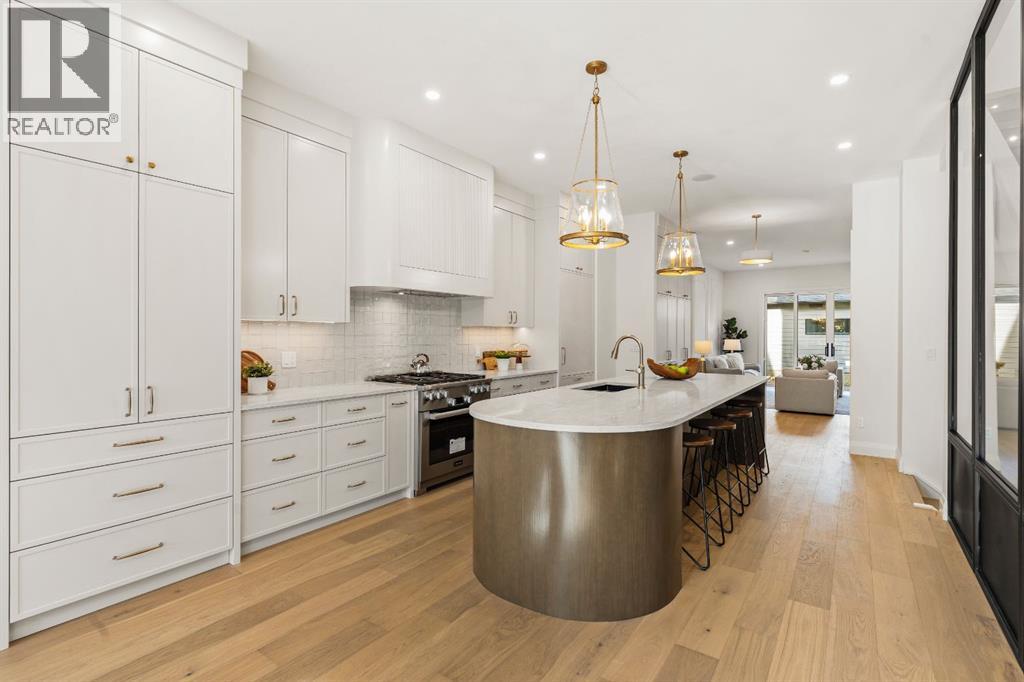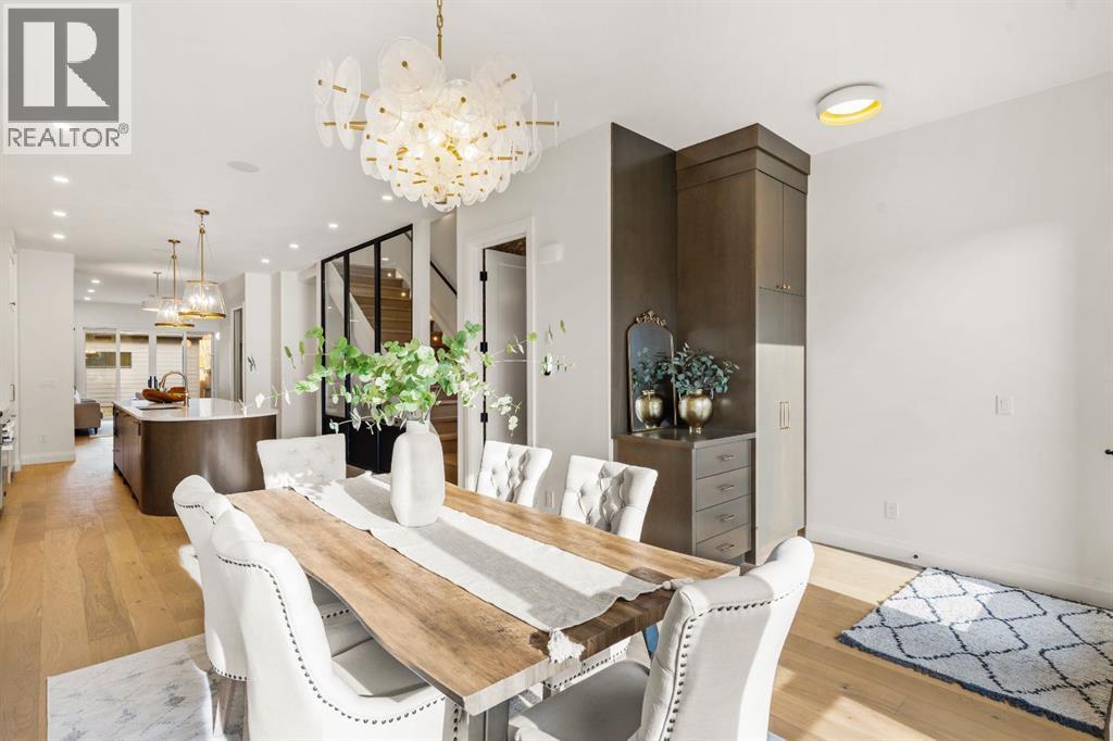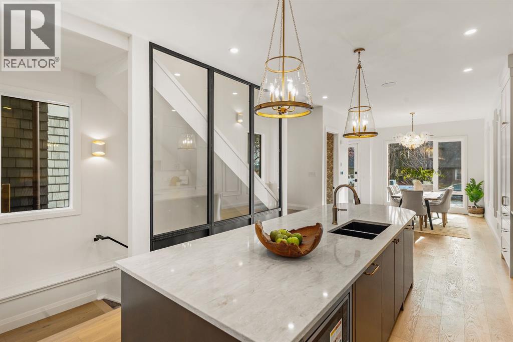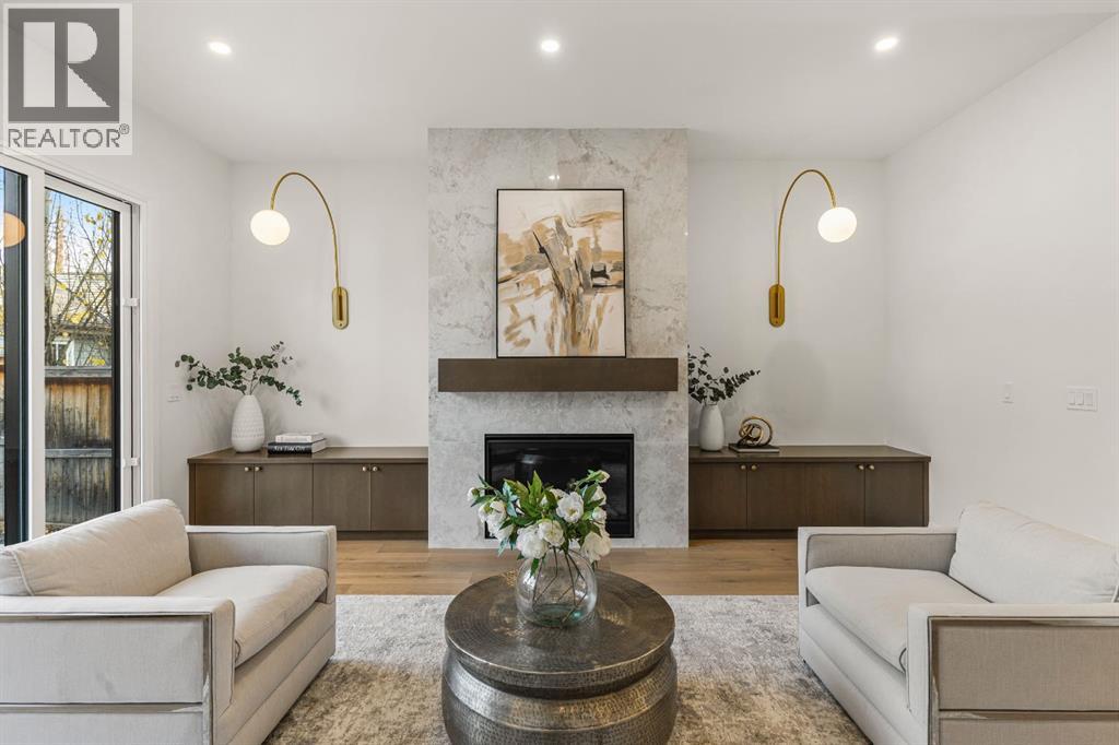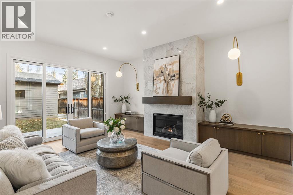 Welcome to The Vega — a beautifully crafted home by Cedar Rock Homes, set on one of Briar Hill’s most desirable streets. This four-bedroom, 3.5-bath residence offers over 3,200 sq ft of developed living space on an oversized 130-foot-deep lot. Architectural elegance meets thoughtful functionality and elevated finishes to create a space that feels both sophisticated and comfortable.Step inside to soaring 10-foot ceilings, wide-plank white oak floors, and natural light that fills every corner. The open-concept main floor flows seamlessly from the chef’s kitchen — complete with custom millwork and a full Miele appliance package — to the inviting living area anchored by a sleek gas fireplace and full dining space perfect for family gatherings and entertaining.With vaulted 10-foot ceilings on the upper floor, the primary suite feels like a private retreat, featuring heated floors, a curbless steam shower, freestanding tub, and dual walk-in closets. Two additional bedrooms — each with walk-in closets — share a spacious five-piece bath, while a pocket office provides a quiet spot to work or study.The lower level offers room to live and play, with a large family area, wet bar, home gym, fourth bedroom, full bathroom, and roughed in infloor heating — ideal for guests or extended family.Outside, enjoy quiet evenings in your private yard or coffee on the front courtyard patio. With a double detached fully insulated, drywalled and painted garage, smart-home wiring, and high-efficiency mechanicals, every detail has been designed for lasting comfort and performance.Nestled in Briar Hill, one of Calgary’s premier inner-city communities, you’re just minutes from Kensington, Foothills Hospital, the University of Calgary, and some of the city’s best parks and schools.The Vega — modern living, perfectly grounded in a classic Calgary neighbourhood. Book your private showing today! (id:55577)