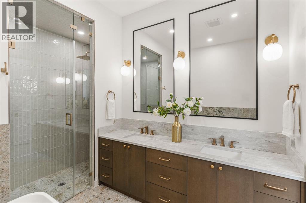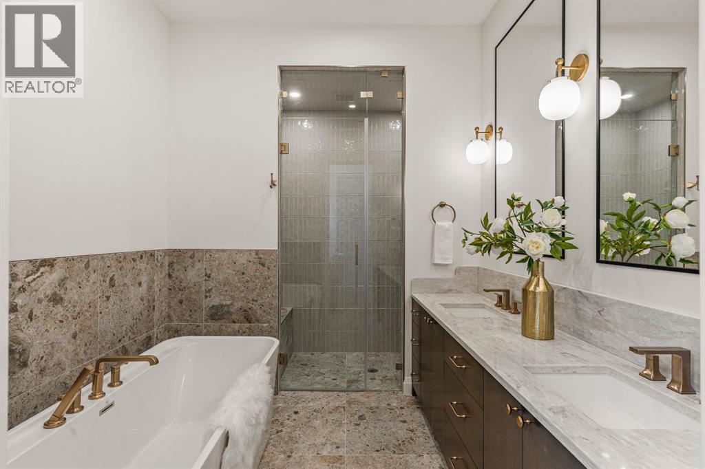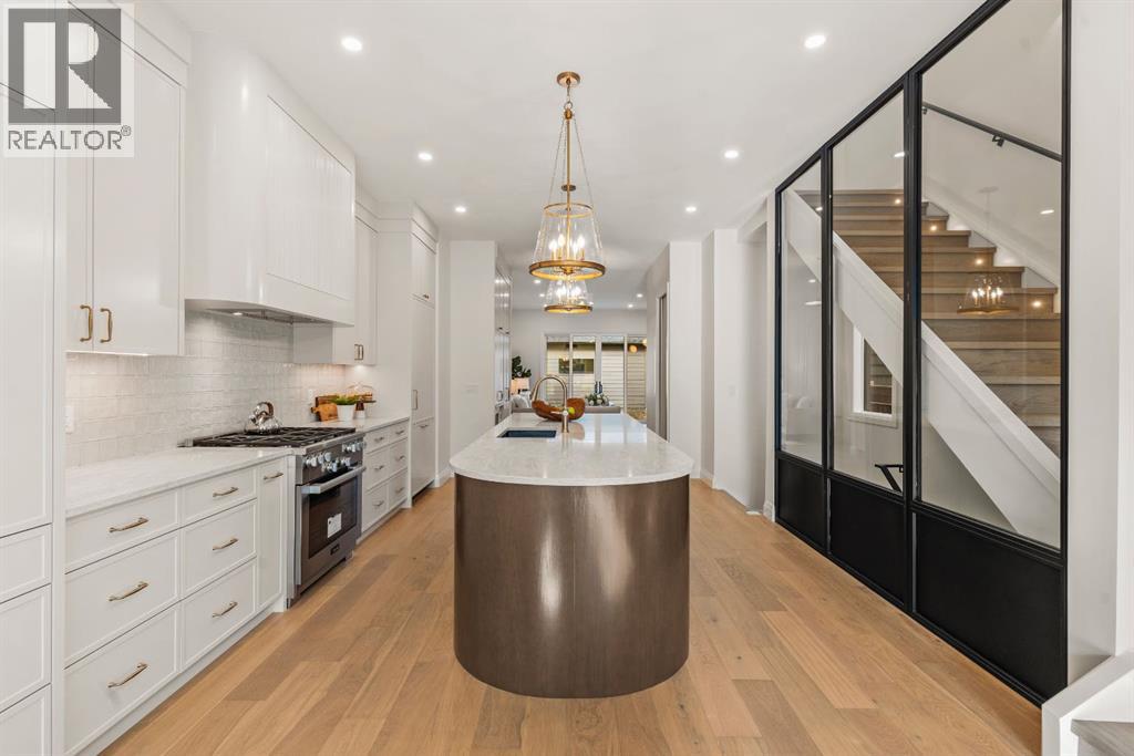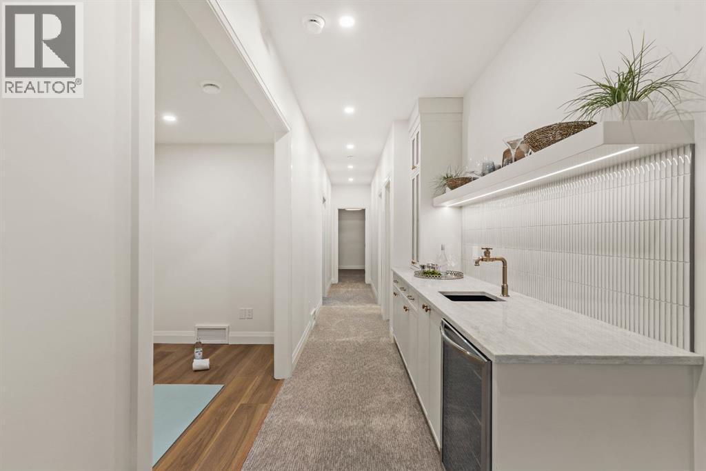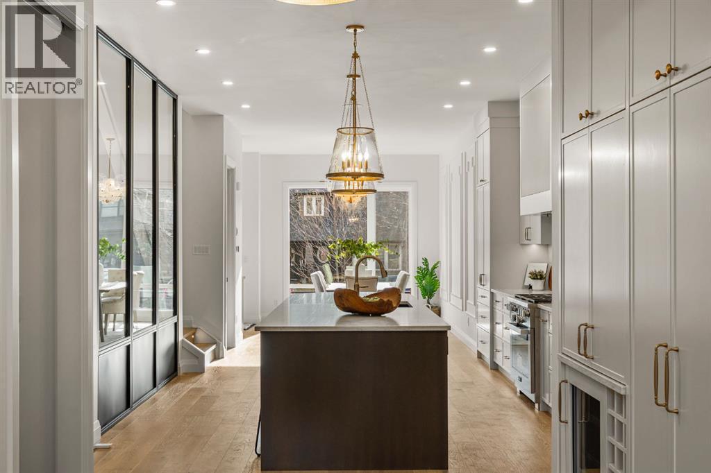 Welcome to The Vega — a beautifully crafted home by Cedar Rock Homes, set on one of Briar Hill’s most desirable streets. This four-bedroom, 3.5-bath residence offers over 3,200 sq ft of developed living space on an oversized 130-foot-deep lot. Architectural elegance meets thoughtful functionality and elevated finishes to create a space that feels both sophisticated and comfortable.Step inside to soaring 10-foot ceilings, wide-plank white oak floors, and natural light that fills every corner. The open-concept main floor flows seamlessly from the chef’s kitchen — complete with custom millwork and a full Miele appliance package — to the inviting living area anchored by a sleek gas fireplace and full dining space perfect for family gatherings and entertaining.With vaulted 10-foot ceilings on the upper floor, the primary suite feels like a private retreat, featuring heated floors, a curbless steam shower, freestanding tub, and dual walk-in closets. Two additional bedrooms — each with walk-in closets — share a spacious five-piece bath, while a pocket office provides a quiet spot to work or study.The lower level offers room to live and play, with a large family area, wet bar, home gym, fourth bedroom, full bathroom, and roughed in infloor heating — ideal for guests or extended family.Outside, enjoy quiet evenings in your private yard or coffee on the front courtyard patio. With a double detached fully insulated, drywalled and painted garage, smart-home wiring, and high-efficiency mechanicals, every detail has been designed for lasting comfort and performance.Nestled in Briar Hill, one of Calgary’s premier inner-city communities, you’re just minutes from Kensington, Foothills Hospital, the University of Calgary, and some of the city’s best parks and schools.The Vega — modern living, perfectly grounded in a classic Calgary neighbourhood. Book your private showing today! (id:55577)