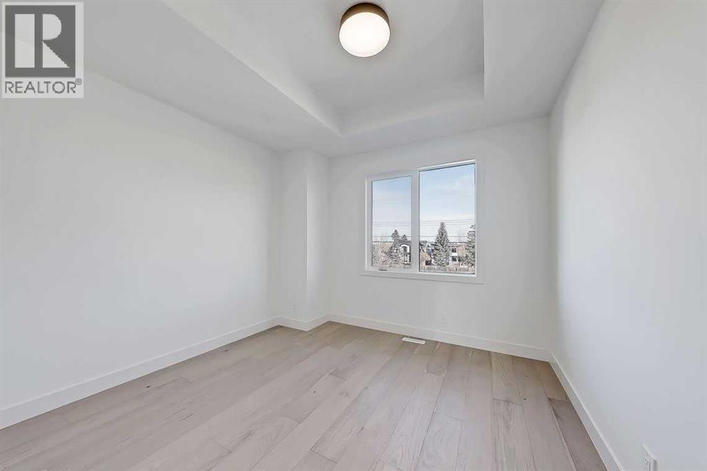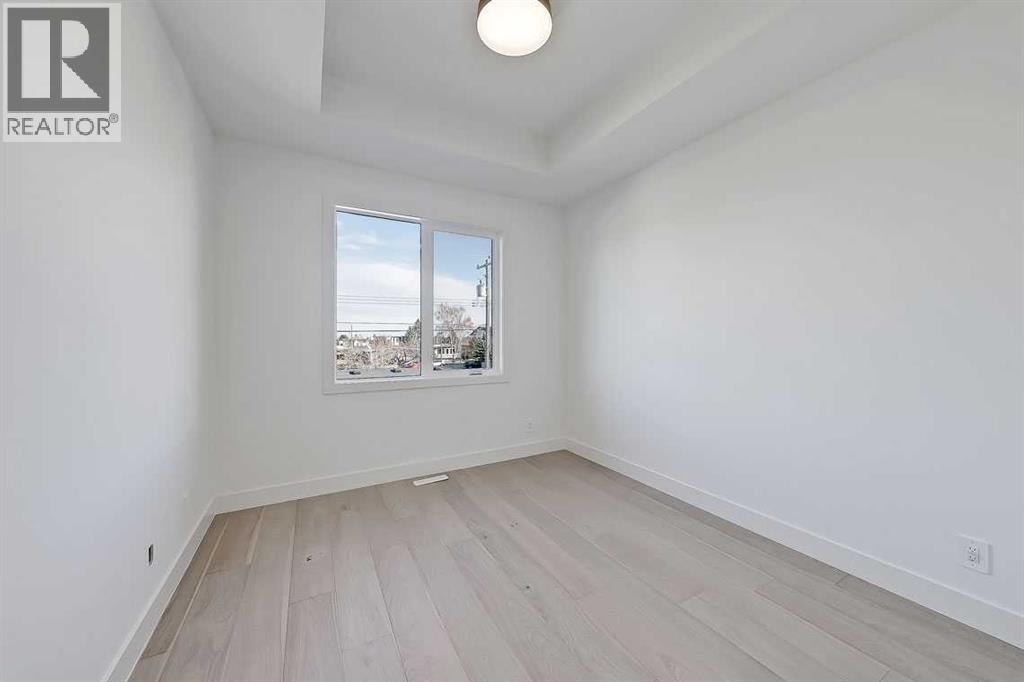 This architecturally striking semi-detached infill in Killarney is a refined expression of modern Scandinavian design, thoughtfully layered with mid-century modern elements. Clean lines, warm wood tones, minimalist detailing, and intentional functionality come together in a home that feels both sophisticated and welcoming. With three fully finished levels and an RARE EXTENDED BASEMENT featuring a legal 2-bedroom suite, this residence offers elevated design, smart versatility, and exceptional income potential in one of Calgary’s most desirable inner-city communities.Step inside to a bright, airy foyer where clean millwork and a built-in bench create an organized and understated welcome. A discreet, hidden door conceals the powder room, maintaining the seamless, minimalist aesthetic that defines the main floor. The open-concept layout is enhanced by 10-foot ceilings, oversized windows, and warm natural finishes that reflect Scandinavian simplicity while mid-century inspired lighting and architectural detailing add depth and character.The living room is anchored by a sleek fireplace and flows effortlessly into the kitchen — a space designed as beautifully as it performs. Quartz countertops, full-height custom cabinetry, a built-in pantry & coffee station, and stainless steel appliances offer both style and functionality. The oversized island invites gathering & connection.The dining area is a standout architectural feature, complete with a built-in decorative buffet showcasing full-length shelving with integrated lighting & elegant fluted glass cabinetry. This thoughtfully designed focal point adds warmth, texture, and curated display space while enhancing the home’s cohesive Scandinavian aesthetic. Expansive sliding doors open from the dining space, seamlessly extending the living area onto the rear deck and backyard — creating effortless indoor-outdoor flow ideal for entertaining and everyday living.At the back of the home, a mudroom with sleek built-in stora ge & bench seating adds everyday convenience without compromising the streamlined design.Upstairs, the primary retreat offers a vaulted ceiling, private WEST facing balcony, and a spa-inspired ensuite with dual vanities, a soaker tub, and glass-enclosed tiled shower with body jets. Two additional bedrooms, a full bath, and upper laundry complete the level.The extended basement is fully developed into a self-contained legal 2-bedroom suite featuring HERRINGBONE floors, a full kitchen with quartz counters, island with seating, separate laundry, a 4-piece bath, and an oversized living & dining area that create a space that feels open, comfortable, and far above typical lower-level living.Walking distance to Shaganappi LRT, local amenities, schools, parks, and the Killarney Aquatic Centre — with quick access to downtown & major routes — this home offers the perfect balance of timeless design and everyday functionality. Experience elevated inner-city living in Killarney — book your private showing today. (id:55577)