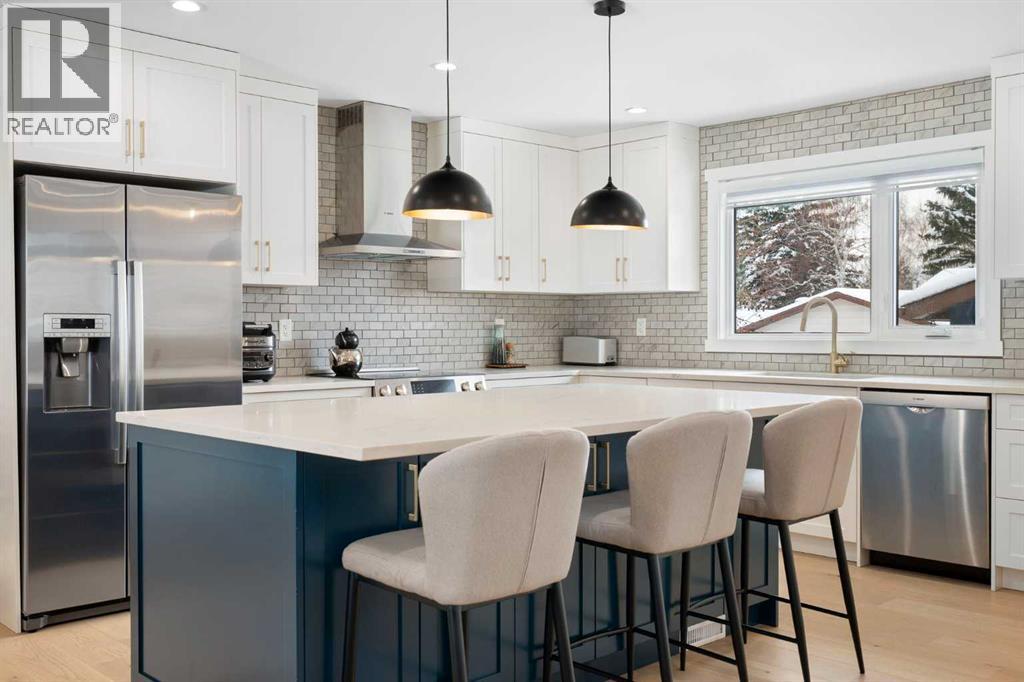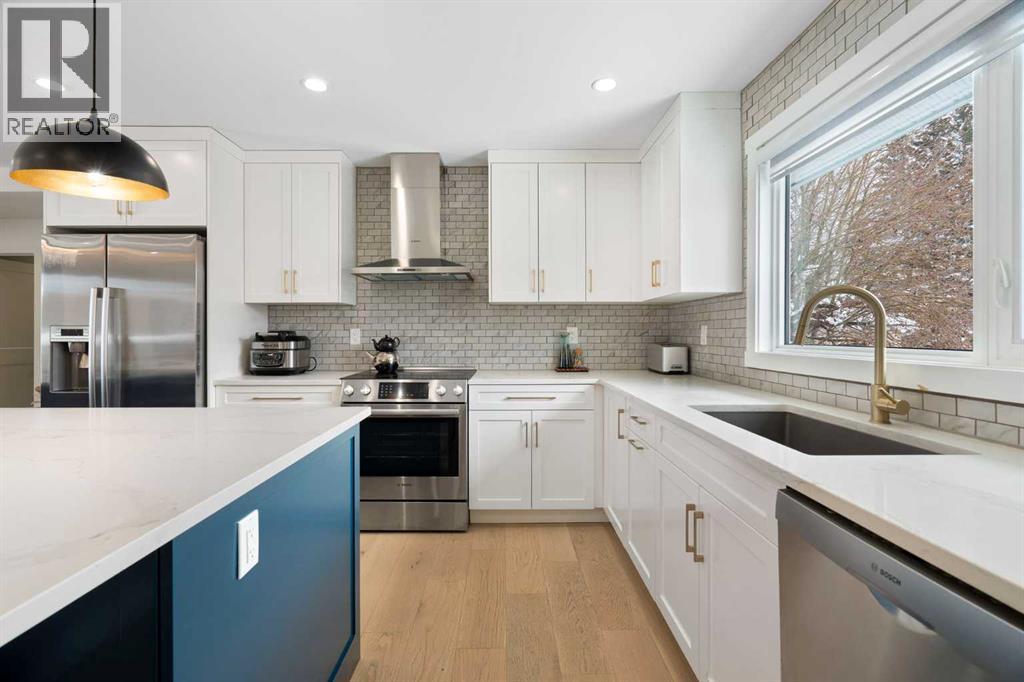Set across from a lovely green space with direct access to the Silver Springs off-leash area and the network of walking paths leading to the ridge, this thoughtfully renovated home offers both everyday comfort and an exceptional setting.Within it’s nearly 2,600 sq. ft. of living space, the home has been extensively updated and features five bedrooms and three bathrooms. The kitchen is designed with both function and style in mind—custom two tone cabinetry, quartz counters, marble tile backsplash, a generous island, and Bosch stainless steel appliances. The living room is bright and welcoming, anchored by a stylish fireplace and a large picture window framing views of the park. The primary bedroom is a calm retreat with a custom-built closet and a beautifully finished ensuite featuring a barn door and full tile surround. Two additional main floor bedrooms are well-sized and positioned near a spa like full four-piece bath, thoughtfully set apart from the main living areas. A serene view of the rear yard and mature trees can be enjoyed from the rear bedroom/office.The lower level continues to impress with large windows, two additional bedrooms, a spacious family room with feature wall, a well-appointed wet bar, a third full bathroom, and a dedicated laundry area.Previous updates throughout the home include stucco exterior, soffit, fascia, eavestroughs, windows, hardwood flooring, bathrooms, insulation, furnace, hot water tank, electrical, plumbing, and concrete work. Central Air is a more recent addition to add to your comfort this upcoming summer. Enjoy the gorgeous, treed rear yard with raised deck in the upcoming warmer months. The oversized garage is fully insulated, finished with epoxy flooring, and opens to a paved back lane.A home that balances quality updates with a truly special location—one that’s hard to come by. (id:55577)