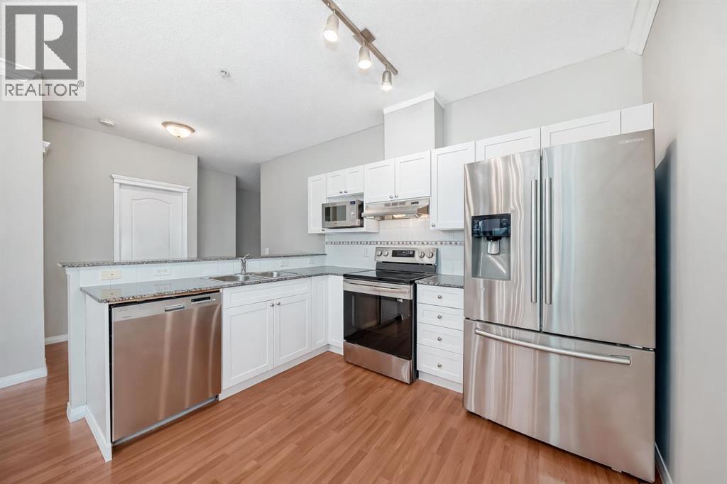 Magnificent RIVERFRONT 9' Ceiling CORNER UNIT in heart of downtown access to +15. NEW Carpet & Paint ---- Amazing downtown riverfront 2 bed / 2 bath condo in prime location. This large corner unit has unobstructed views of the Bow River. Lots of natural sunlight combined with magnificent sunrise and sunset views of the bow river / center street bridge. Enjoy the open kitchen with fridge, stove, microwave, dishwasher with lots of cabinet space and granite countertops. Additional unit features include 9ft ceilings, secure underground parking, storage locker (available for rent), secure bicycle storage, in-floor heating, in-suite laundry, covered deck and a beautiful fireplace.The +15 located across the street provides quick access to work, restaurants, clubs, shopping and recreation. The area is walking distance to restaurants, night life, great food, multiple LRT Stations, Central Public Library, Prince’s Island Park, Chinatown and of course downtown offices. The upgraded river walk right in front of the building and is perfect for walking, jogging or biking. (id:55577)