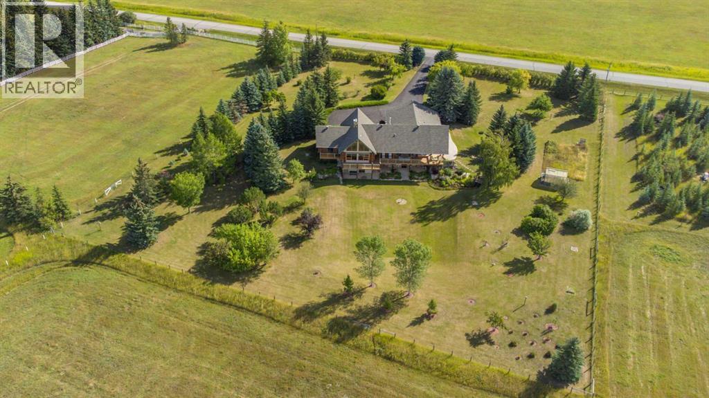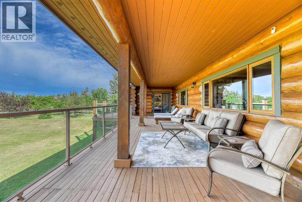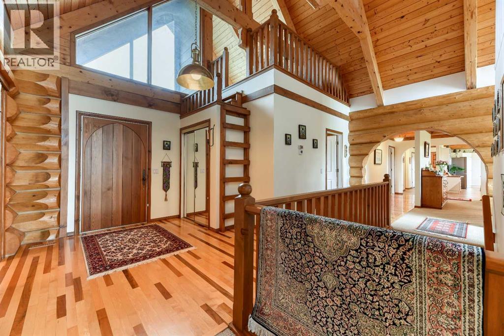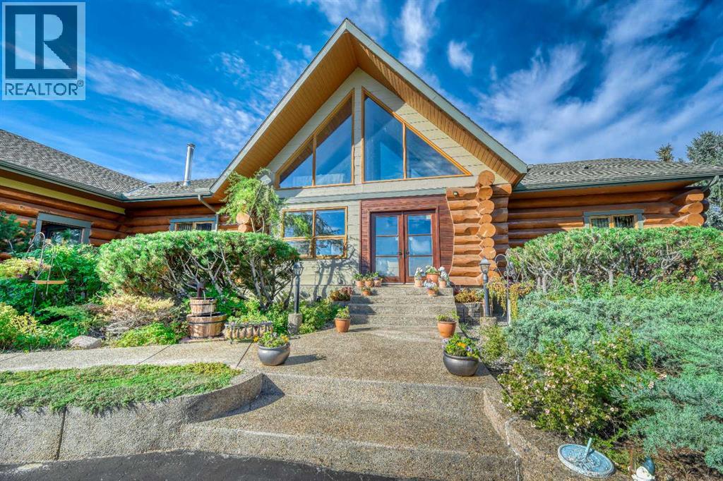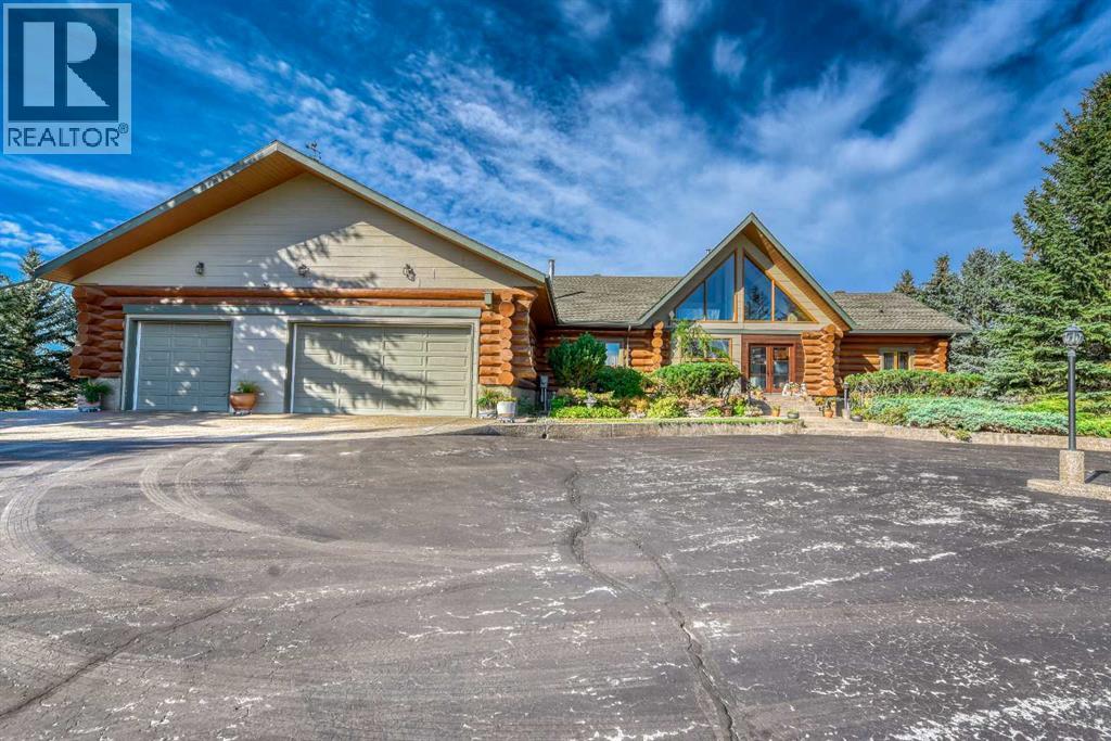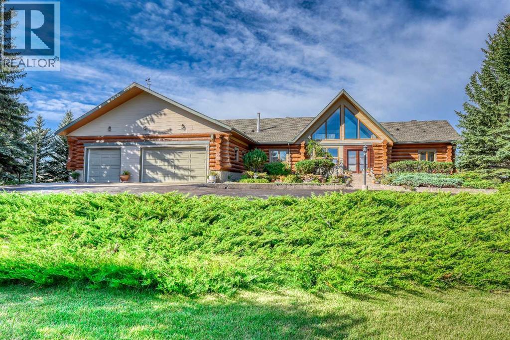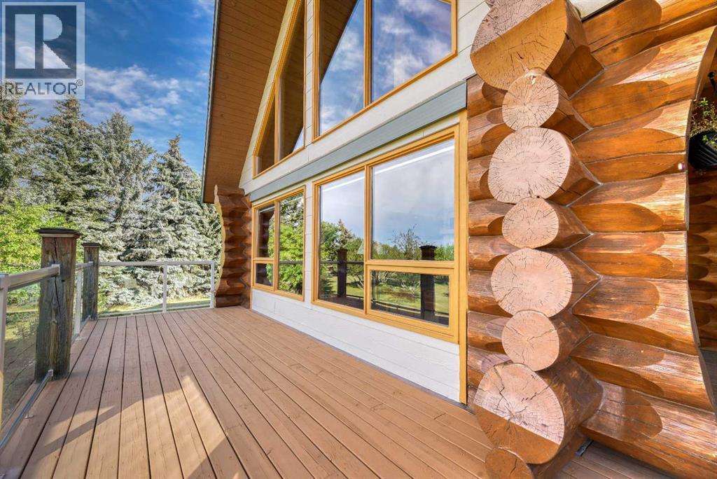 Located ten minutes from the city limits, close to shops and South Campus Hospital,this contemporary, full scribe, log home with over 6000 sq ft of living space and triplegarage, situated in East De Winton, is close to 3 golf courses (Cottonwood G&CC atthe end of the street) with access to the Bow River and world class fishing. TelsecFarms breeding and boarding horse facility is two acreages to the north. This gated,private estate, with beautiful mature landscaping, encompasses a fenced 3 acreproperty around the house with an inline gas BBQ & fire pit and a newly refurbishedgreenhouse. The rest of the 19.2 acres comprises a tree farm with approximately 200spruce trees and the balance being recently cultivated and seeded. There is aseparate gated entrance from the road to the farm side and a gate from the residentialproperty to the tree farm. This passive solar, multigenerational home, is designed tostay cooler in the summer and warmer in winter, saving on energy costs. From theenclosed front porch, the airy main level has open trusses in the great room and foyerwhere light abounds. It comprises 4 baths, 3 beds, a dedicated office (with magnificentunobstructed views of the river valley) great room with floor to ceiling stone fireplace,large dining room, kitchen (with butcher block counters) and breakfast nook, all withbeamed ceilings. Above the office is a quiet reading loft. The main level has a coveredwrap around deck from the south to the west side, offering protection from theelements and a magnificent mountain view to the west. There is also a covered deckfrom the principle bedroom. The walkout lower level, accessed by both the main andsouth staircases, is separated by a spacious mechanical room with a new watertreatment system, two furnaces and hot water on demand. To the north of themechanical room is a magnificent bar and billiard room, two good size bedrooms, a 3piece bath, wine making room with double sink, refrigerator, wine storage and coldroom and lastly a storage/exercise room. To the south end, accessed from the garage,back hall and south staircase you will find the laundry room, (with a chute from themain level), a further large bedroom with ensuite bath and walk in closet, full eat inkitchen (with patio doors), and spacious living room with floor to ceiling stone fireplace,all with big bright windows. Outside you will find a full length, west facing, privatecovered concrete patio, with beautiful rock gardens to be admired from inside and out.The lower level is serviced by underfloor heating as well as forced air from above.There is further underfloor heating on the main level to the north part of the house andPhantom screens on all patio doors, except the billiard room. (id:55577)