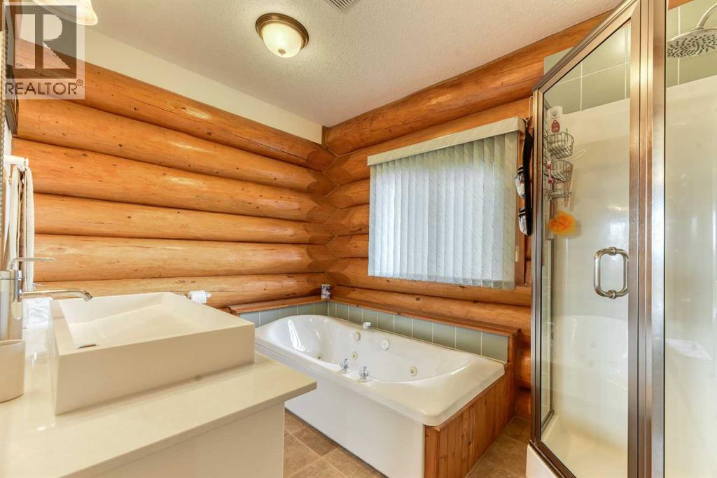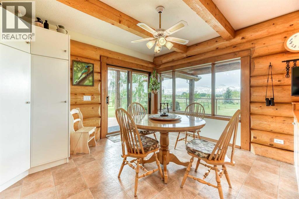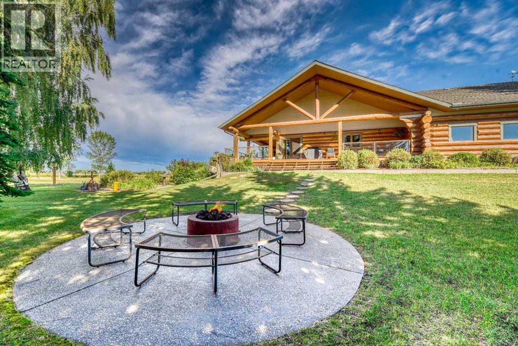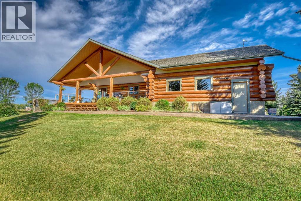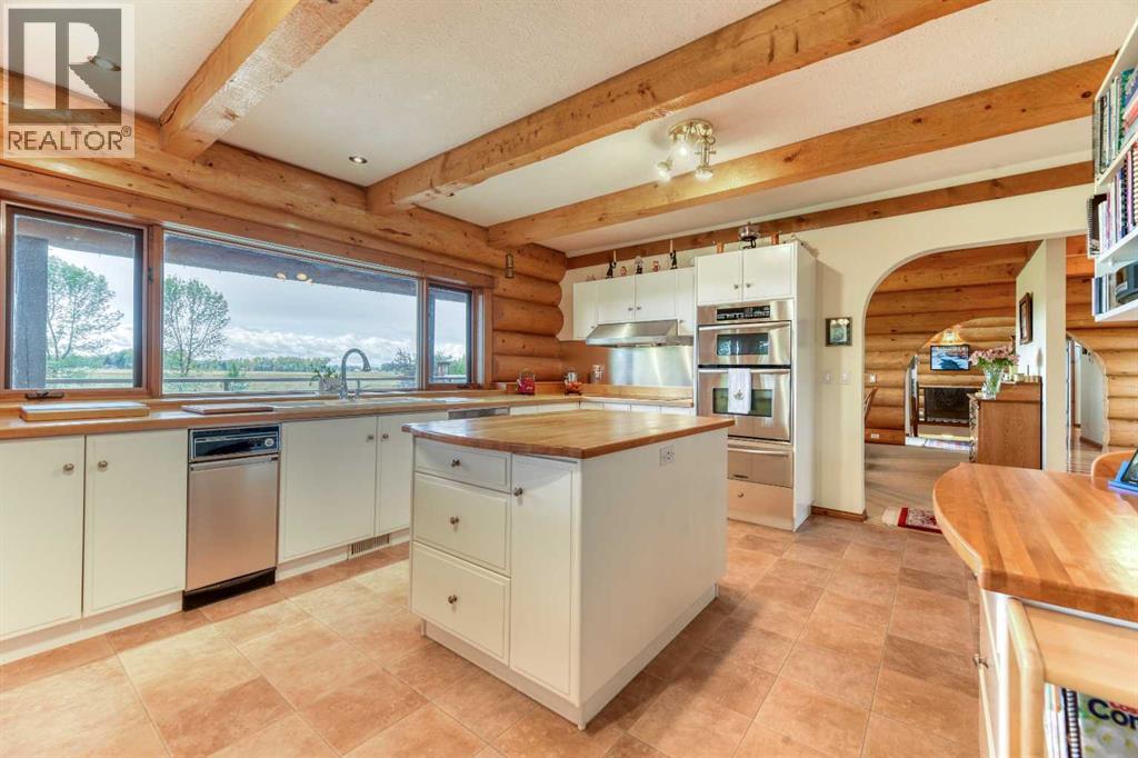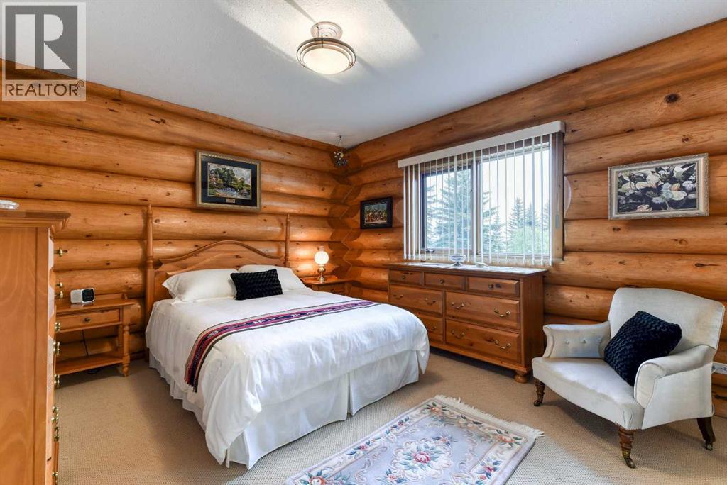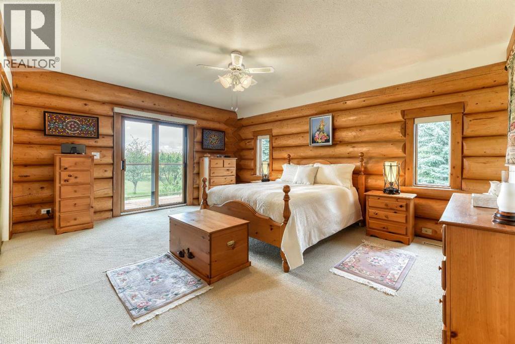 Located ten minutes from the city limits, close to shops and South Campus Hospital,this contemporary, full scribe, log home with over 6000 sq ft of living space and triplegarage, situated in East De Winton, is close to 3 golf courses (Cottonwood G&CC atthe end of the street) with access to the Bow River and world class fishing. TelsecFarms breeding and boarding horse facility is two acreages to the north. This gated,private estate, with beautiful mature landscaping, encompasses a fenced 3 acreproperty around the house with an inline gas BBQ & fire pit and a newly refurbishedgreenhouse. The rest of the 19.2 acres comprises a tree farm with approximately 200spruce trees and the balance being recently cultivated and seeded. There is aseparate gated entrance from the road to the farm side and a gate from the residentialproperty to the tree farm. This passive solar, multigenerational home, is designed tostay cooler in the summer and warmer in winter, saving on energy costs. From theenclosed front porch, the airy main level has open trusses in the great room and foyerwhere light abounds. It comprises 4 baths, 3 beds, a dedicated office (with magnificentunobstructed views of the river valley) great room with floor to ceiling stone fireplace,large dining room, kitchen (with butcher block counters) and breakfast nook, all withbeamed ceilings. Above the office is a quiet reading loft. The main level has a coveredwrap around deck from the south to the west side, offering protection from theelements and a magnificent mountain view to the west. There is also a covered deckfrom the principle bedroom. The walkout lower level, accessed by both the main andsouth staircases, is separated by a spacious mechanical room with a new watertreatment system, two furnaces and hot water on demand. To the north of themechanical room is a magnificent bar and billiard room, two good size bedrooms, a 3piece bath, wine making room with double sink, refrigerator, wine storage and coldroom and lastly a storage/exercise room. To the south end, accessed from the garage,back hall and south staircase you will find the laundry room, (with a chute from themain level), a further large bedroom with ensuite bath and walk in closet, full eat inkitchen (with patio doors), and spacious living room with floor to ceiling stone fireplace,all with big bright windows. Outside you will find a full length, west facing, privatecovered concrete patio, with beautiful rock gardens to be admired from inside and out.The lower level is serviced by underfloor heating as well as forced air from above.There is further underfloor heating on the main level to the north part of the house andPhantom screens on all patio doors, except the billiard room. (id:55577)