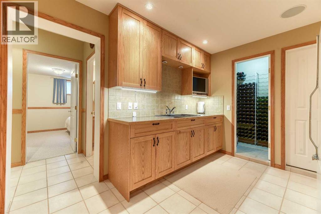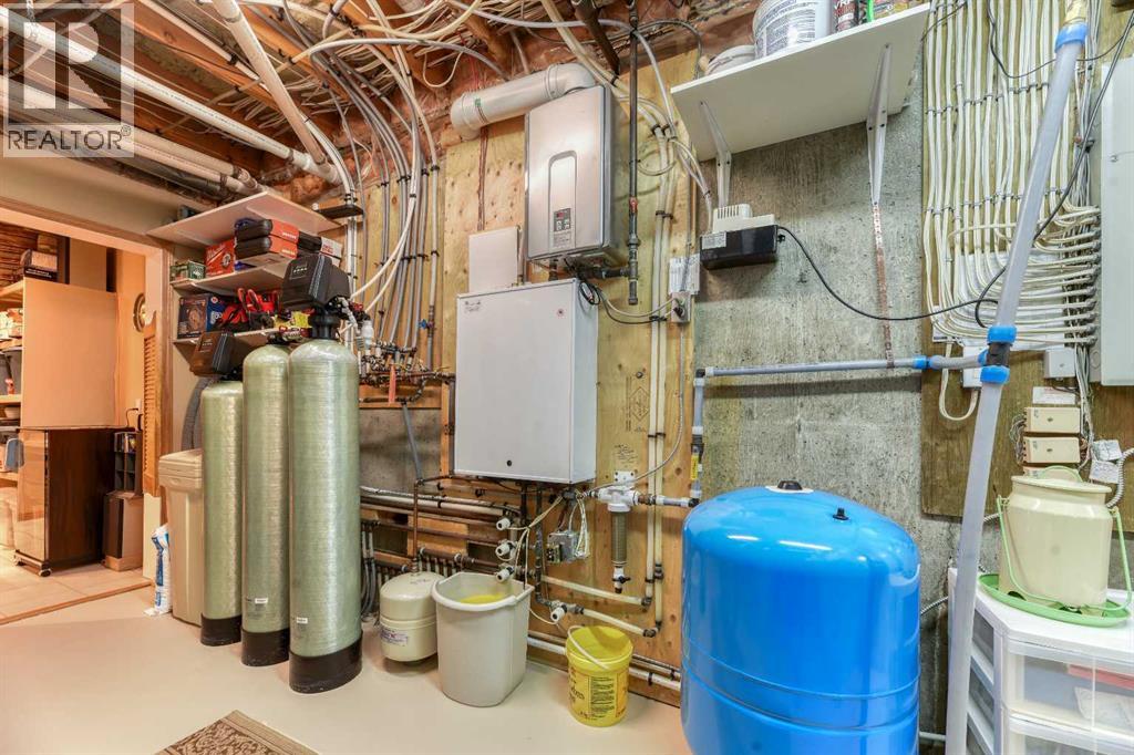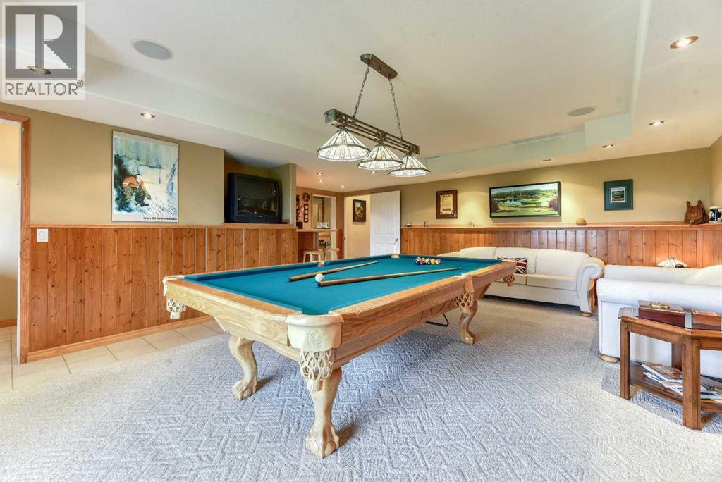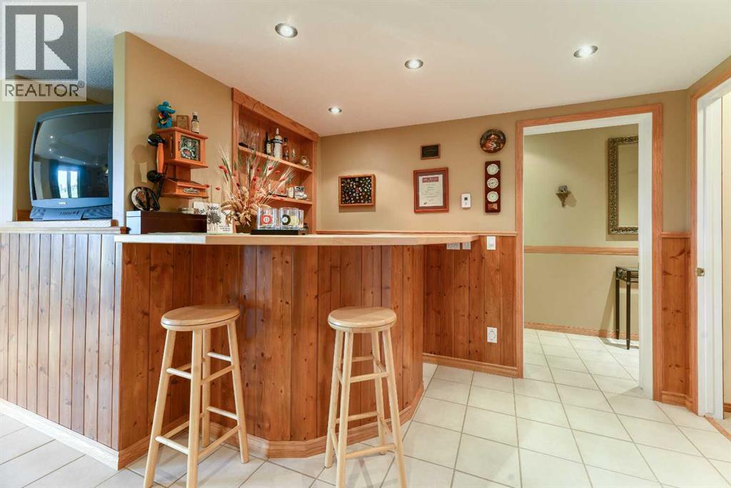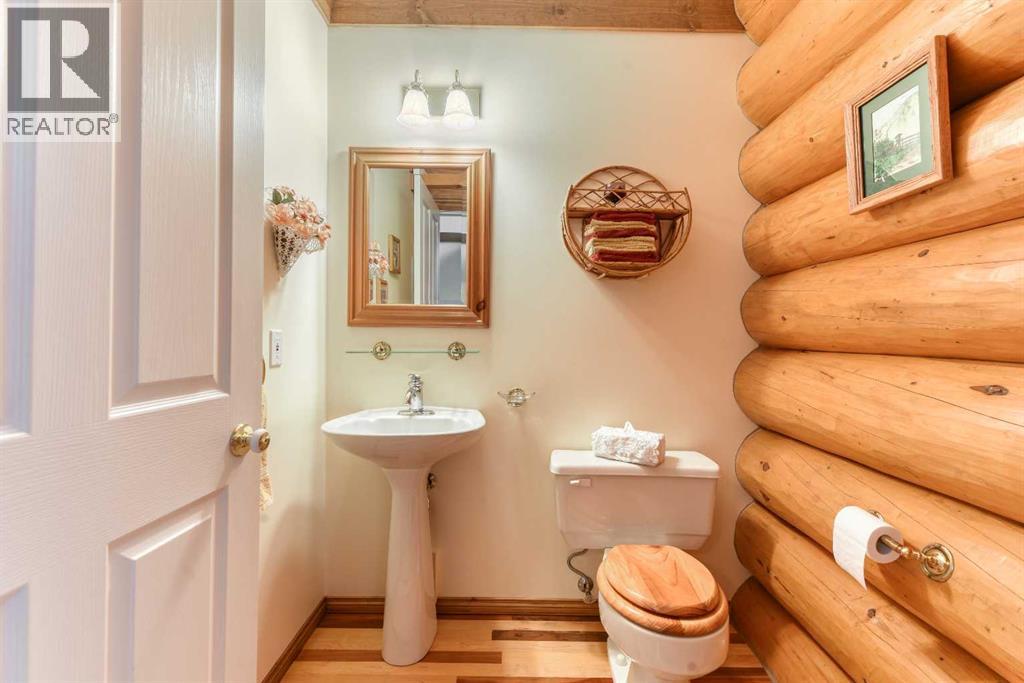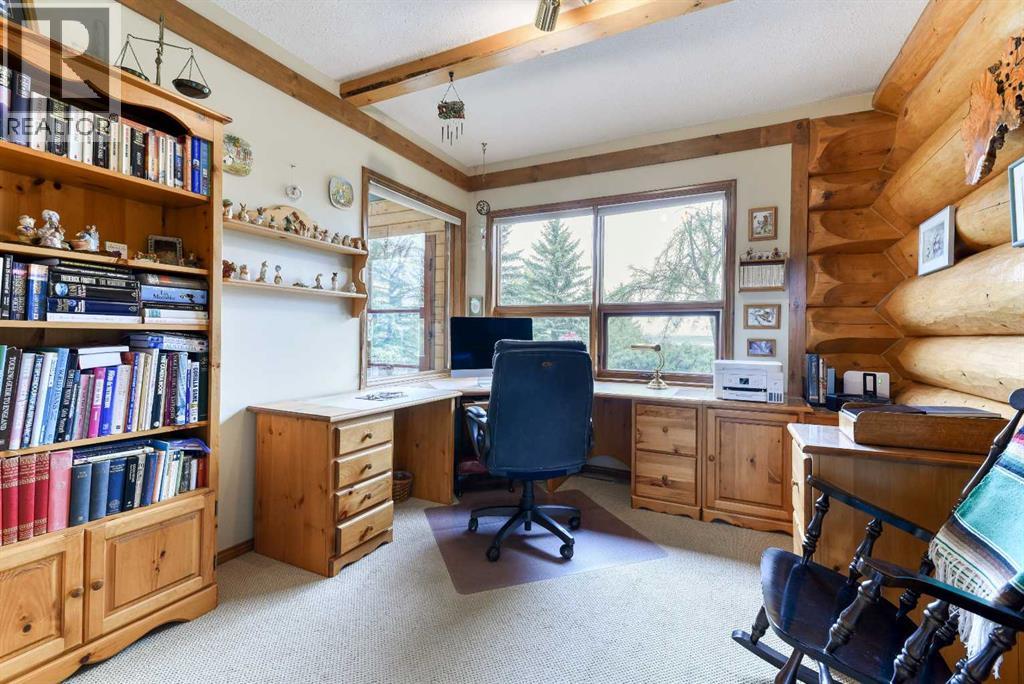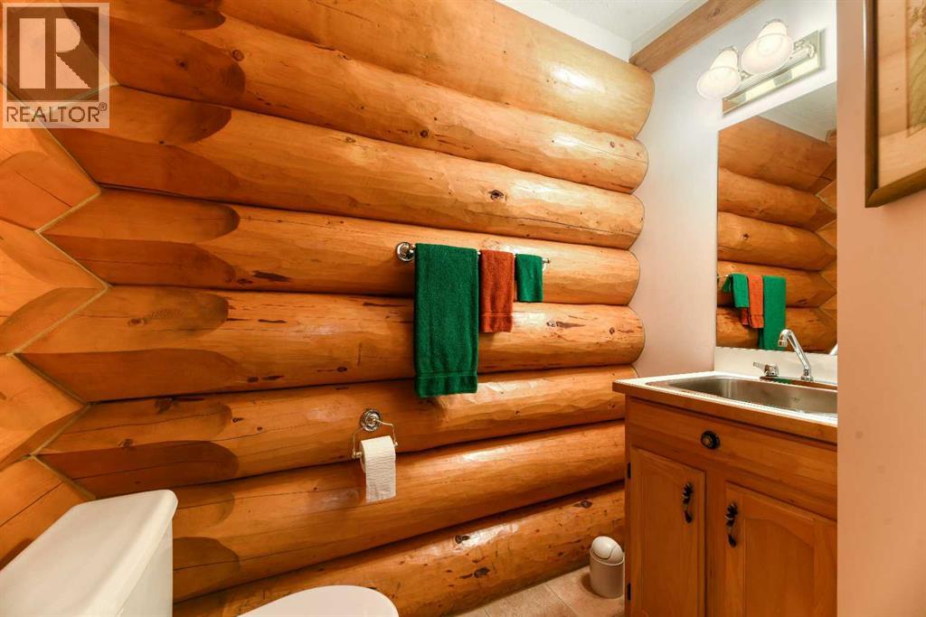 Located ten minutes from the city limits, close to shops and South Campus Hospital,this contemporary, full scribe, log home with over 6000 sq ft of living space and triplegarage, situated in East De Winton, is close to 3 golf courses (Cottonwood G&CC atthe end of the street) with access to the Bow River and world class fishing. TelsecFarms breeding and boarding horse facility is two acreages to the north. This gated,private estate, with beautiful mature landscaping, encompasses a fenced 3 acreproperty around the house with an inline gas BBQ & fire pit and a newly refurbishedgreenhouse. The rest of the 19.2 acres comprises a tree farm with approximately 200spruce trees and the balance being recently cultivated and seeded. There is aseparate gated entrance from the road to the farm side and a gate from the residentialproperty to the tree farm. This passive solar, multigenerational home, is designed tostay cooler in the summer and warmer in winter, saving on energy costs. From theenclosed front porch, the airy main level has open trusses in the great room and foyerwhere light abounds. It comprises 4 baths, 3 beds, a dedicated office (with magnificentunobstructed views of the river valley) great room with floor to ceiling stone fireplace,large dining room, kitchen (with butcher block counters) and breakfast nook, all withbeamed ceilings. Above the office is a quiet reading loft. The main level has a coveredwrap around deck from the south to the west side, offering protection from theelements and a magnificent mountain view to the west. There is also a covered deckfrom the principle bedroom. The walkout lower level, accessed by both the main andsouth staircases, is separated by a spacious mechanical room with a new watertreatment system, two furnaces and hot water on demand. To the north of themechanical room is a magnificent bar and billiard room, two good size bedrooms, a 3piece bath, wine making room with double sink, refrigerator, wine storage and coldroom and lastly a storage/exercise room. To the south end, accessed from the garage,back hall and south staircase you will find the laundry room, (with a chute from themain level), a further large bedroom with ensuite bath and walk in closet, full eat inkitchen (with patio doors), and spacious living room with floor to ceiling stone fireplace,all with big bright windows. Outside you will find a full length, west facing, privatecovered concrete patio, with beautiful rock gardens to be admired from inside and out.The lower level is serviced by underfloor heating as well as forced air from above.There is further underfloor heating on the main level to the north part of the house andPhantom screens on all patio doors, except the billiard room. (id:55577)