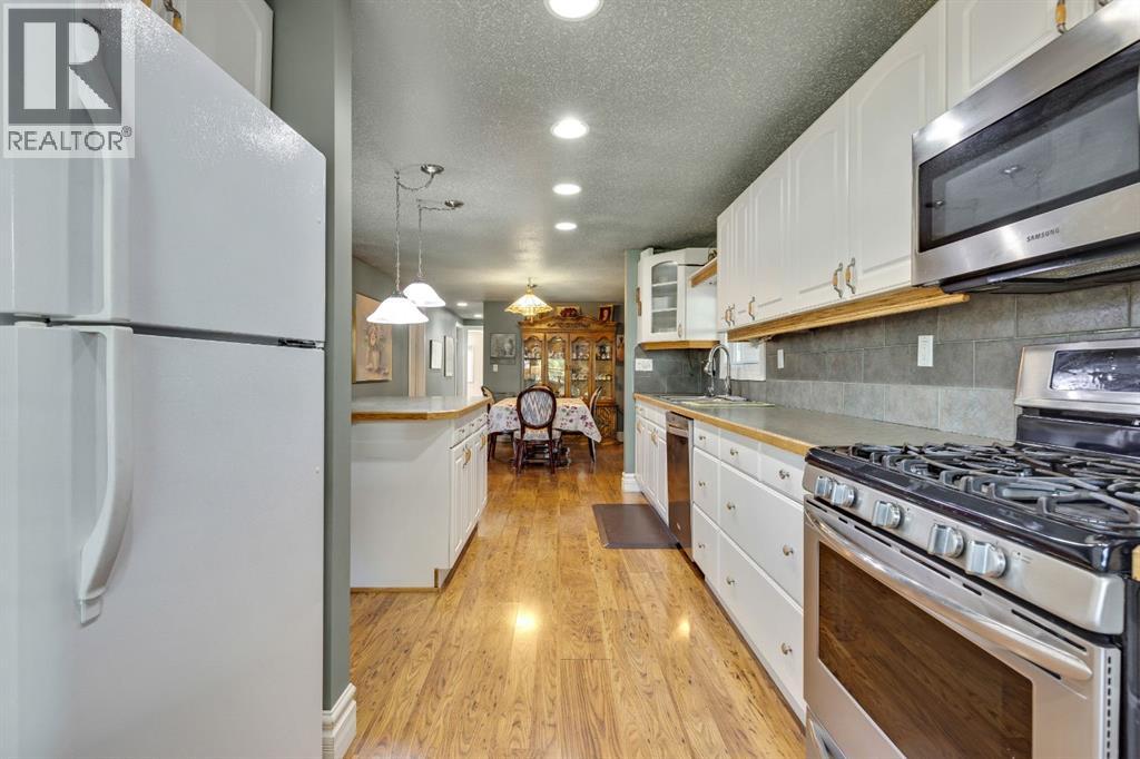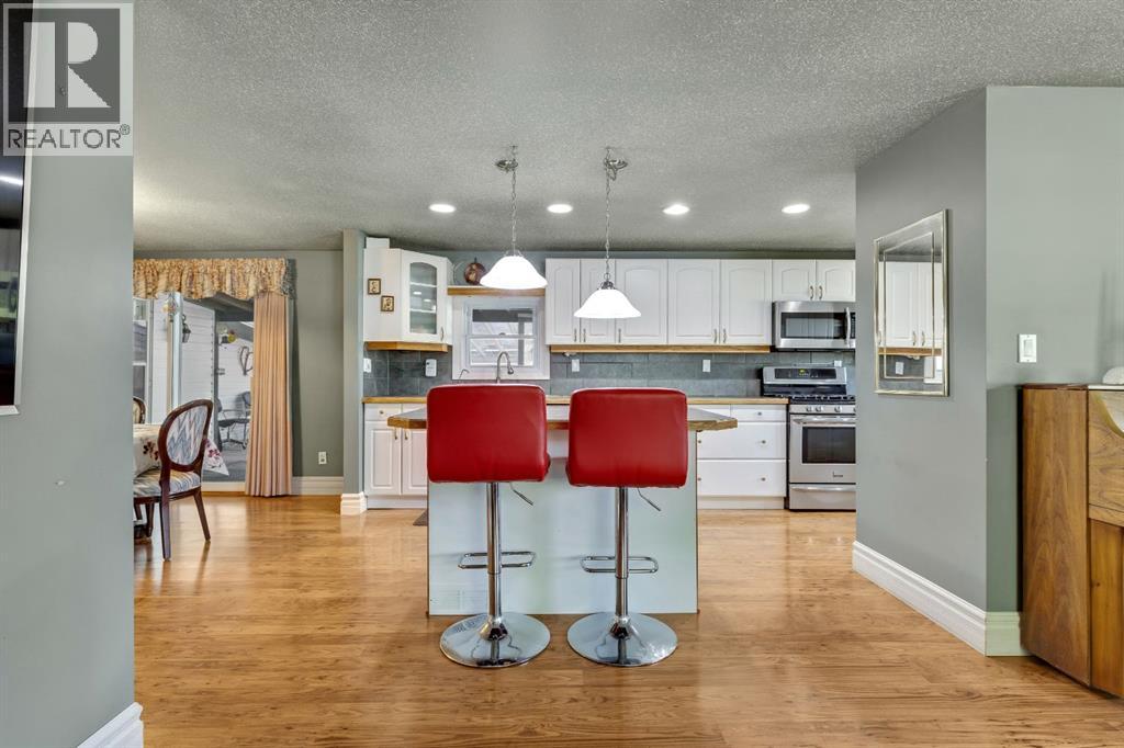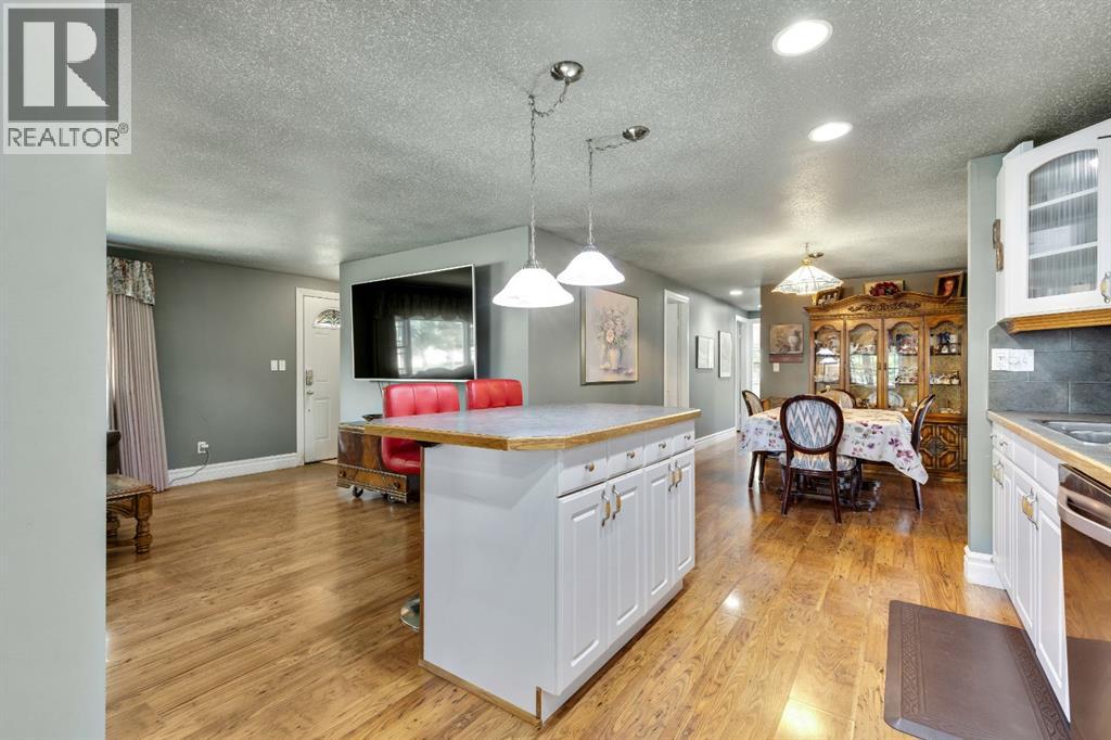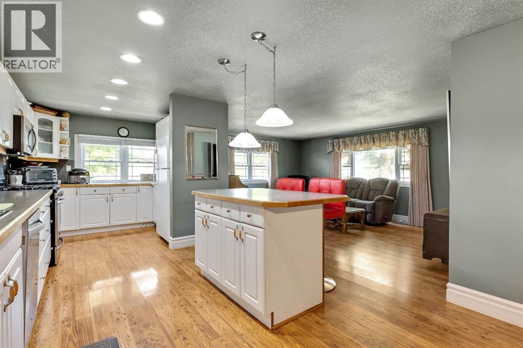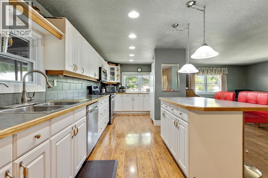 Welcome to your new home in the heart of Rockyford! This updated 3-bedroom, 2-bathroom residence offers comfort, style, and space — perfect for families or anyone seeking small-town charm with modern amenities. The 3 spacious bedrooms are perfect for families with 2 updated bathrooms, the ensuite includes a walk-in shower/tub. The renovated galley kitchen provides ton’s of cupboards and an island to enjoy with a great sized dining room to have everyone over for family dinners. The living room has a gas stove to keep you cozy in the winter months. The laundry room is a great size and includes a den area, off this is a storage/pantry area. The property has newer siding ,upgraded windows (they open both ways!), electrical panel, hot water tank and a new durable metal roof(2023) for worry-free living. Don’t worry about the heat in the summer months as this home has CENTRAL AIR. NEW FURNACE INSTALLED SEPT 2025The Oversized single garage with attached workshop/storage area is perfect to tinker in. The front driveway boasts ton’s of parking and has been conveniently repaved. The back parking also fits 2-3 vehicles, RV Parking allow you to store all your toys on your own property.Step out onto the covered deck and outside to your private backyard oasis, complete with mature trees, blooming flowers, a tranquil pond, and a brand-new fence. Whether you're hosting summer BBQs or enjoying a quiet morning coffee this property has it all. Call your favourite Realtor today to book your private viewing. (id:55577)