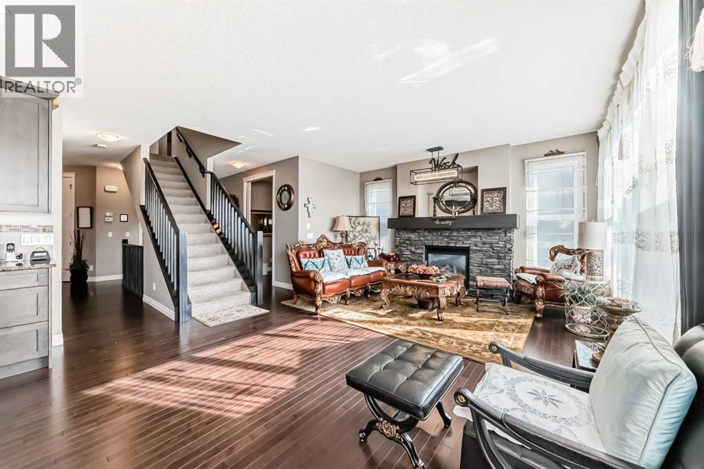 Exceptional Two-Storey Home Backing onto the Pond in Legacy. Welcome to this remarkable residence located in one of Legacy’s most sought-after locations. Backing directly onto the pond and playground, this home offers over 2,700 sqft of well-designed living space with a walk-out basement and private access to the community’s scenic walking paths. The main floor features 9 ft. ceilings and an open concept layout highlighted by hardwood flooring throughout the living room, dining room, and den. All main floor doors are upgraded to 8 ft, creating a grand and elegant look. The chef’s kitchen is equipped with a gas cooktop, built-in oven, and a functional design that is ideal for both everyday living and entertaining. Upstairs, the home offers a spacious bonus room along with four bedrooms, including the primary suite with a 5-piece ensuite featuring dual sinks, a large soaker tub, and a separate shower. A conveniently located second-floor laundry room adds to the practicality of the space. Additional features include central air conditioning, an oversized garage, and endless potential with the walk-out basement. The home combines comfort, style, and functionality, making it an ideal choice for families of all sizes. Situated within close proximity to schools, parks, shopping, and numerous amenities, this property seamlessly blends convenience with modern living. Don’t miss this rare opportunity to own a feature-rich home in a prime Legacy location backing onto the pond. (id:55577)