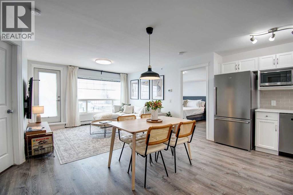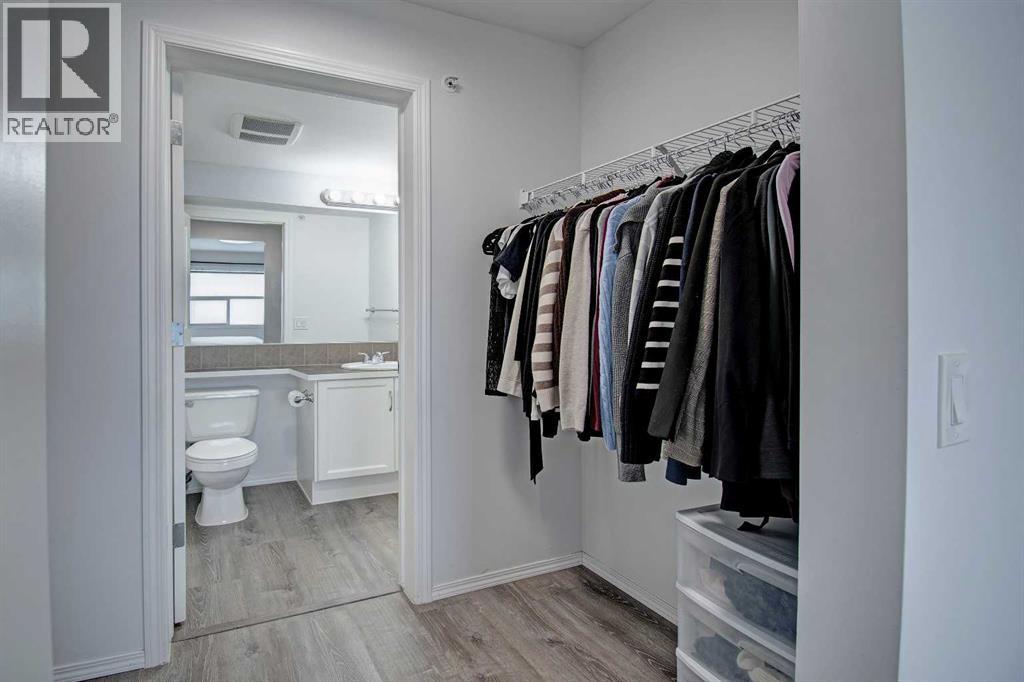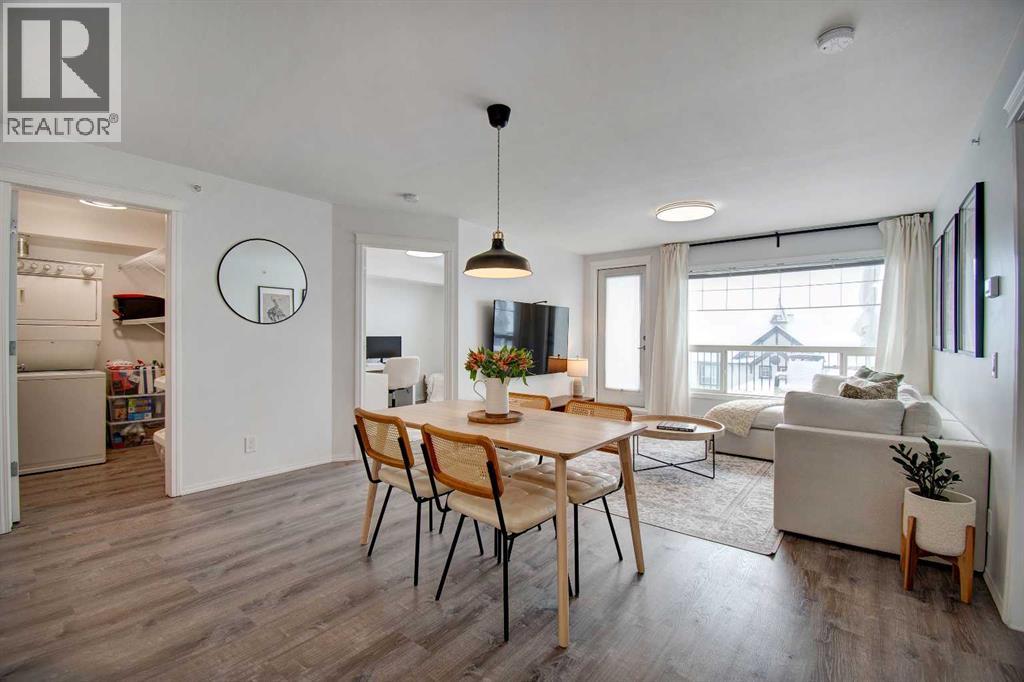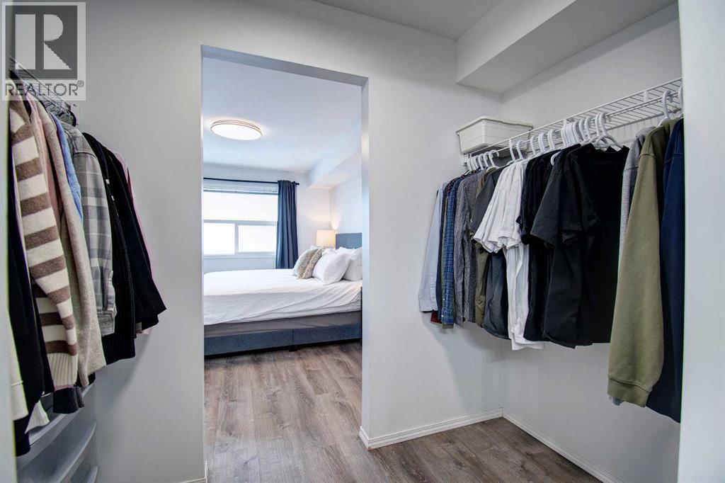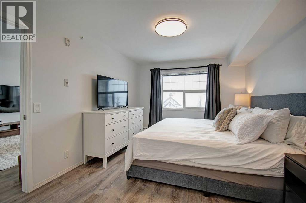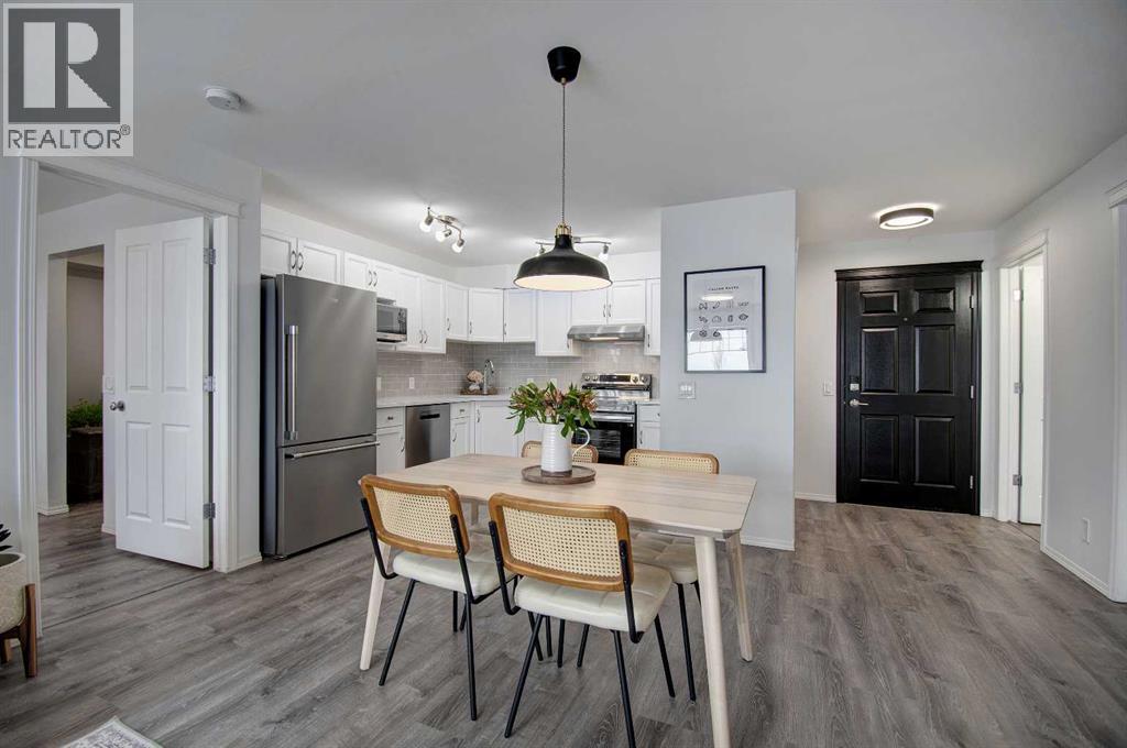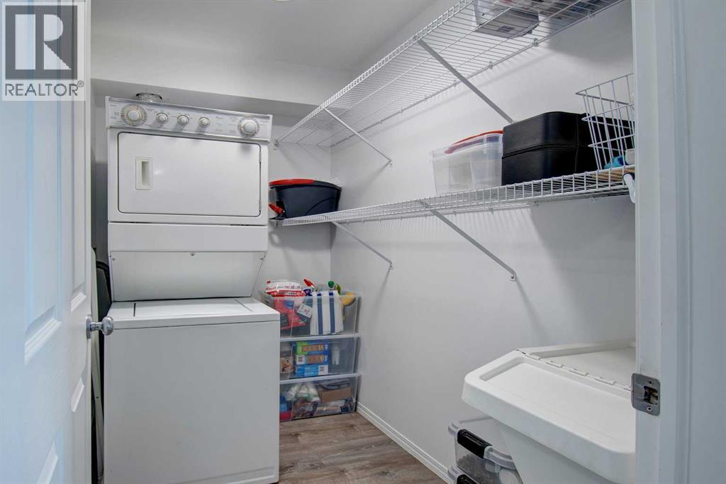Welcome to Sage in NW Airdrie! This cozy top floor, South-facing unit has been thoughtfully updated and renovated and is move-in ready. Enter the open concept living/dining/kitchen and the first thing you notice is the huge windows overlooking the deck. Updated flooring and fresh paint add to the cozy feel. The updated kitchen includes lots of cabinet space, newer countertops, and updated appliances. The living/dining space easily fits a full-sized table and sectional without feeling crowded. A door off the living room leads to the over-sized deck with plenty of space for a patio set and barbeque. The primary bedroom is bright and sunny and large enough for a king-sized bed! A walkthrough closet leads to the 4-piece ensuite. Across the apartment, a second bedroom is currently being used as an office, with a large closet and easy access to the second 4-piece bathroom. The oversized laundry room off the main living space provides a stacked washer/dryer plus plenty of space for additional storage. Located in a quiet building in Sagewood and easy walking distance to parks, shopping, schools, and walking paths; this is the perfect home for someone looking to get in the market or downsize comfortably. Pets allowed with board approval and some restrictions. (id:55577)