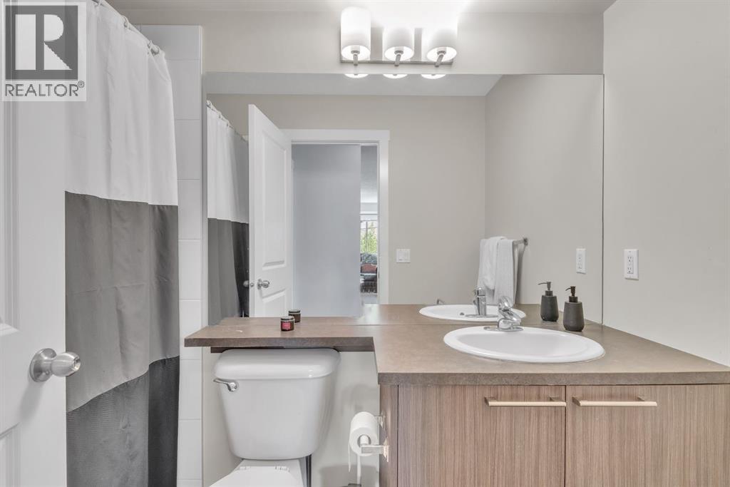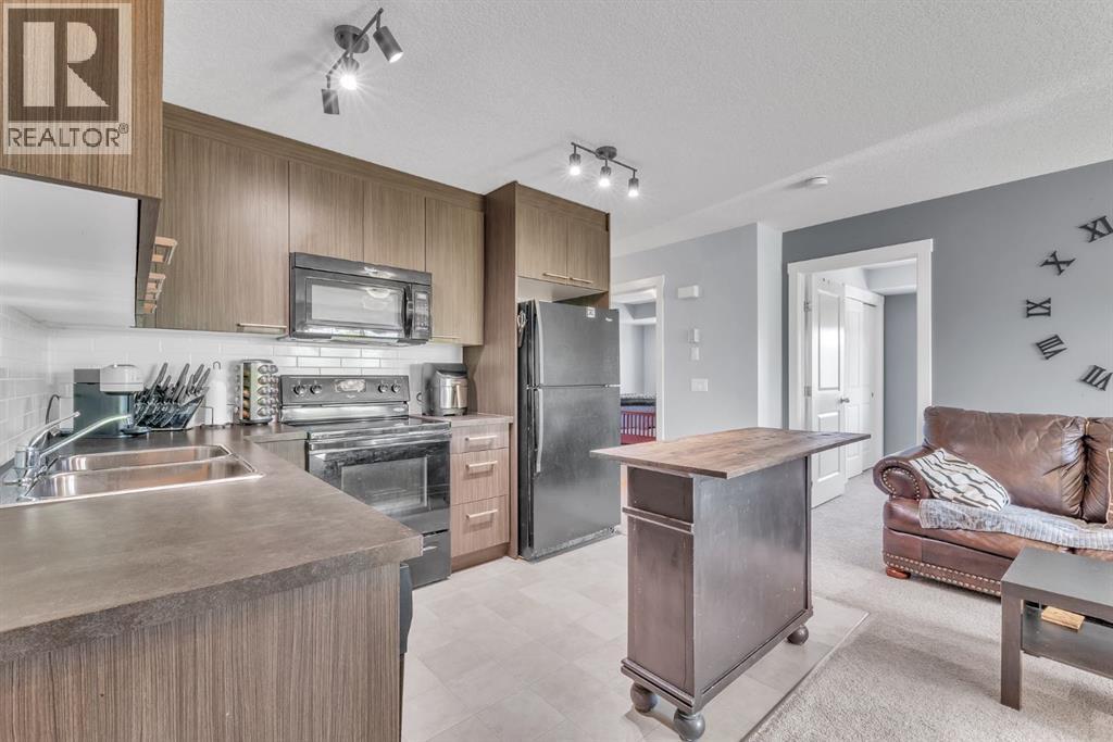 Bright & Inviting 2 Bedroom Condo in the Heart of Chestermere – Steps from the Lake! Welcome to Chestermere Station, where location, convenience, and lifestyle come together! This well maintained top-floor unit offers 820 sq. ft. of smartly designed living space in one of Chestermere’s most desirable areas. Whether you’re a first time buyer, investor, or looking to downsize, this 2 bedroom, 1 bathroom condo is a fantastic opportunity. Step inside and you’ll immediately notice the open concept layout that seamlessly connects the kitchen, dining, and living areas, creating an ideal setup for everyday living and entertaining. Large south facing windows fill the space with natural light, giving it a warm and welcoming feel throughout the day. The kitchen is both functional and stylish, featuring full height cabinetry, ample counter space, and a complete appliance package perfect for whipping up meals or hosting friends. Just off the living room, a private balcony offers a great spot to relax with your morning coffee or enjoy evening sunsets. Both bedrooms are generously sized with good closet space, and the 4 piece bathroom is clean, modern, and easily accessible. You’ll also enjoy the convenience of in suite laundry, making everyday tasks that much easier. Residents of this professionally managed complex enjoy beautifully maintained common areas, landscaped green spaces, and a peaceful community atmosphere. Plus, you’re just a short walk to Lake Chestermere, grocery stores, shops, restaurants, and more. Enjoy low condo fees, a top-floor location, and a move in ready home in an unbeatable setting. Don’t miss your chance to own in this sought after development, schedule your private showing today! (id:55577)