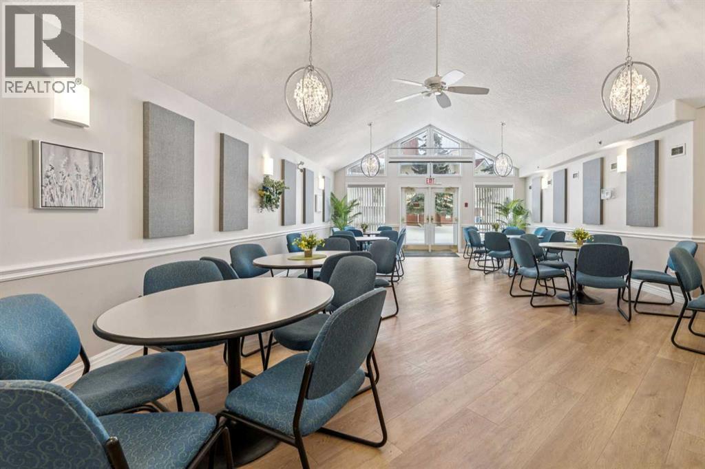 Retire your Cares - NOT your Dreams! Immaculate TOP FLOOR 2 Bedroom/2 Bath Condo with TREED Courtyard Views, AMAZING In-House Amenities & Numerous UPDATES throughout! Stylish Modern Kitchen - QUARTZ Counters, Crisp White & Blue Cabinetry, Stainless Steel Fridge & Dishwasher & Convenient Side PANTRY. Flexible Open Living & Dining Area with lots of natural light - Generous Master with WALK-THRU Closets & Ensuite bath, Spacious 2nd Bedroom perfect for Guests or a Computer/Sewing/Craft Room, 2nd full Bath with “Easy Access” Shower & Private Balcony for relaxing morning coffees with Sunrise views. There’s a large Laundry & Storage Room with newer washer & dryer Plus an X-TRA Storage Locker in your UNDERGROUND parking stall. How’s your SOCIAL calendar? Dana Village offers daily activities - fitness classes, movie nights, potluck dinners, game nights & a “HELPING HANDS” committee to assist owners with small daily chores, along with exceptional SITE FACILITIES - Fitness, Billiards, & Puzzle areas, Woodworking Shop & even a Car Wash Bay - all accessible WITHOUT going outside. SUPERIOR complex construction focused on SAFETY & SECURITY includes 5 elevators, security doors & low maintenance fire retardant materials - Concrete Tile roof, Stucco exterior & fire suppression system with sprinklers & speakers. 55+ AGE Restricted, Non-Smoking complex & 1 cat is permitted with Board Approval. CENTRAL LOCATION with Easy Access to Transit & LRT, Shopping, Downtown & the Mountains too. Those who say “You can’t buy happiness” haven’t been to Dana Village! (id:55577)