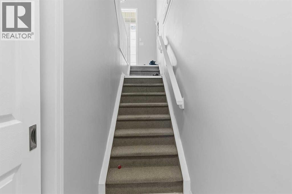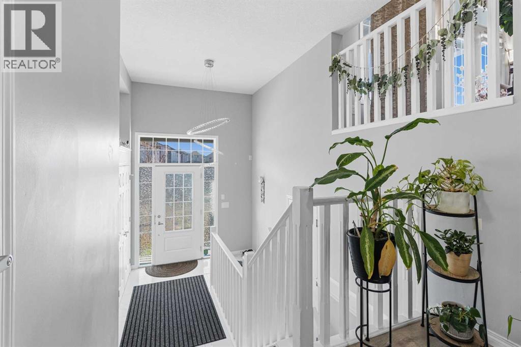**Open House** Saturday 7th February 1.00pm-4pm & Sunday 8th February 1.00pm-4pm** WELCOME HOME to this beautifully appointed 3-bedroom, 2.5-bath residence offering approximately 2,200 sq. ft. of developed living space. Ideally located just minutes from Windsong Elementary School, shopping plazas, grocery stores, parks, and with quick access to 40th Avenue connecting to Calgary via Deerfoot Trail, this home blends comfort with everyday convenience.Exceptional curb appeal leads to a striking foyer featuring elegant marble tile, setting the tone for the thoughtfully designed interior. The main floor showcases gorgeous vinyl flooring, expansive windows, and an abundance of natural light throughout.The chef-inspired kitchen is truly impressive, complete with granite countertops, stainless steel appliances, a walk-in pantry, ample cabinetry, and a sit-up breakfast bar—perfect for both entertaining and daily living.Just a half level up, the open-to-below family room creates a dramatic yet cozy space, highlighted by a gas fireplace and French doors that open onto a massive balcony—ideal for relaxing or hosting guests.Upstairs, you’ll find three spacious bedrooms, including a luxurious primary retreat featuring an exquisite 5-piece ensuite with a large walk-in shower and jetted tub. A well-appointed 4-piece bathroom and a convenient upper-level laundry room complete this floor.The unfinished basement is awaiting your perfect touch, offering an excellent opportunity to develop additional living space tailored to your needs.The backyard features a good-sized deck and a fully fenced, fully landscaped yard, providing the perfect outdoor setting for family enjoyment.This exceptional home offers space, style, and location—a rare opportunity that won’t last long. Book your private showing today! (id:55577)