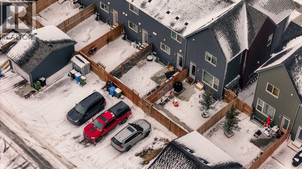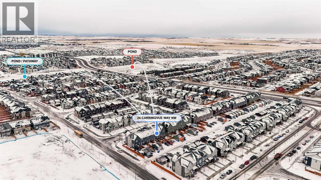 **Open Houses Sat. Mar. 14 & Sun. Mar. 15 from 1:00-4:00pm** NO CONDO FEES and meticulously maintained, this 3-bedroom, 2.5-bath townhome in Carrington offers 1,224 sq.ft. of thoughtfully designed living space, a private outdoor setting, and valuable future garage potential. Built in 2019, the home has been carefully cared for with recent exterior improvements including new siding and roof (2025) and a new furnace blower installed in 2025, reflecting consistent maintenance of the home’s key mechanicals.The main level connects a bright living and dining area to the kitchen, finished with quartz countertops carried throughout the home and stainless steel appliances, creating a clean and durable workspace for everyday living and entertaining. Generous windows—including an oversized bedroom window upstairs—fill the home with natural light.Upstairs, you’ll find three bedrooms, including a primary suite with a spacious walk-in closet and private 3-piece ensuite with shower, while the remaining bedrooms share a 4-piece full bathroom.The professionally completed partial basement currently functions as a comfortable second living room, an ideal escape for movie nights or quiet evenings, while the remaining area is used as a gym and is ready for the next owner’s vision.Outside, the fully fenced, maintenance-free landscaped backyard includes a gas BBQ line and opens to a 2-car gravel parking pad with wiring rough-in, ready for a future oversized single detached garage or workshop. Located on a quiet street steps from Carrington’s pathway network with convenient access to Stoney Trail and nearby amenities, this home offers a balanced blend of comfort, flexibility, and long-term value. (id:55577)