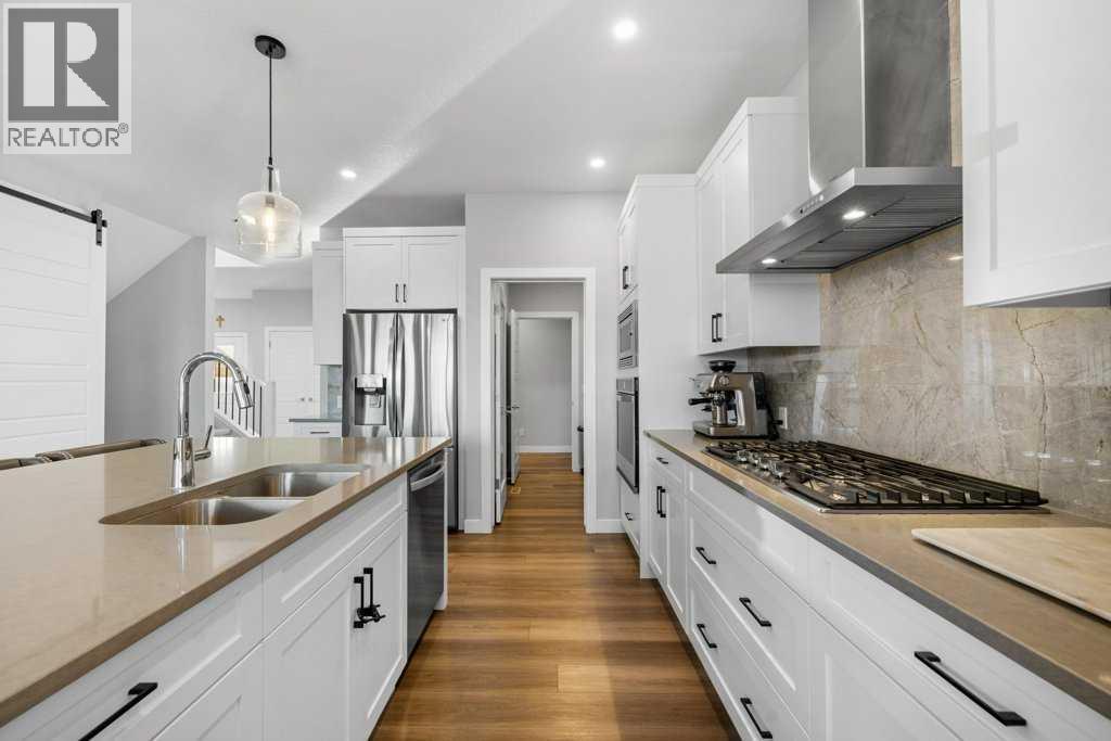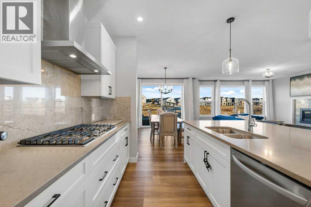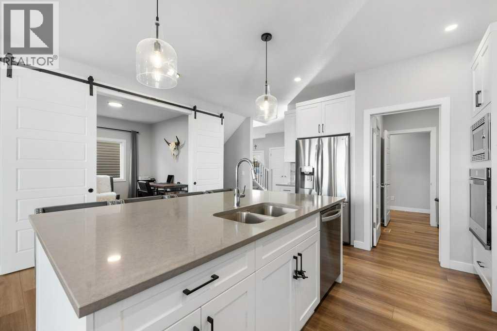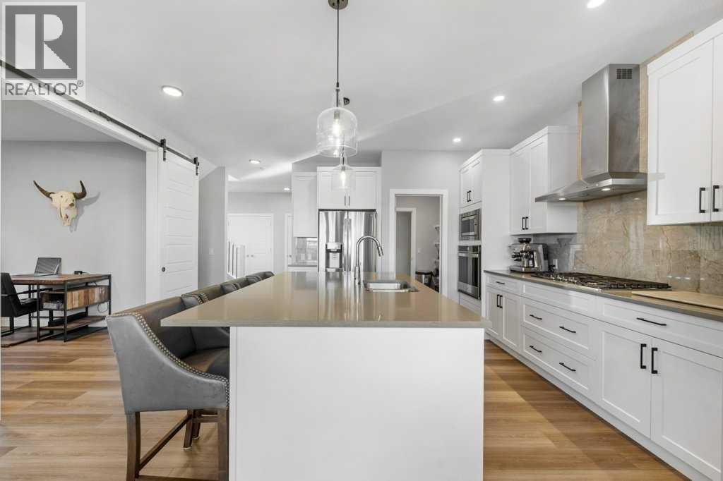 **OPEN HOUSE SAT NOV 22, 1:00-4:00** Perfectly centered on the beautiful WEDDERBURN POND! From your own back windows, you can ENJOY WATCHING the DEER or the DUCKS, or from your back gate, step onto the paved pathway for a WALK, RUN OR BIKE RIDE! Do you have a growing family? How about a 2783 square foot 4-BEDROOM home? With FINISHED BASEMENT, make that 3738 square feet and FIVE bedrooms (+3.5 BATHS)! WHAT A BEAUTIFUL VIEW! You can see not only the scenic POND surrounded by ROCK GARDENS, but beyond the pond to the PICNIC AREA, PUMP PARK for scooters, PLAYGROUND, and OFF-LEASH DOG PARK! Come see 24 Highwood Drive, in one of Okotoks newest communities (close to schools and shopping). BUILT IN 2023, this home feels like new, but BETTER-THAN-NEW, with FINISHED BASEMENT, CENTRAL AIR, HEATED GARAGE and BUILT-IN SOFFIT LIGHTING. The attached double garage is spacious (approximately 23'x24'). From the garage, step into the mudroom with BUILT-IN LOCKERS, and bring groceries straight into your WALK-THROUGH PANTRY (could also become a 'BUTLER PANTRY')! WELCOME YOUR GUESTS to a spacious front foyer, and it will be instantly apparent why you have chosen this home! ELEGANT FINISHING and TASETEFUL DECOR at every turn! The main level offers a back 'WALL OF WINDOWS' with an inviting view toward the pond. Extensive Vinyl Plank flooring! Quartz counters throughout! Nine-foot ceilings! Do you work from home? Great main-level office (with stylish SLIDING BARN DOORS), ideal for your work-from-home days, or a perfect homework station where you can motivate your little learners from the kitchen! This KITCHEN IS THE HEART of the home! Perfect for ENTERTAINING! Plenty of space in the eating area to STRETCH OUT THE TABLE for SPECIAL DINNERS. CRISP WHITE CABINETRY with stone backsplash, plus a LARGE CENTRAL ISLAND with QUARTZ counters, a FLUSH EATING BAR and some island shelving for your cookbooks or display items! STAINLESS-STEEL WALL-OVEN, MICROWAVE, RANGE HOOD, FRIDGE & DISHWASHER, plus a GAS STOVE for instant heat, and delicious family meals! The living room is a great place to entertain your guests, by your ATTRACTIVE and COZY GAS FIREPLACE. Throughout the day, when the kids need a separate play space, the FINISHED BASEMENT will keep the main level tidy. With a GUEST BEDROOM directly across from a FULL BATHROOM, and a large REC ROOM/TV AREA for FAMILY GAMES NIGHTS. Toward the end of the day, head upstairs and WATCH A MOVIE TOGETHER in the central bonus room. 'FOUR BEDS UP' provides all the space your family needs for future growth. The MAIN BATH upstairs has TWO SINKS (plus a door to the shower area, eliminating scheduling problems for the bathroom). How about a PRIMARY BEDROOM and ENSUITE that together take up the full width of the back of the home. The PRIMARY BEDROOM IS HUGE, easily handling a 'KING-SIZED' bed and dressers. Ensuite with double sinks, full-length shower and a tub to RELAX at the end of your busy day! Mint-condition. View today! (id:55577)