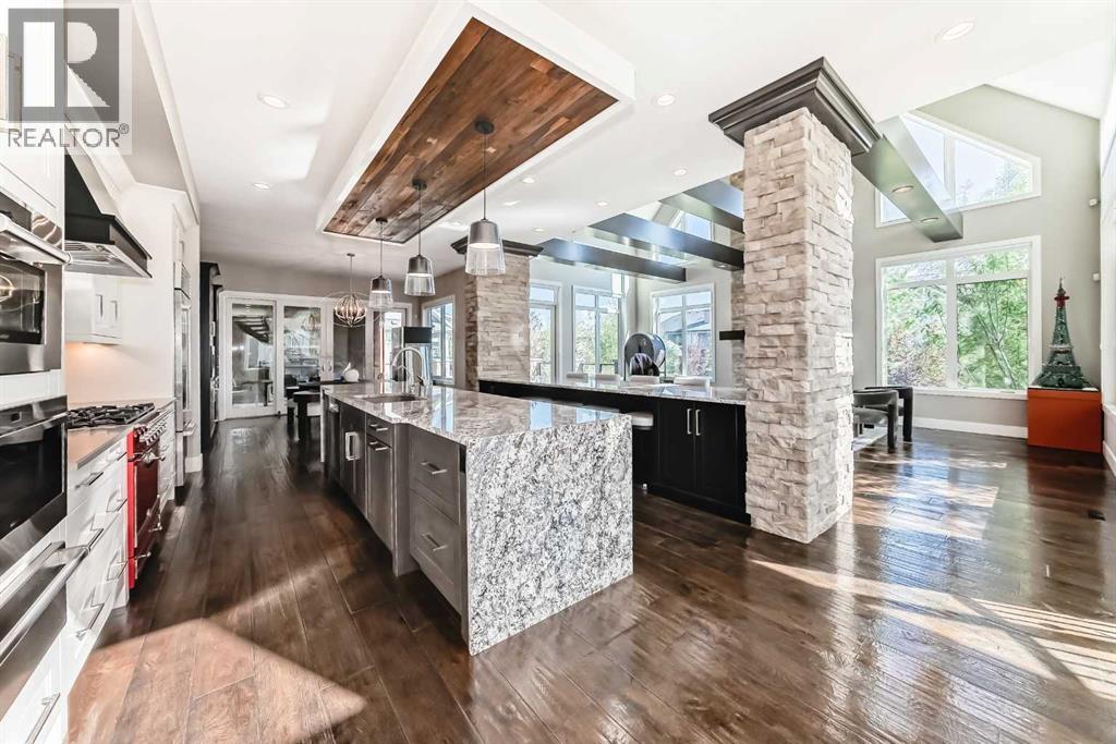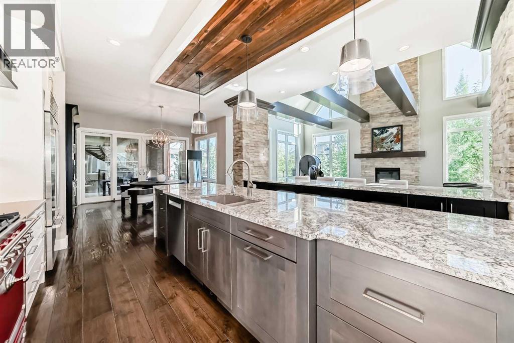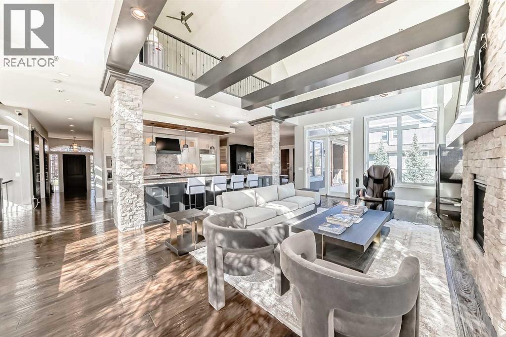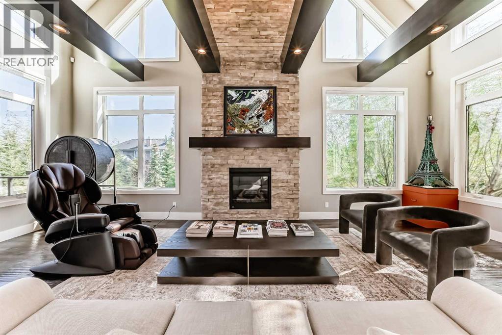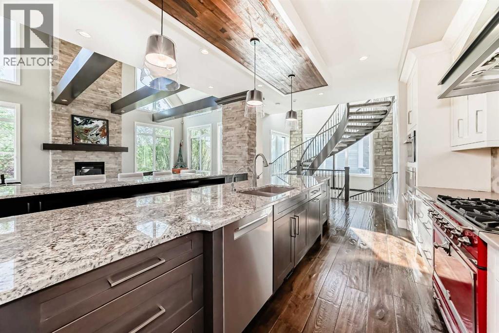 FORMER ASTORIA SHOWHOME – NATIONAL FINALIST FOR HOME OF THE YEAR! Welcome to 24 Rockwater Way in Watermark, a masterpiece by Astoria Custom Homes.Recognized as a Canadian National Finalist for Housing Excellence and a SAM Awards Finalist for Best New Home, this residence was ranked among the TOP FIVE homes in the nation.The home opens with a dramatic foyer, where wide-plank hardwood, 11-foot ceilings, and a curved open-rise staircase set the tone. Sunlight floods the space, illuminating stone-clad columns, wood-beamed ceilings, and hand-painted details. The chef-inspired kitchen featuring dual granite waterfall islands, a La Cornue range, Sub-Zero refrigeration, and a Wolf built-in coffee system. A butler’s pantry with beverage center streamlines entertaining, while custom cabinetry, subtle lighting, and professional-grade finishes complete the space. French doors open to a covered deck with a stone-clad fireplace, extending the gathering space for year-round enjoyment. In the great room, a soaring stone fireplace anchors the design, while exposed beams draw the eye upward.Custom lighting and built-in speakers enhance the ambiance, highlighting both architecture and comfort. A private home office with barn doors and tailored built-ins offers function with style, while the bright dining nook—framed by designer finishes—creates an inviting space for everyday living. Upstairs, the primary suite is a private sanctuary with vaulted ceilings, a fireplace, and a hidden walk-in closet. The spa-inspired ensuite offers heated tile floors, a glass shower, private water closet, and a soaking tub designed for pure serenity. A second guest suite with ensuite, two additional bedrooms with a shared full bath, and a loft overlooking the great room provide space for family and guests. A full laundry room with custom cabinetry adds convenience.The walkout basement is designed for both relaxation and entertaining.Highlights include a rec/theatre room with stone-clad built-ins, wet bar, and wine display; a fifth bedroom with full bath for guests; and walkout access to a covered patio prepped for a hot tub with gas fire bowl rough-in. The triple-attached heated garage features epoxy floors, slab heating, and custom storage—combining function with refined elegance.Over $40,000 in thoughtful upgrades make this home move-in ready, including a 2024 Bosch dishwasher, radon mitigation system, landscaping with new trees, mulch, and driveway sealing, patio improvements with a new staircase and screened patio, and custom window blinds, among other refinements. Watermark at Bearspaw delivers tranquility, privacy, and prestige. Architectural controls preserve timeless beauty, and the absence of commercial development ensures peace and exclusivity. Residents enjoy a central plaza with gazebo and outdoor fire pit, soccer field, reflection pond, BBQ facilities, landscaped parks, NBA-sized sports court and 5 km of paved trails. Book your private showing today and Welcome Home! (id:55577)