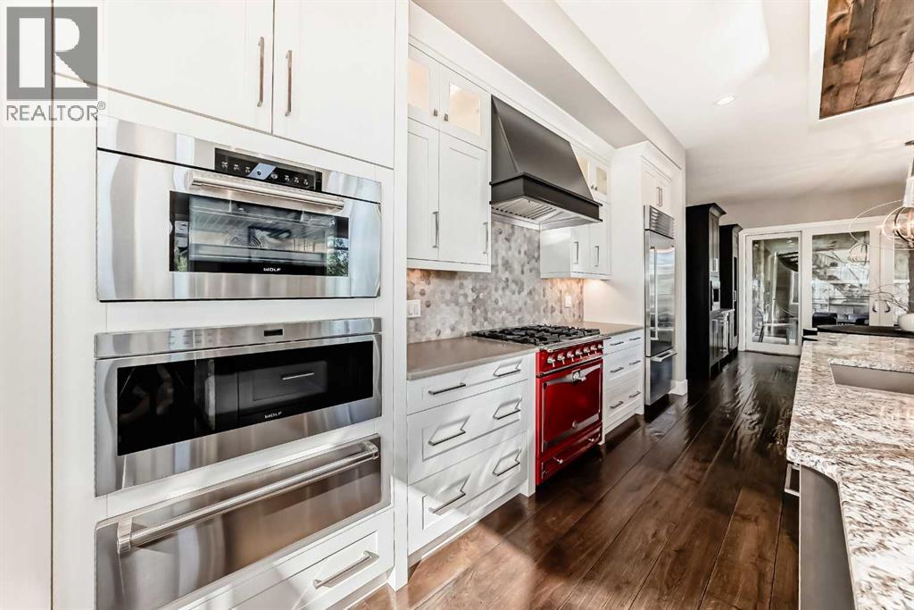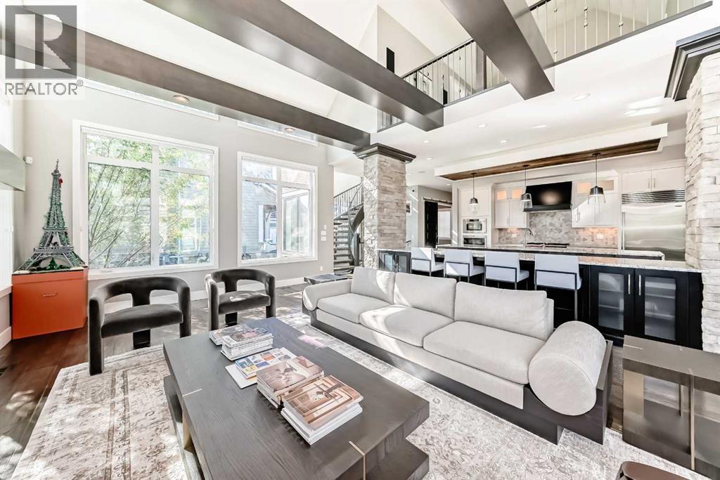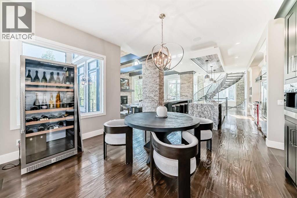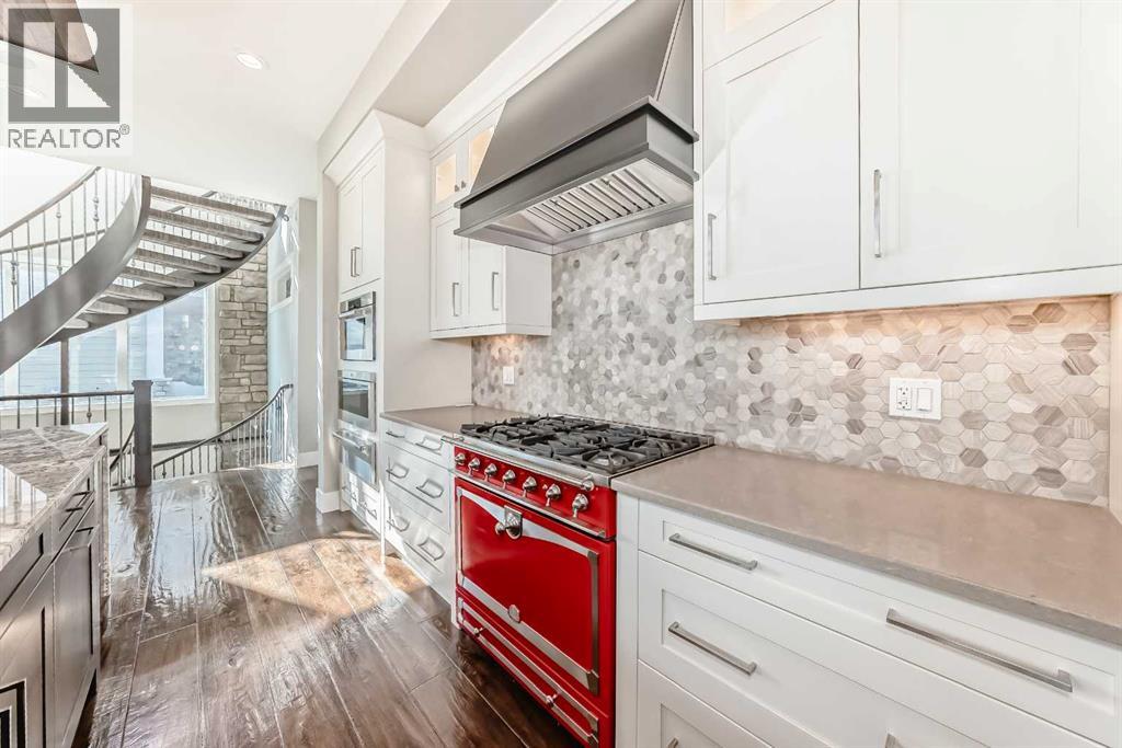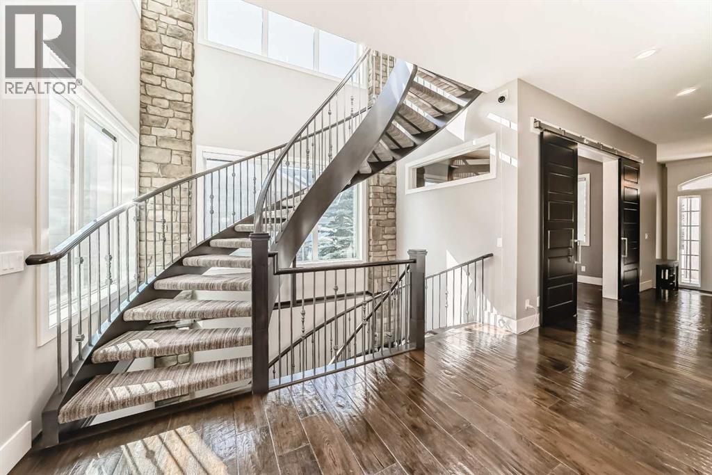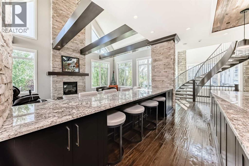 FORMER ASTORIA SHOWHOME – NATIONAL FINALIST FOR HOME OF THE YEAR! Welcome to 24 Rockwater Way in Watermark, a masterpiece by Astoria Custom Homes.Recognized as a Canadian National Finalist for Housing Excellence and a SAM Awards Finalist for Best New Home, this residence was ranked among the TOP FIVE homes in the nation.The home opens with a dramatic foyer, where wide-plank hardwood, 11-foot ceilings, and a curved open-rise staircase set the tone. Sunlight floods the space, illuminating stone-clad columns, wood-beamed ceilings, and hand-painted details. The chef-inspired kitchen featuring dual granite waterfall islands, a La Cornue range, Sub-Zero refrigeration, and a Wolf built-in coffee system. A butler’s pantry with beverage center streamlines entertaining, while custom cabinetry, subtle lighting, and professional-grade finishes complete the space. French doors open to a covered deck with a stone-clad fireplace, extending the gathering space for year-round enjoyment. In the great room, a soaring stone fireplace anchors the design, while exposed beams draw the eye upward.Custom lighting and built-in speakers enhance the ambiance, highlighting both architecture and comfort. A private home office with barn doors and tailored built-ins offers function with style, while the bright dining nook—framed by designer finishes—creates an inviting space for everyday living. Upstairs, the primary suite is a private sanctuary with vaulted ceilings, a fireplace, and a hidden walk-in closet. The spa-inspired ensuite offers heated tile floors, a glass shower, private water closet, and a soaking tub designed for pure serenity. A second guest suite with ensuite, two additional bedrooms with a shared full bath, and a loft overlooking the great room provide space for family and guests. A full laundry room with custom cabinetry adds convenience.The walkout basement is designed for both relaxation and entertaining.Highlights include a rec/theatre room with stone-clad built-ins, wet bar, and wine display; a fifth bedroom with full bath for guests; and walkout access to a covered patio prepped for a hot tub with gas fire bowl rough-in. The triple-attached heated garage features epoxy floors, slab heating, and custom storage—combining function with refined elegance.Over $40,000 in thoughtful upgrades make this home move-in ready, including a 2024 Bosch dishwasher, radon mitigation system, landscaping with new trees, mulch, and driveway sealing, patio improvements with a new staircase and screened patio, and custom window blinds, among other refinements. Watermark at Bearspaw delivers tranquility, privacy, and prestige. Architectural controls preserve timeless beauty, and the absence of commercial development ensures peace and exclusivity. Residents enjoy a central plaza with gazebo and outdoor fire pit, soccer field, reflection pond, BBQ facilities, landscaped parks, NBA-sized sports court and 5 km of paved trails. Book your private showing today and Welcome Home! (id:55577)