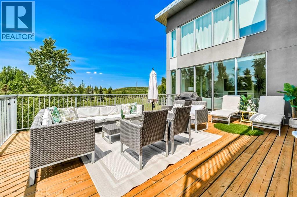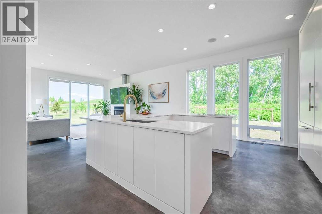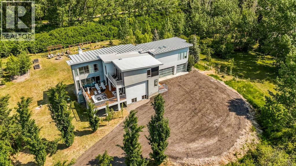 Welcome to a remarkable fusion of modern elegance and acreage tranquility—an extraordinary custom-built estate nestled on a beautifully manicured 2-acre parcel, including a high-earning legal suite, just a short drive from the vibrant heart of Calgary. This exceptional 8-bedroom, 4.5-bathroom residence offers 4,941 square feet of exquisitely designed living space, crafted with a seamless blend of architectural sophistication and everyday comfort. From the moment you arrive, you're greeted by the striking contemporary design—featuring clean lines, a sleek metal roof, and purposeful elements that make this home as stylish as it is functional. Expansive floor-to-ceiling windows invite an abundance of natural light throughout, illuminating polished concrete floors and emphasizing the spacious, open-concept layout. The main dining area flows effortlessly from the state-of-the-art kitchen—complete with high-end appliances, extensive quartz countertops, custom cabinetry, and a large center island—into a generous living room with a real wood-burning fireplace, perfect for cozy gatherings and enjoying panoramic views. A dedicated den offers a quiet space for a home office or study. Each of the six well-proportioned bedrooms provides a private sanctuary, with the luxurious primary suite featuring a spa-inspired ensuite with dual vanities, a walk-in shower, makeup vanity, and open-concept closet. The remaining bathrooms are outfitted with sleek, contemporary fixtures that reflect the home's modern character. Downstairs, the fully developed walk-out basement opens up a world of possibility, with a home theater, gym, and recreation room ready to suit any lifestyle. Adding incredible value is the thoughtfully designed 2-bedroom legal suite above the triple-attached garage, with a private entrance and full kitchen—currently generating $2,100 per month in consistent rental income, making it ideal for investors, multigenerational living, or offsetting mortgage costs. The expansive l ot includes mature landscaping, a 3,500-gallon cistern, a large deck for entertaining, and wide open spaces perfect for gardening or play—all set against sweeping prairie views. Lovingly maintained by the original owner and built with premium materials throughout, this home combines modern luxury with practical functionality. Despite its peaceful rural setting, the property is just minutes from Calgary’s city limits, the South Health Campus, top-rated schools, shopping, restaurants, and all essential services. Whether you're searching for a luxurious family retreat, a flexible multigenerational setup, or a savvy investment opportunity, this extraordinary estate offers unmatched versatility and timeless appeal. This property is a must see in person to truly take it all in. Ask your favorite realtor and come on Buy! (id:55577)
