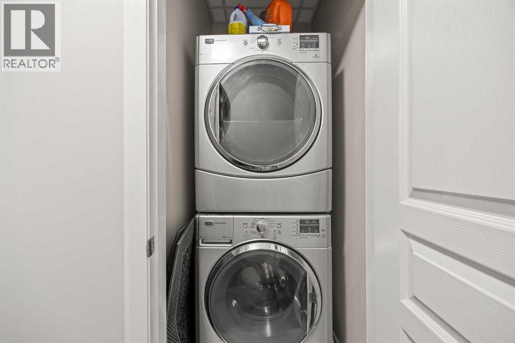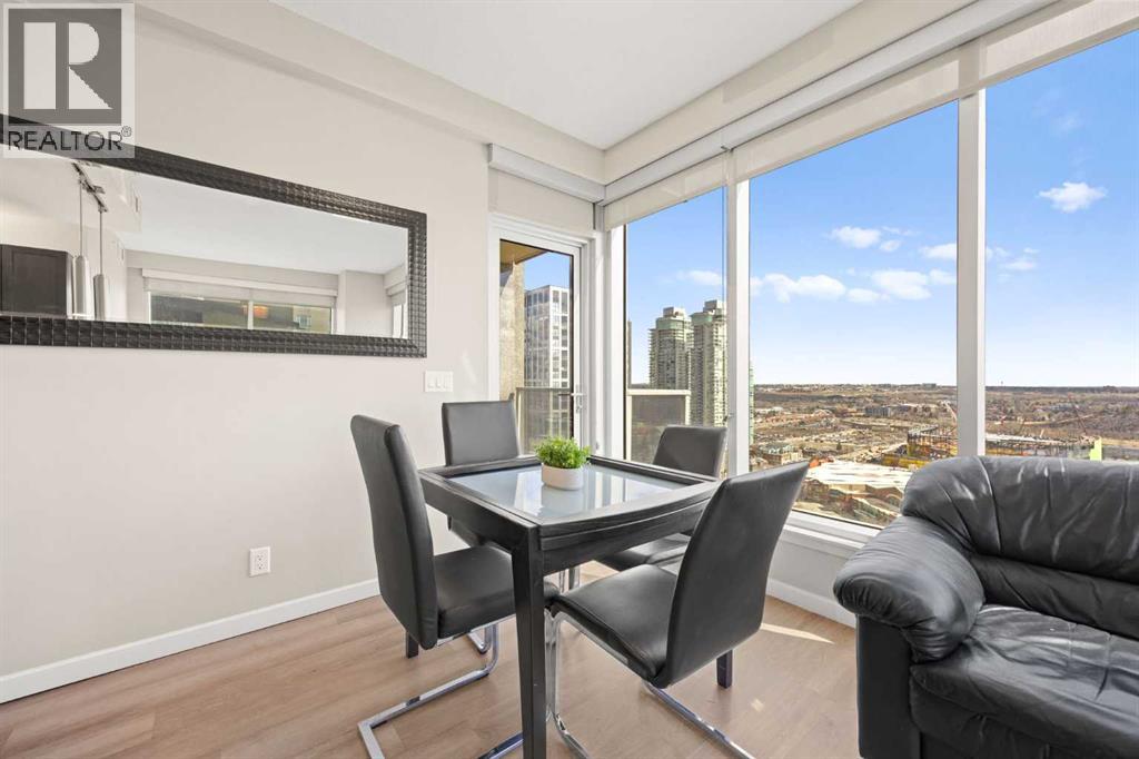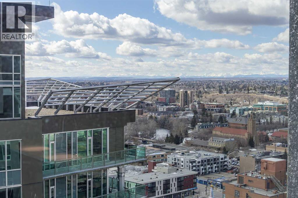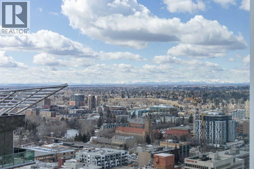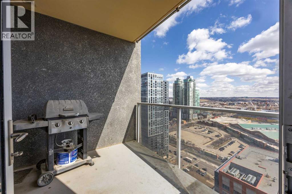 Welcome to the Alura! This bright CORNER UNIT is located on the 24tTH FLOOR and has panoramic views of the new Scotia Place, stampede grounds & the Rocky Mountains! . With an open floor plan boasting a full bank of windows to enjoy the views plus the living room which also has a patio door leading to your cover balcony and a well appointed kitchen this fully furnished home is move in ready and not to be missed. The kitchen has an extra large peninsula island with seating, tiled backsplash, white counters, stainless steel appliances and plenty of cabinets. There are 2 good sized bedrooms, which includes the primary with an ensuite and walk-in closet, the main bath, insuite laundry and a titled parking stall to complete this home. The Alura complex has much to offer from the 2 fitness centres, patio and garden areas and bike storage to the fact that it is just steps away from transit & LRT, parks, the stampede grounds, the many amenities of 17th Avenue and you can walk to work downtown! Don't miss out on this amazing opportunity! (id:55577)