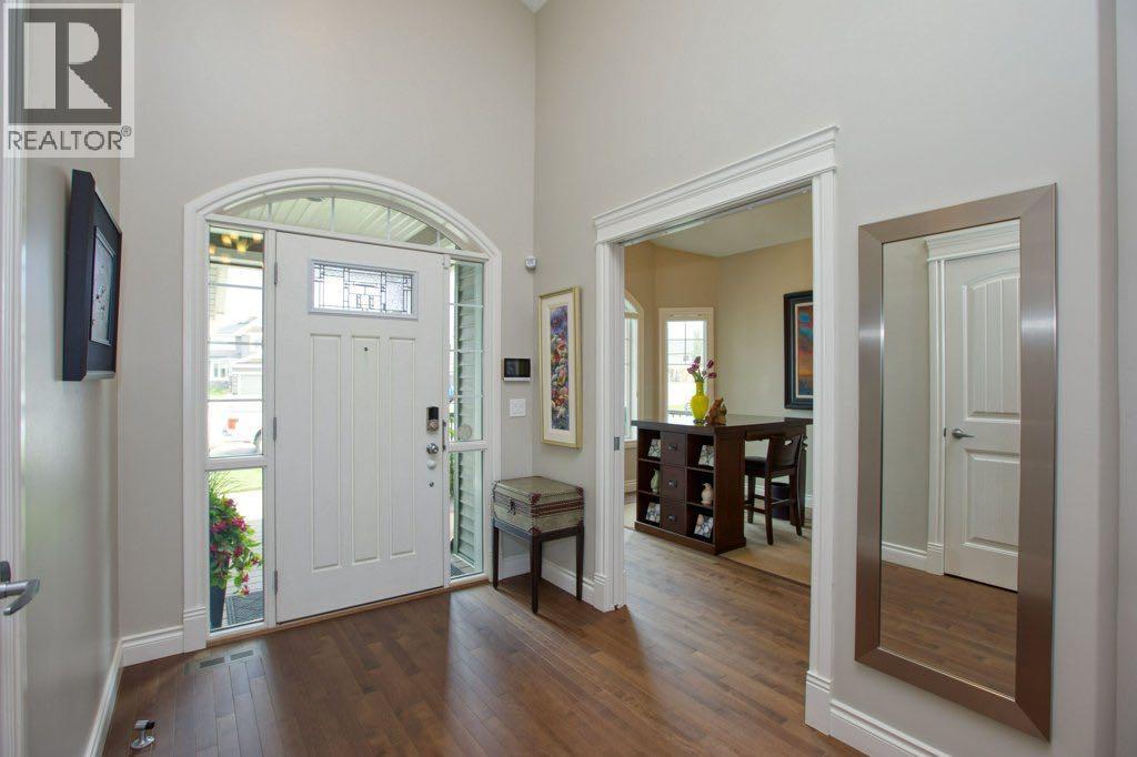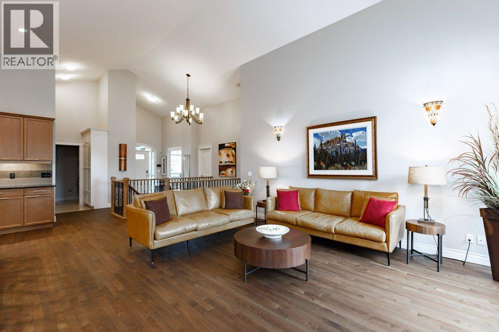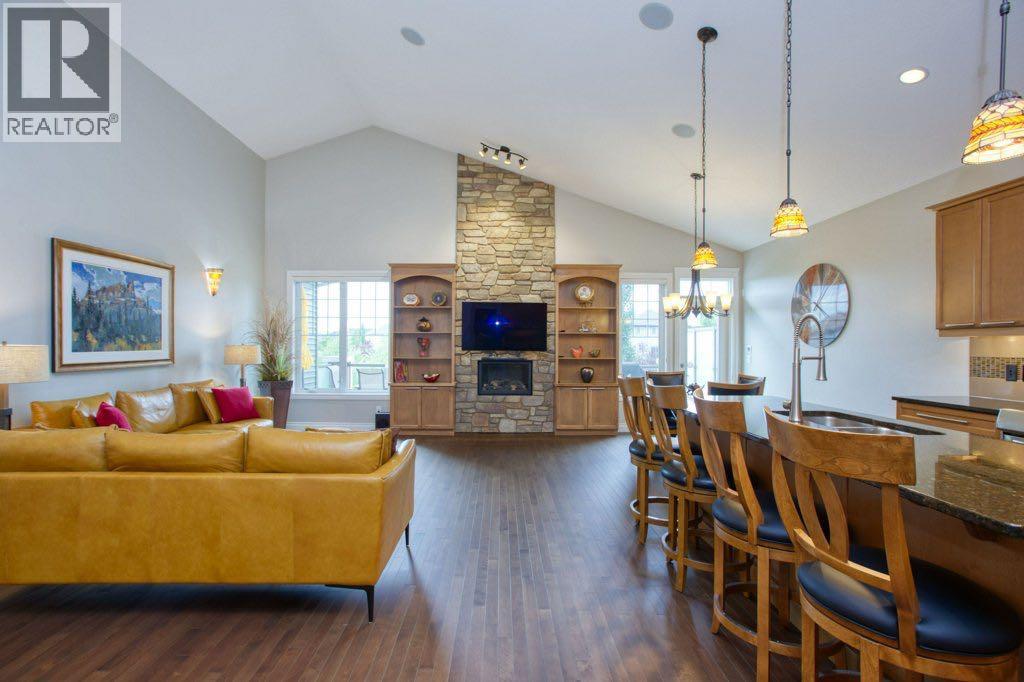 NEW Price on this upgraded McKee Homes 4-BEDROOM + DEN BUNGALOW in BAYSIDE offers CANAL-FRONT living with a WEST-FACING backyard built for all-season enjoyment. Over 1,500 SQ FT on the MAIN FLOOR features vaulted ceilings, newly redone HARDWOOD floors, and a floor-to-ceiling stone FIREPLACE with CUSTOM BUILT-INS. A FRONT OFFICE makes working from home easy with a 2-piece bath next door, while the MAIN-FLOOR MASTER overlooks the water with a 5-piece-ensuite w/ in-floor heating and walk-in closet. The KITCHEN includes UPGRADED APPLIANCES such as a BOSCH dishwasher, plus BUILT-IN AUDIO wired throughout the home. The DEVELOPED WALKOUT adds another 1,462 SQ FT with 3 BEDROOMS, full bath w/ in-floor heating, a second fireplace, wet-bar, and a SOUND-INSULATED room—ideal for a musician, gamer or movie enthusiast. The HEATED TRIPLE GARAGE provides space for a FULL-SIZED TRUCK, SUV, and WORKSHOP/Storage! Recent upgrades include matte finished HARDWOOD floors, dual TRANE FURNACES, CENTRAL A/C, and TANKLESS hot water. Outside, enjoy a NAUTICAL-THEMED YARD with retractable awnings, hot tub, custom lighting, and mature landscaping, leading to the waters edge. Lifestyle, location, and upgrades combined here. WATERFRONT homes in BAYSIDE are RARE—book your private showing today! (id:55577)
