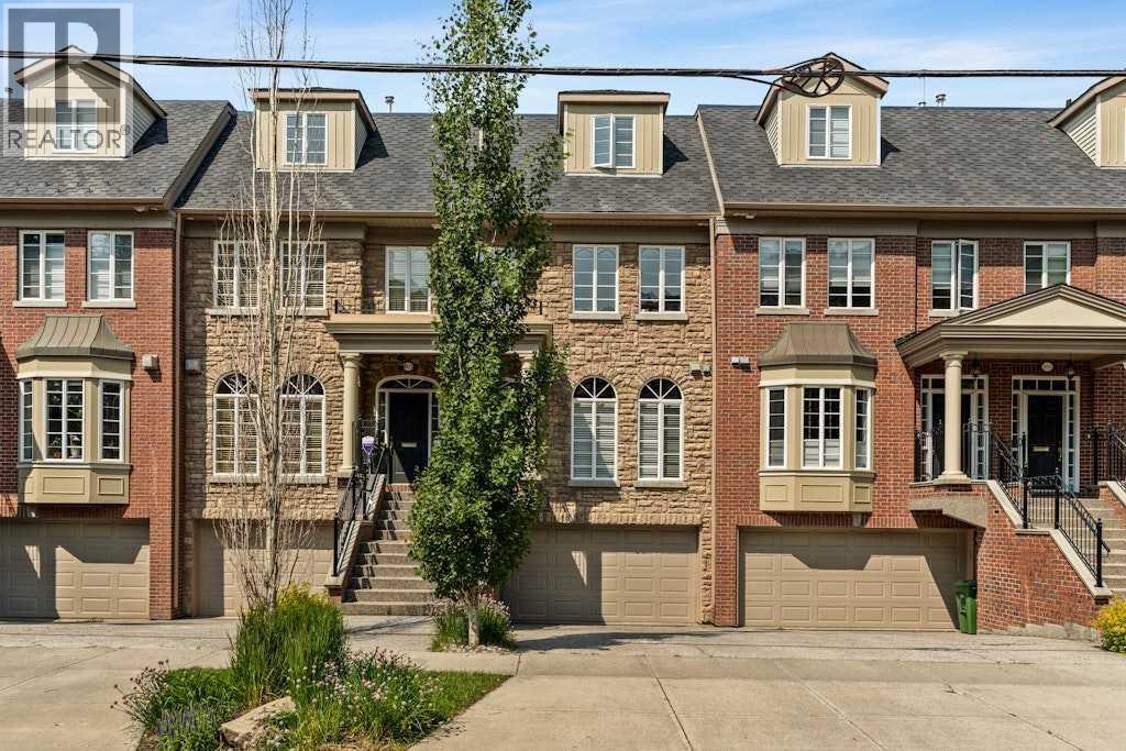 Open House: Sunday October 5, from 12:00pm-3:30pm. This elegant brownstone is nestled in the prestigious Riverrun complex, perfectly positioned along the banks of the Elbow River in Calgary’s desirable inner-city community of Erlton. This sophisticated home offers a distinguished open-concept main floor with gleaming hardwood floors, soaring ceilings, intricate crown moulding, and a striking gas fireplace framed by a carved mantle and custom built-ins. Double French doors lead to a stunning private deck and beautifully landscaped green space that backs directly onto the river. The kitchen is a true classic, featuring rich cherry cabinetry, stainless steel appliances including a gas cooktop, a centre island with breakfast bar, and a sunlit nook—ideal for leisurely morning coffees. A powder room completes the main level. Upstairs, two spacious bedrooms each offer their own ensuite bathrooms, generous closets, and plenty of natural light. The top floor is devoted to the decadent primary suite, complete with a luxurious 5-piece ensuite, walk-in closet, and a private balcony—perfect for peaceful mornings or starry evenings. Set in one of Calgary’s most charming and walkable neighbourhoods, you’re just steps from river pathways, Lindsay Park, the MNP Community & Sport Centre, the Stampede grounds, C-Train access, and the shops and restaurants of Mission. This is a rare opportunity to own a timeless home in an irreplaceable location. (id:55577)