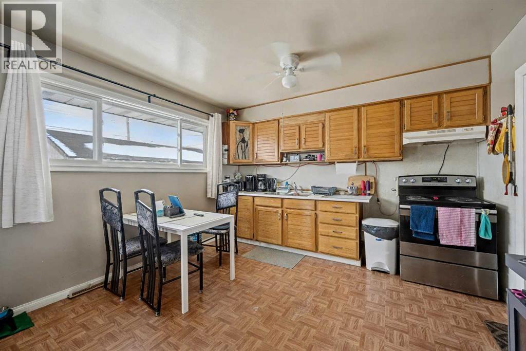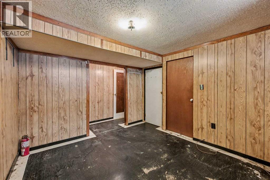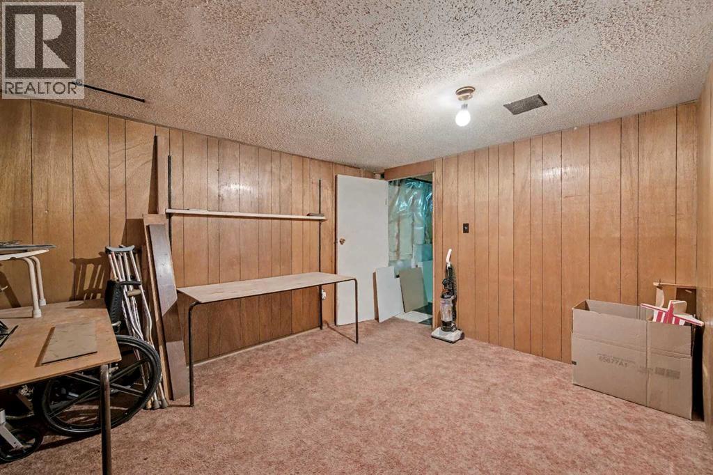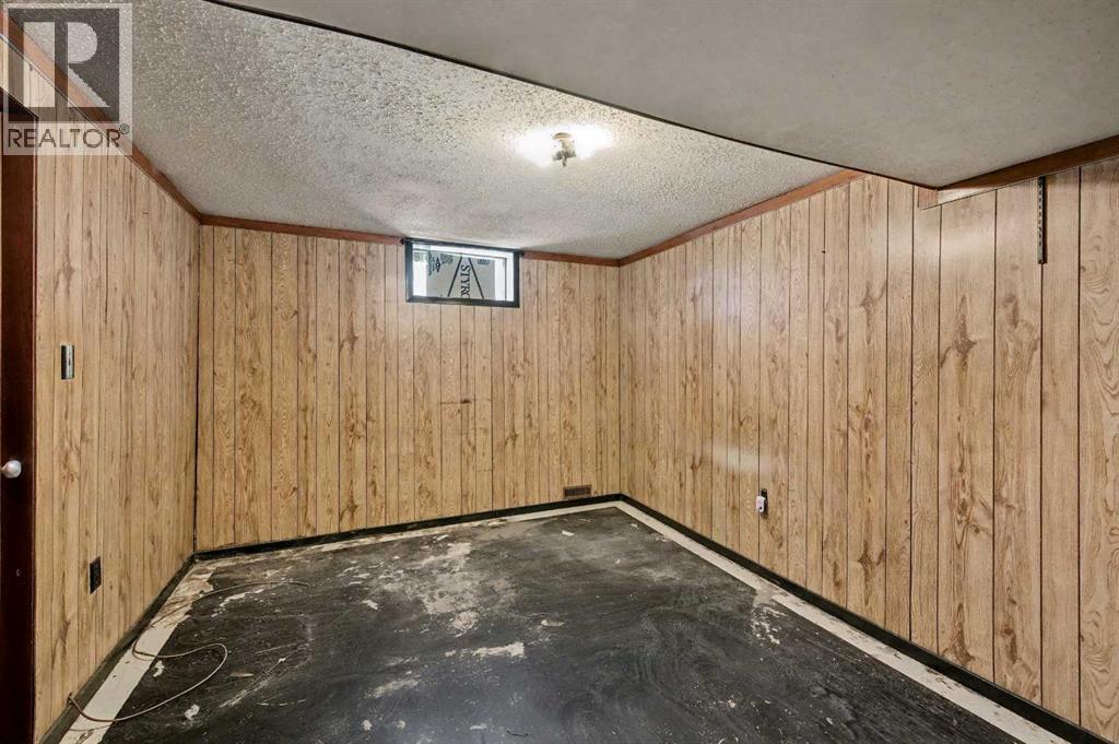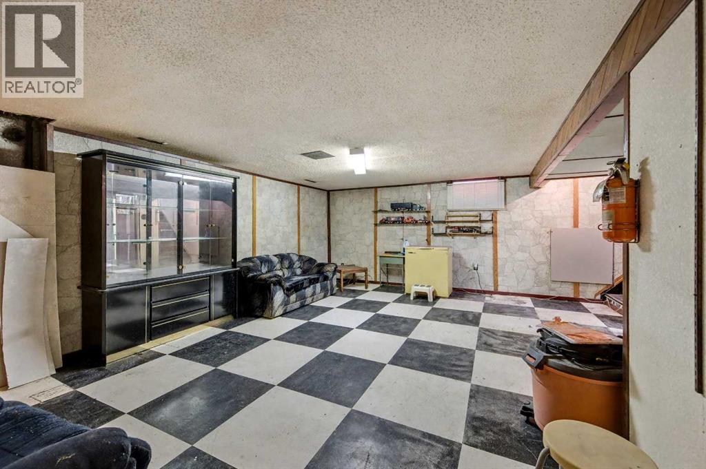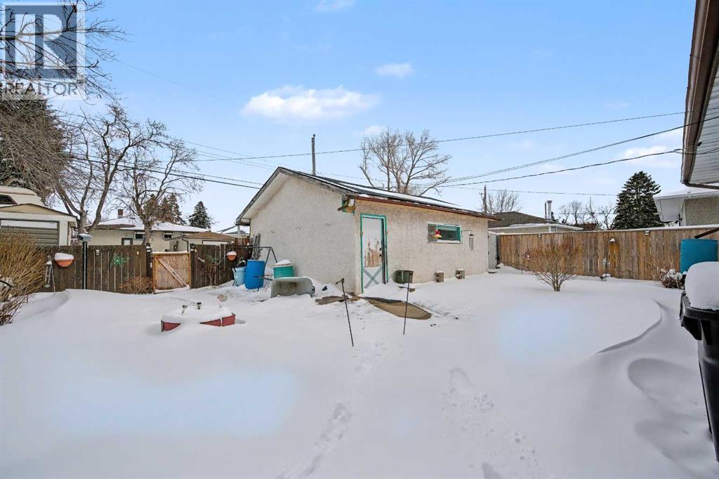 This bungalow offers solid value and is located on a quiet street next to a park. With 1,061 square feet above grade, the main floor includes three bedrooms, a spacious living room, and a kitchen with an eating area. The living room and hallway feature solid hardwood flooring that could be refinished, while the remaining rooms have linoleum. The home has had some key updates over the years, including main floor windows (2024), furnace and central air (2014), roof shingles (2010), and new doors (2026). The main bathroom has been converted to a three-piece for accessibility. The basement includes two additional bedrooms, a recreation space, and a large laundry/mechanical room. The second bathroom requires work but has existing plumbing in place. Outside, there is an oversized double detached garage and a large backyard. Located in Forest Lawn, close to elementary, junior high, and high schools, as well as shopping, transit, and major routes. A good opportunity for buyers looking to update and add value. (id:55577)