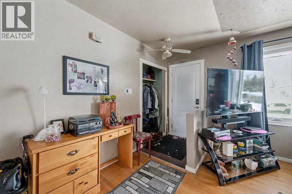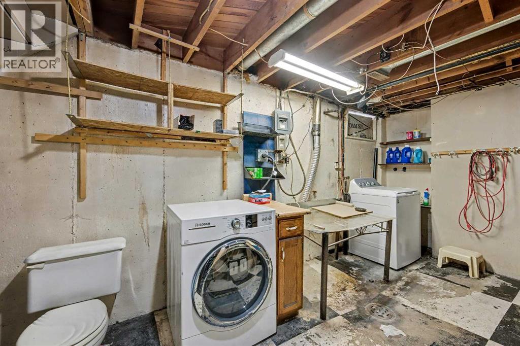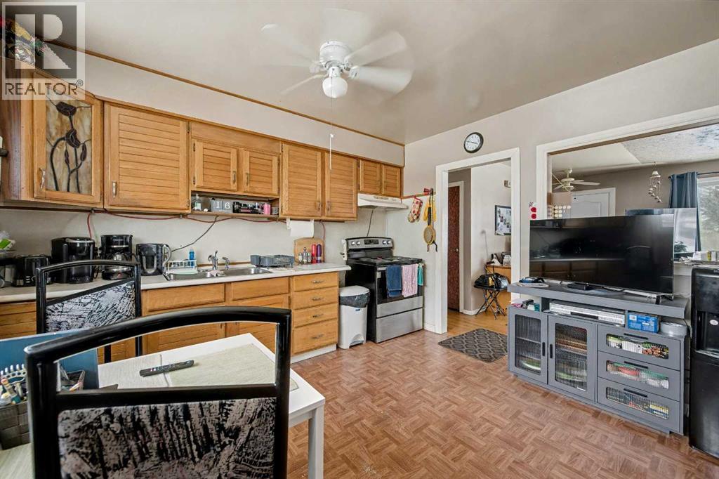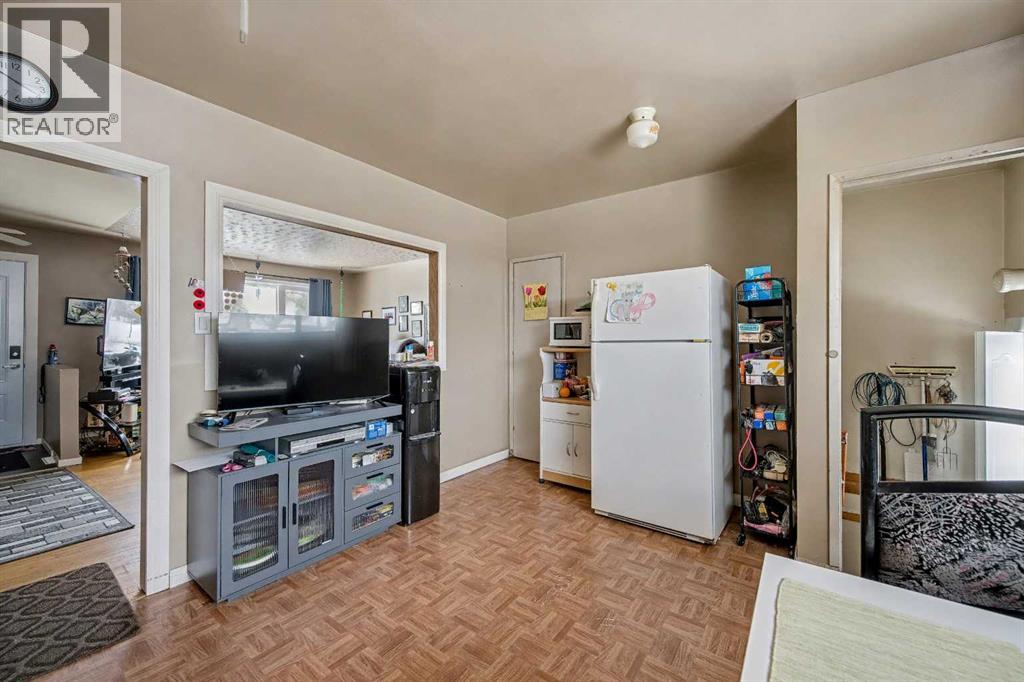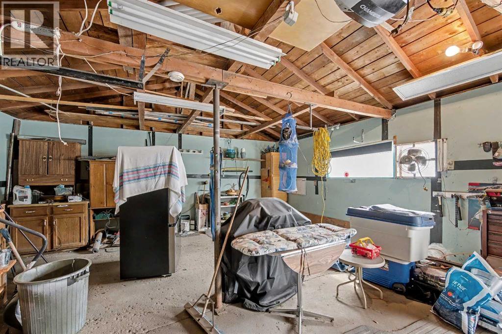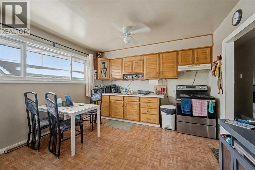 This bungalow offers solid value and is located on a quiet street next to a park. With 1,061 square feet above grade, the main floor includes three bedrooms, a spacious living room, and a kitchen with an eating area. The living room and hallway feature solid hardwood flooring that could be refinished, while the remaining rooms have linoleum. The home has had some key updates over the years, including main floor windows (2024), furnace and central air (2014), roof shingles (2010), and new doors (2026). The main bathroom has been converted to a three-piece for accessibility. The basement includes two additional bedrooms, a recreation space, and a large laundry/mechanical room. The second bathroom requires work but has existing plumbing in place. Outside, there is an oversized double detached garage and a large backyard. Located in Forest Lawn, close to elementary, junior high, and high schools, as well as shopping, transit, and major routes. A good opportunity for buyers looking to update and add value. (id:55577)