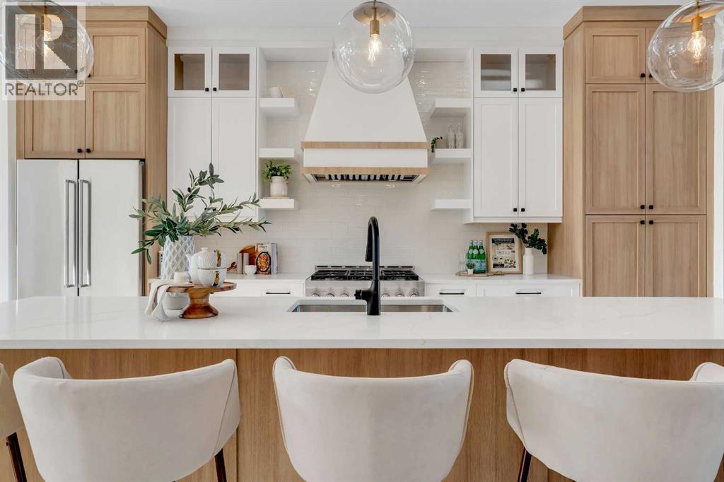 --OPEN HOUSE SATURDAY/SUNDAY 1-3PM---QUIET LOCATION- WALKOUT BASEMENT-Welcome to this beautiful, brand-new semi-detached home in the sought-after community of Richmond. Featuring a fully finished walk-up basement and a double detached garage, this home blends a functional layout with stylish, high-quality finishes that are both modern and comfortable. Step inside to a bright, open-concept main floor highlighted by wide-plank hardwood flooring throughout. The front foyer includes a practical built-in with vertical shiplap detailing, offering both charm and everyday organization. The kitchen is the true centerpiece of the home, anchored by a large waterfall quartz island with seating. Stainless steel appliances — including a gas range — pair perfectly with the two-tone cabinetry in warm wood and crisp white for a timeless, contemporary feel. The kitchen flows seamlessly into the dining area and living room, where wall-to-wall sliding glass doors flood the space with natural light and provide easy access to the backyard. A standout feature here is the gas fireplace, finished with beautiful dark floral tile that adds personality without overpowering the space. A convenient two-piece powder room completes the main level. Upstairs, you’ll find three generously sized bedrooms along with a dedicated upper-floor laundry room. The primary suite is a relaxing retreat, complete with a tray ceiling and a walk-in closet. The spa-inspired five-piece ensuite offers a dual vanity, glass-enclosed shower, and a freestanding soaker tub — perfect for unwinding at the end of the day. The fully finished lower level features a walk-up entrance that brings in additional light and provides direct backyard access. This level includes a spacious rec room with a built-in wet bar, wine storage, sink, and floating shelves — ideal for entertaining. A fourth bedroom and a full four-piece bathroom make this space perfect for guests, a roommate, or older children wanting more privacy. Situated on a q uiet street, this home offers an unbeatable location close to everything Killarney has to offer. You’re within walking distance to Marda Loop, and the shops and restaurants. This is an excellent opportunity to own a move-in-ready home in one of Calgary’s most desirable inner-city neighbourhoods.- ASK ABOUT OUR UPGRADE OPTIONS- ATTACHED UNIT ALSO AVAILABLE. (id:55577)