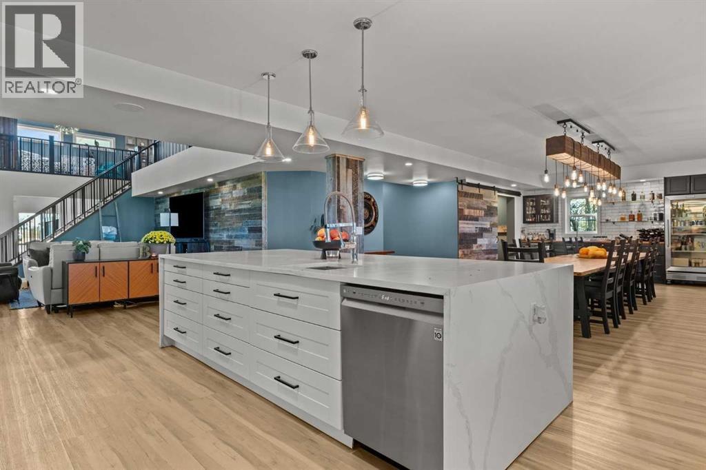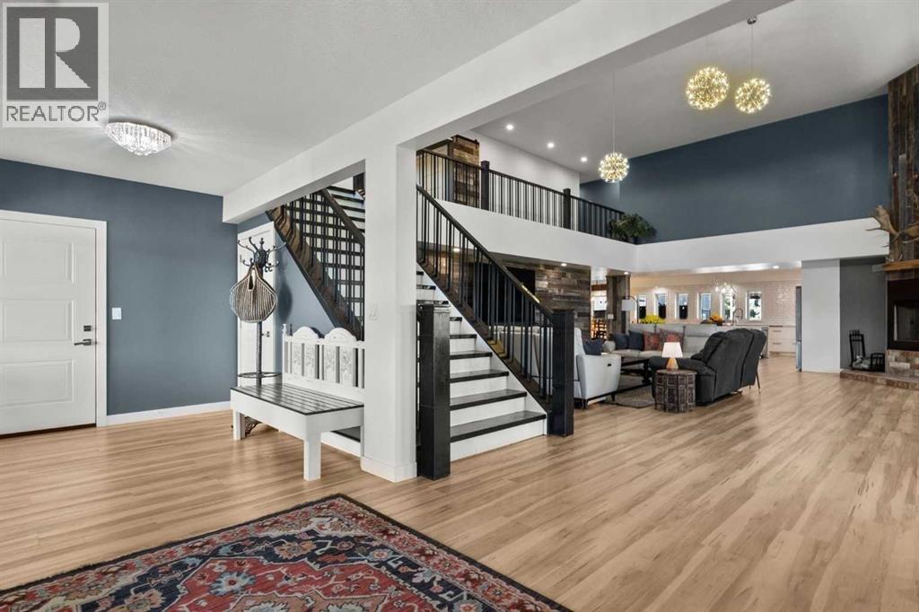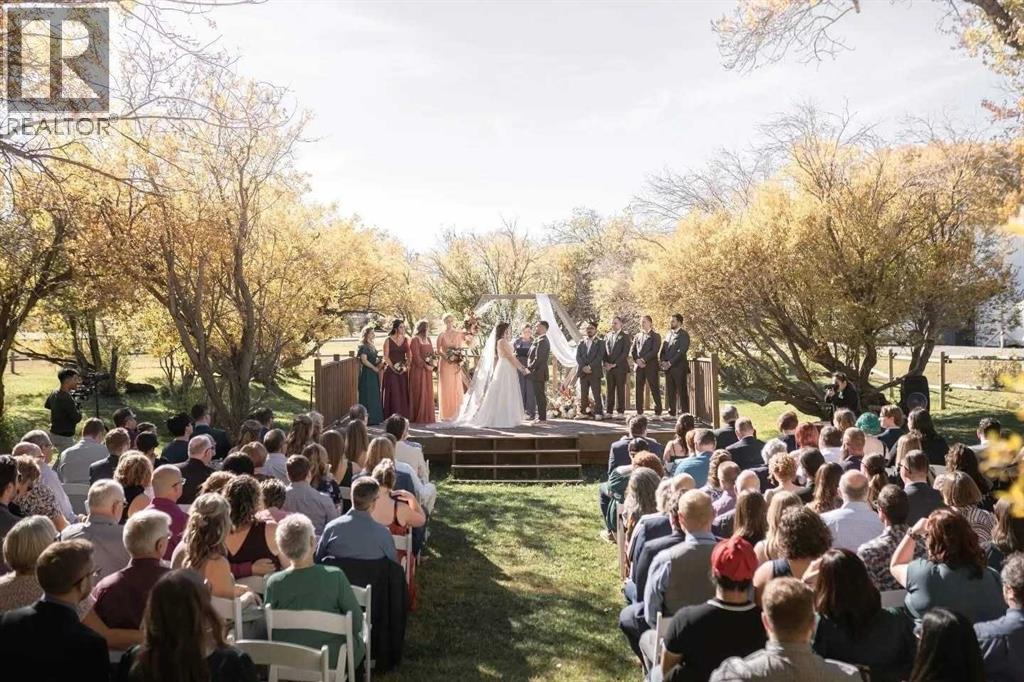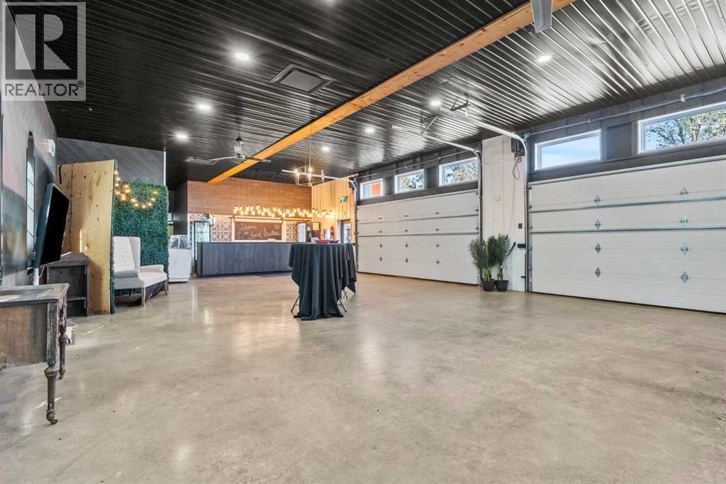 YOUR DREAM ESTATE AWAITS!! Nestled on 13+- acres of picturesque Alberta landscape, this extraordinary property blends seamlessly offering luxury living & unparalleled commercial potential with Rural Business Zoning. Voted TOP 10 FOR OUTDOOR WEDDING VENUES IN AVENUE MAGAZINE IN 2025. The PRIMARY RESIDENCE offers over 4400 sq ft of luxury custom designed living and a SECOND RESIDENCE is a completely renovated 3 bed/2 bath mobile situated a distance from the main house affording everyone serene privacy. Soaring ceilings showcase the expansive use of windows and the stunning open to above floor plan. A family centric Great Room boasts an open ended design to capture and maximize your preferred seating arrangements. Masterfully created is a showstopping kitchen and dining area with gleaming full height cabinetry overlaid with marbled quartz and a massive island that features a waterfall design beckoning the finest culinary experts and delivers several areas for preparation and display. For the connoisseur there is a separate coffee station equipped with a sink & dishwasher & full sized pop/water cooler. Bosch appliances include a gas stove, built in microwave and oven, water/ice refrigerator, hood fan and a 2nd dishwasher. A private media room, gym & two pc bath complete the main floor. Ascending to the upper floor your eyes scan and appreciate the vastness of the size of this home and stunning open to below views. Elegantly appointed the primary retreat features a spa ensuite bath with a fully tiled walk in shower, deep jetted tub, double sinks in the quartz topped vanity and a private water closet. The walk in closet includes it's own laundry mates. A massive outdoor upper deck offers panoramic views. Two oversized secondary bedrooms include private access to a five pc bath and separate laundry room. Completing the upper floor is a comfy bonus room and an office. The main house can double as a private retreat or an extension of the attached event venue. The secon d dwelling is ideal for guest accommodations, bed and breakfast, a manager's quarters or rental income through a yearly lease or Airbnb opportunities. Combining luxury and privacy coupled with a premier location, this package delivers extraordinary business potential. Boasting a 76'10" x 25'8" WSP constructed wedding and event building with modern lighting, polished floors to dance the night away, and stylish decor, 3 washrooms, fully licensed bar area, COMMERCIAL KITCHEN, space that allows for events to accommodate 250 guests. Romantic and beautifully orchestrated outdoor areas provide natural spaces for intimate gatherings or larger events including corporate events, reunions, retreats and weddings. Whether you are an entrepreneur, investor, or are looking for your new forever home, this fabulous TURNKEY ESTATE & EVENT VENUE will meet your highest expectations & deliver a thriving business opportunity too. ADDITIONAL 74 ACRES FOR SALE ZONED RB A2261248. ON PAVEMENT 5 MINUTES TO STRATHMORE. (id:55577)