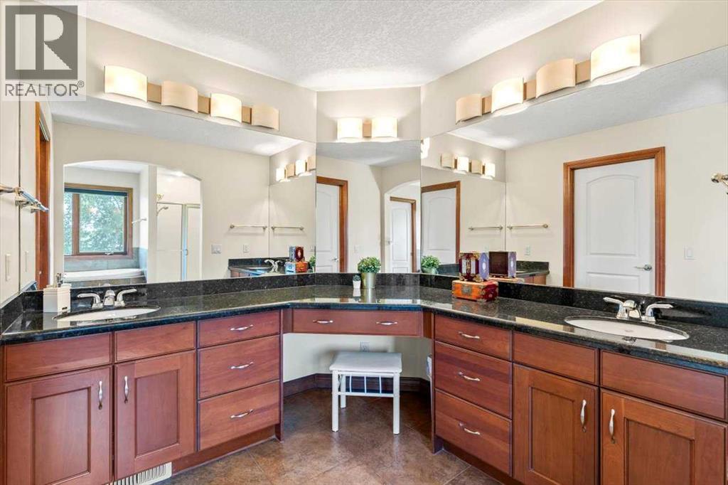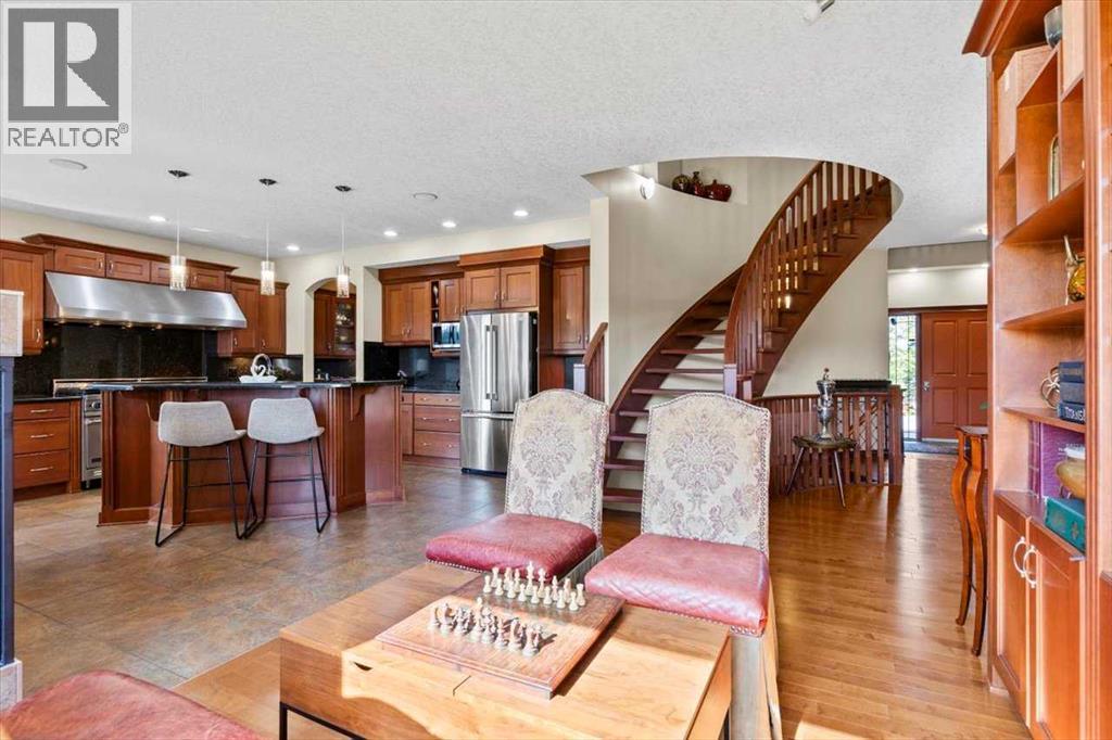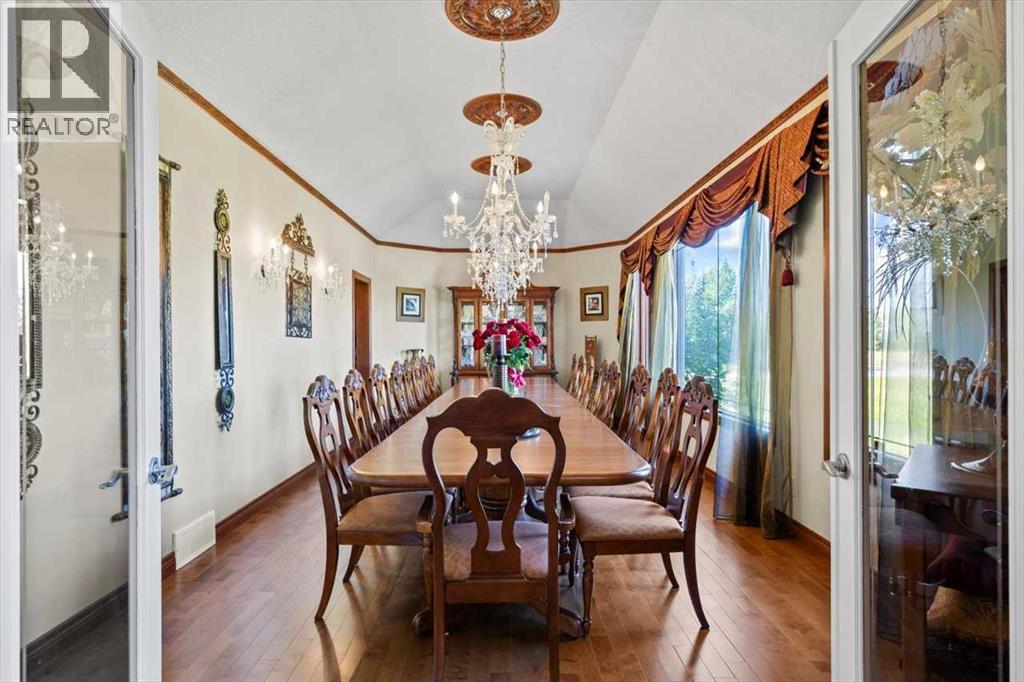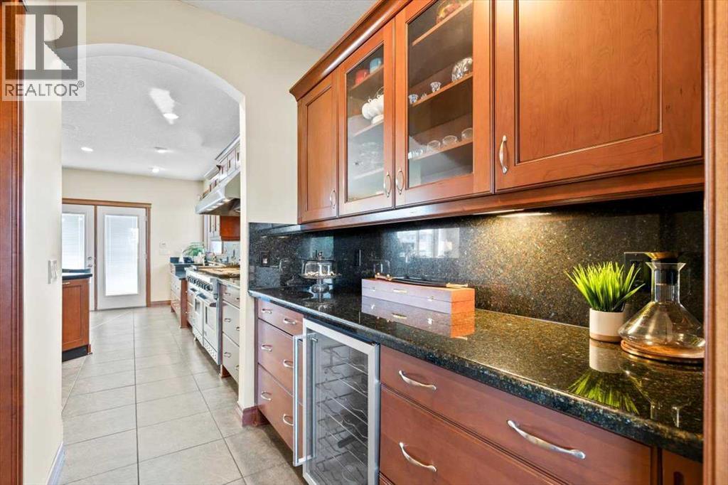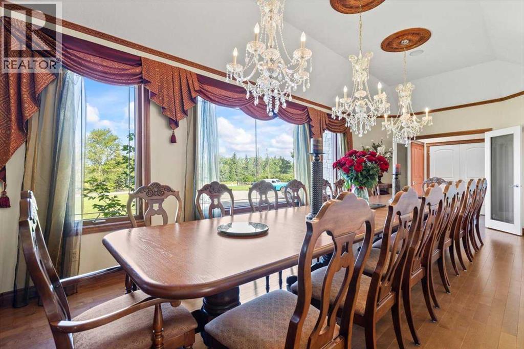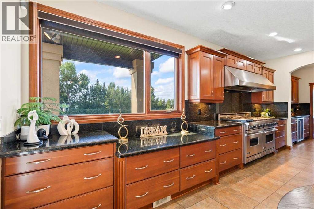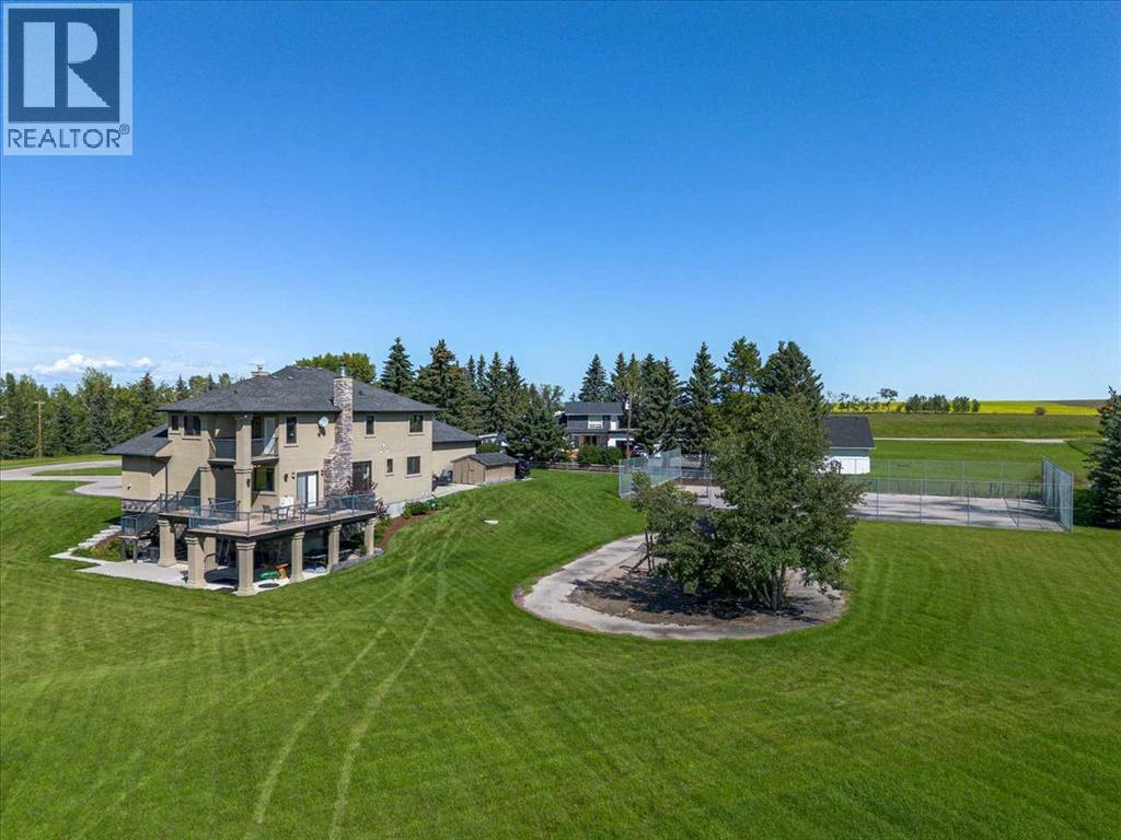 ELEGANCE, SPACE AND CONVENIENCE! DON'T MISS THIS CUSTOM BUILT 6-bedroom, 5-bathroom ESTATE HOME on 1.98 acres just minutes from the city and the sought-after community of SPRINGBANK. With more than 5,400 square feet of DEVELOPED LIVING SPACE, with a FULLY FINISHED WALKOUT BASEMENT, and a QUADRUPLE ATTACHED GARAGE with heated flooring, this home was designed for exceptional everyday living and unforgettable entertaining.At the heart of the home is a true CHEF'S KITCHEN featuring two VIKING RANGES — one dual-fuel oven and stove and one gas oven and stove, an upgraded 600 CFM HOOD FAN with interlocking and make-up air, STAINLESS STEEL APPLIANCES, GRANITE COUNTERTOPS, an oversized island, abundant REFRESHED CHERRY WOOD CABINETRY, BUTLERS KITCHEN with beverage fridge, and a LARGE WALK-IN PANTRY with a deep freezer. The enormous FORMAL DINING ROOM offers the perfect setting for holiday gatherings and celebrations, while refined architectural details, including SWEEPING CURVED STAIRCASES throughout the main level. The main floor is finished in hardwood and tile, GUEST BEDROOM WITH ENSUITE, and a huge mudroom with a tiled DOG WASH STATION keeps life organized and effortless. UPSTAIRS are 4 SPACIOUS BEDROOMS and convenient laundry room with sink. The PRIMARY BEDROOM features two walk-in closets, 5 piece ensuite and it's own PRIVATE BALCONY. Step outside to a LARGE UPPER DECK and a COVERED LOWER PATIO with electrical rough-in for hot tub or sauna that opens to your park-like yard, enhancing indoor-outdoor living and entertaining throughout the seasons. The fully developed walkout basement with heated flooring is an entertainer’s dream, featuring an spacious family room and a FULL BAR complete with a draft beer fridge and tap, plus a second dishwasher and refrigerator. A generous sized office or recreation room, a SIXTH BEDROOM, and an impressive SIX PIECE BATHROOM complete this level, ensuring plenty of space for work, guests, and family. THE WHOLE INTERIOR OF THE HOUSE HAS BEEN FRESHLY PAINTED!Outdoors, the nearly two-acre lot provides remarkable privacy with distance from neighbors. An irrigation system, large shed, dedicated PLAYGROUND plus a TENNIS / BASKETBALL COURT invites playful activity, while a cedar slide, swing-set, tower, monkey bars, and trampoline offer year-round recreation for kids. The property also includes a water softener, two dishwashers (kitchen and bar), and two refrigerators (kitchen and bar), Weber Genesis Natural Gas BBQ, as well as a deep freezer in the pantry to support your food storage needs. There are 3 schools nearby with school bus service close to the home. An EXCEPTIONAL PROPERTY offering the best of country-style space with city convenience. DON'T MISS THIS EXCELLENT SPACIOUS FAMILY HOME! ALL HOUSE PLANS AVAILABLE. BOOK YOUR SHOWING TODAY! (id:55577)