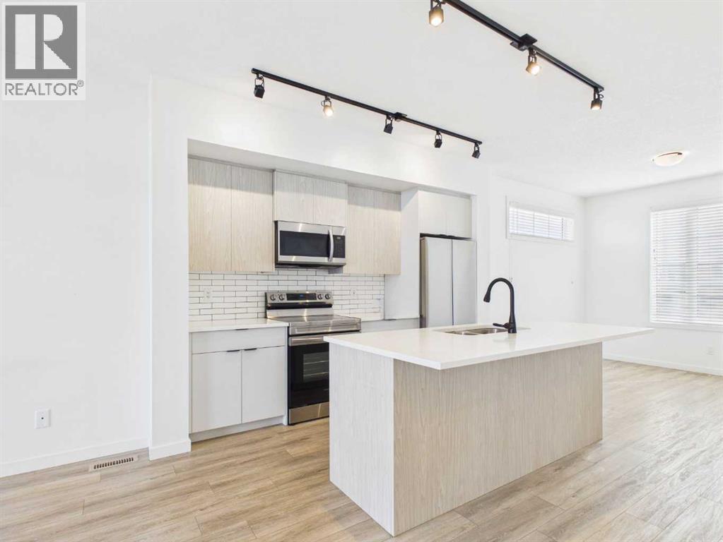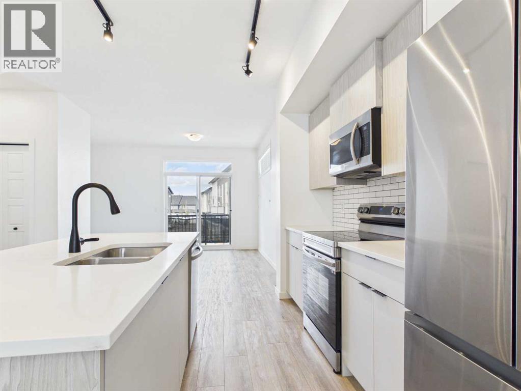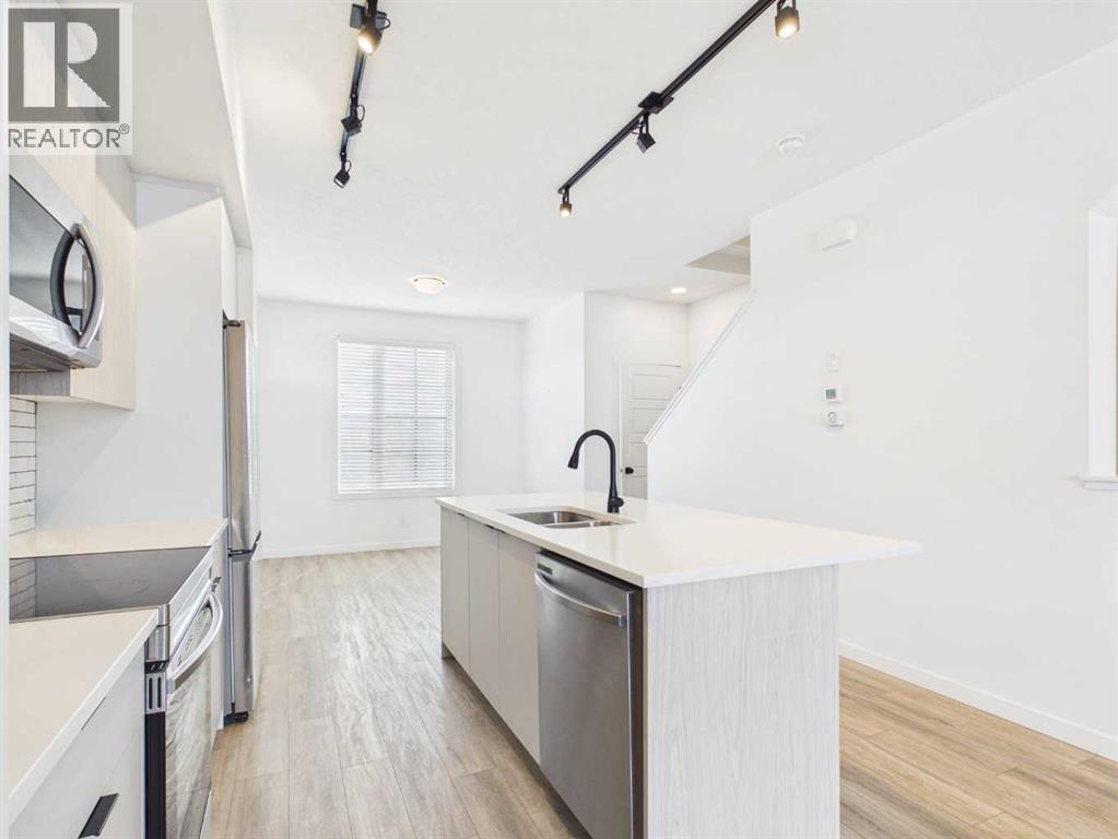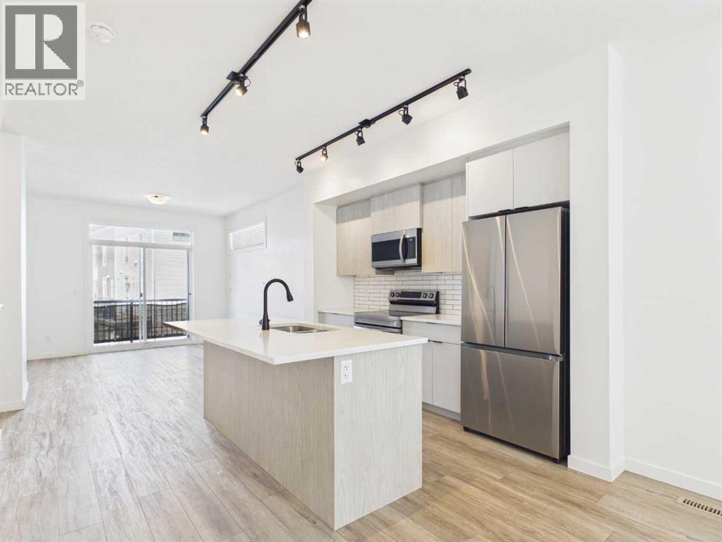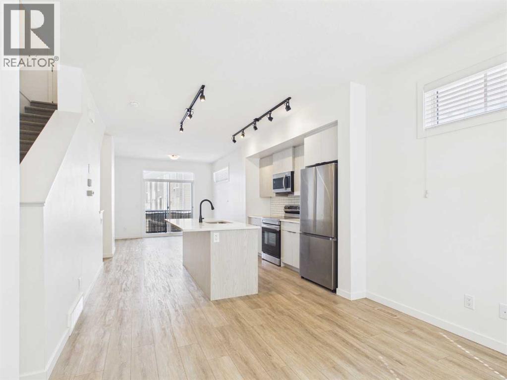 Welcome to this beautifully maintained end-unit townhouse in the desirable community of Walden. Built in 2022 and showing very well, this home offers 1279 sq. ft. of thoughtfully designed living space with 3 bedrooms, 2 full bathrooms, a convenient half bath, and a tandem garage with room for 2 vehicles or extra storage, plus driveway parking. The bright, open-concept main level features upgraded LVP flooring on main and upper floors ,access to a large north-facing balcony, creating a comfortable outdoor space with excellent shade during the summer months. The third bedroom offers flexibility for a home office, study area, or guest space. Ideal for first-time buyers, professionals, downsizers, or investors, this property combines low-maintenance living with everyday convenience. Located near Walden’s parks, pathways, ponds, and green spaces, and just minutes from the Township shopping district at 210 Avenue SE and Macleod Trail, you will enjoy easy access to groceries, restaurants, coffee shops, fitness, banking, health services, pet stores, and more.A few nearby amenity examples you can mention, if you want a second version with more specifics, are grocery, dining, shopping, fitness, banking, health and beauty, family and pet services at Township.first-time buyer, downsizers , or investor, this is an exceptional opportunity you won’t want to miss. (id:55577)