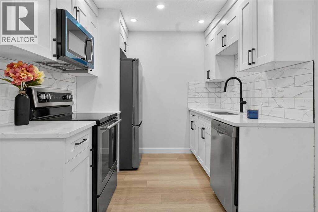 Welcome to Unit 25 at 6100 4 Avenue NE in Marlborough Park, fully renovated offering 3 bedrooms, 2 bathrooms and a fully developed basement. The main floor boasts a bright kitchen and dining room, with electric stove, dishwasher, microwave hood fan, brand new kitchen cabinets and quartz countertop. The living room has been updated with a charming TV stations with lots of storage space and decoration shelves. It has a sliding door opening out to the deck and back yard perfect for morning coffee or summer BBQ (gas line included). Upstairs you will find 3 good-sized bedrooms and 1 full bathroom, all brand new from doors, closets to to washroom sink, bathtub, toilet, mirrors. The basement was fully developed with brand new carpet, 3pc bathroom, a big den, laundry and utilities room. Nestled in Madigan village complex, being well-managed, backing on to St Martha school and a large green space, this home is perfect for buyers looking to grow their families. Two assigned parking stalls number 25 right at door, low condo fee. This move-in-ready home combines comfort, convenience, and value in a family-friendly neighborhood. Whether you're starting out or expanding your portfolio, Unit 25 is a smart buy with lasting appeal. Don't miss out! Arrange a viewing now. (id:55577)