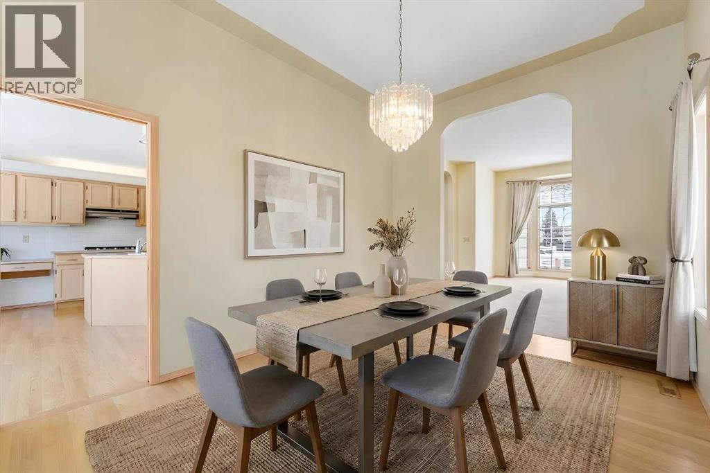 Beautiful 5 bedroom walkout bungalow, perfectly situated on a large pie-shaped lot backing onto a park. Tucked away on a quiet cul-de-sac street, this home is an ideal setting for families seeking space, privacy, and room to grow. The main floor is bright and inviting, with large picture windows and high ceilings creating an open, airy feel throughout. A spacious living room with a bay window flows into the formal dining area—perfect for hosting family gatherings or holiday dinners. The kitchen is both functional and welcoming, featuring generous cabinetry, ample counter space, and a central island ideal for casual seating. Just off the kitchen, the breakfast nook opens onto a sunny balcony—an ideal spot for morning coffee overlooking the yard. Step outside to the upper deck, complete with stairs leading down to the backyard—perfect for summer barbecues or unwinding in the evening sun.The primary bedroom offers a quiet escape with vaulted ceilings, dual closets, and direct access to a 4-piece cheater ensuite illuminated by a skylight. A second bedroom on the main floor provides flexibility for a guest room, home office, or additional living space. There is also a unique front section of the home featuring a separate living area, small kitchenette, bedroom, and 3-piece ensuite bath—offering excellent potential for kids, extended family, guests, or as an air bnb. The fully developed walkout basement adds even more living space, with two additional bedrooms, a full 4-piece bathroom, a bright open kitchen, and a cozy family room anchored by a gas fireplace. With its own entrance and direct access to the patio and backyard, this level offers excellent versatility for multi-generational living or as a separate illegal suite. Additional highlights include two gas fireplaces, hardwood flooring, a double attached garage, and recent updates such as two furnaces (2023) and a hot water tank (2021). Located in the highly sought-after Hamptons community, this home is just minute s from top-rated schools, parks, walking paths, tennis courts, and the Hamptons Golf Course. Shopping and amenities are close by, with easy access to Crowfoot Centre, the LRT, the University of Calgary, and major routes throughout the city. This is a fantastic opportunity for families looking for space, safe community and a great neighbourhood, on one of the Hamptons’ most desirable streets, with flexibility for years to come. (id:55577)