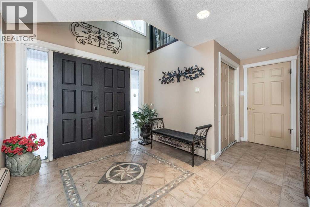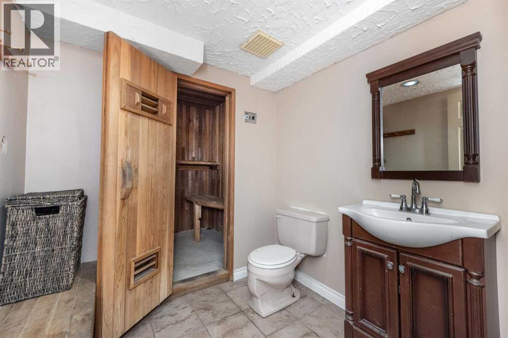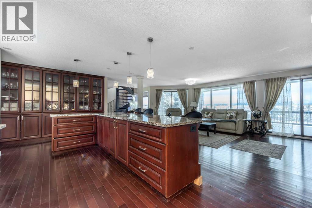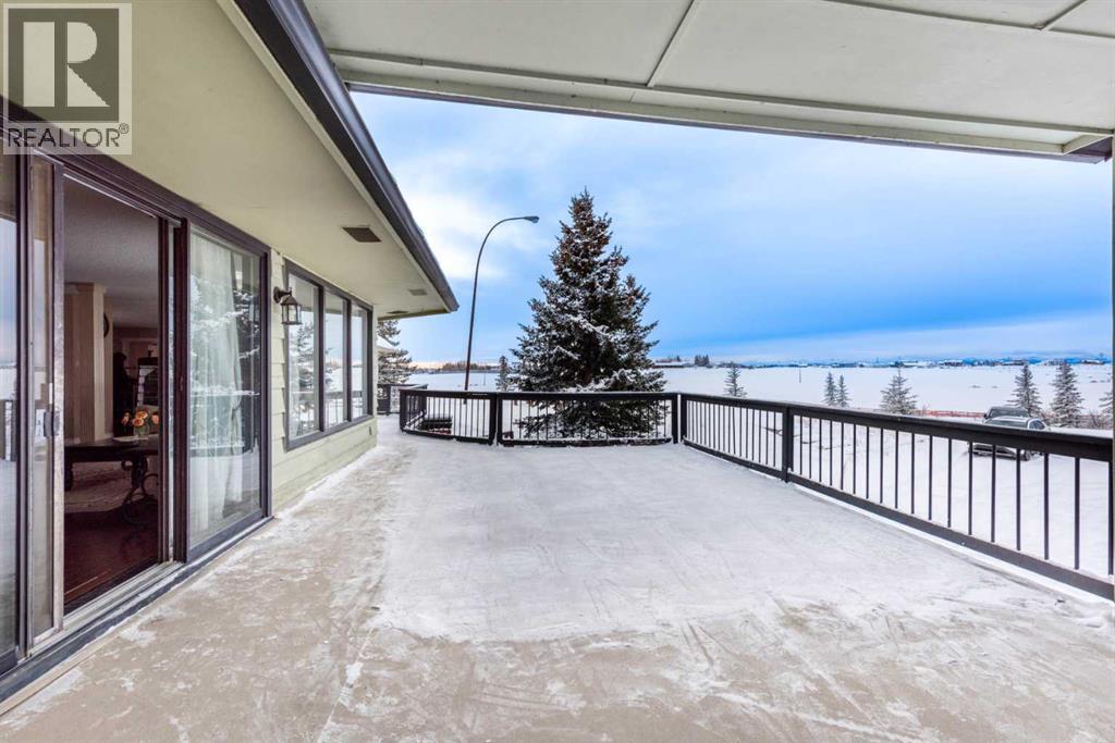 Rare opportunity in sought-after North Springbank! Nearly 4 acres perched on a picturesque knoll with 360° mountain, valley, and city views. This peaceful, private acreage offers gently rolling, fenced land—ideal for families, hobbyists, anyone seeking space, or the perfect lot to build your dream home—all just minutes from the upcoming Bingham Crossing Mall, new Costco, top schools, Springbank Airport, and Springbank Links Golf Course. This reversed walkout, lofted hillside bungalow features a bright open layout, a sunken living room with brick fireplace, formal dining room, spacious kitchen with island, large family room with second fireplace, and 3 bedrooms on the main level. A unique upper office loft accessed by a circular staircase adds extra versatility. Enjoy the massive partially covered west-facing deck plus an additional east deck and balcony. A 3-car heated attached garage with covered carports provides ample parking, along with room for RVs and equipment. The 40’x47’ metal Quonset, offers excellent workshop, storage, or hobby use. This is a prime Springbank location offering quiet country living with outstanding convenience and exceptional long-term potential. (id:55577)