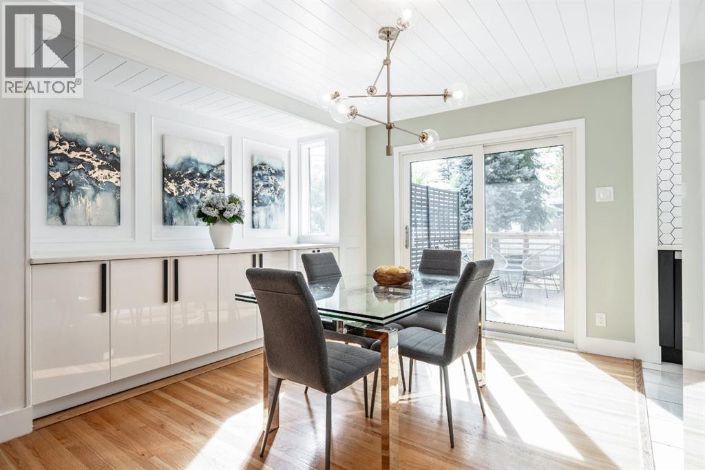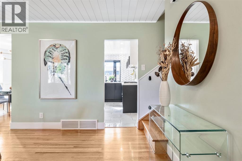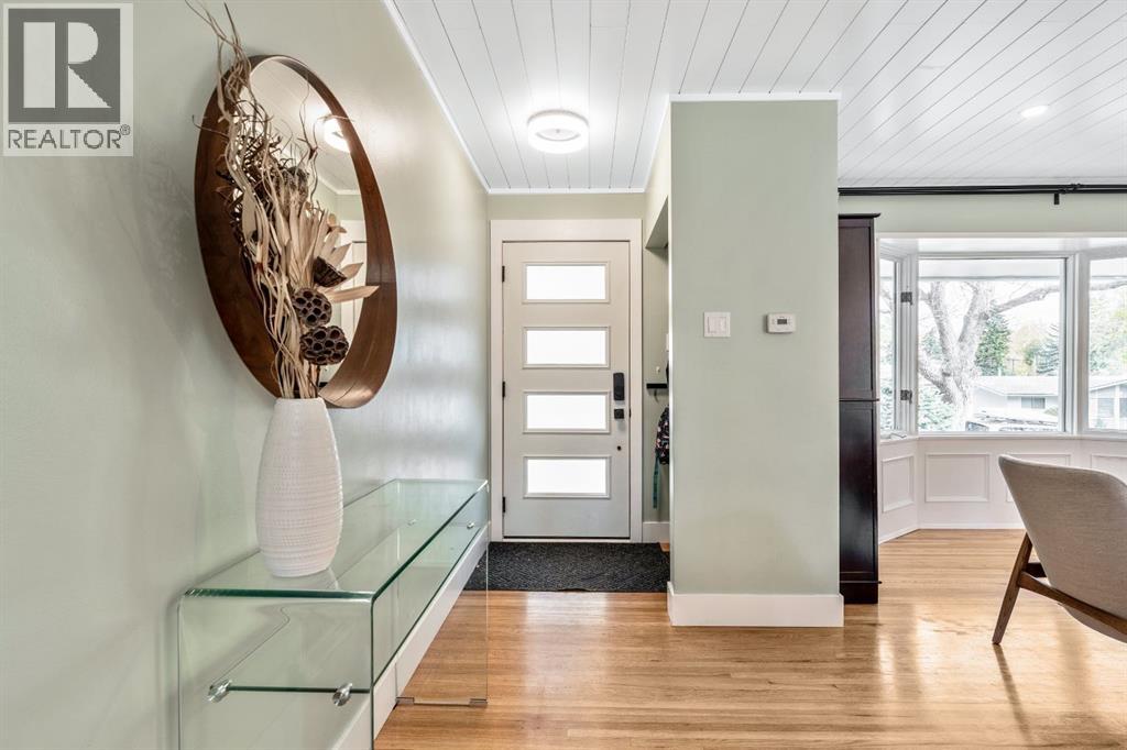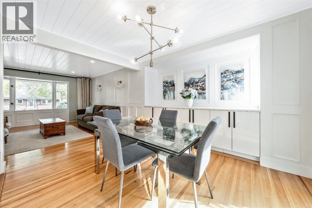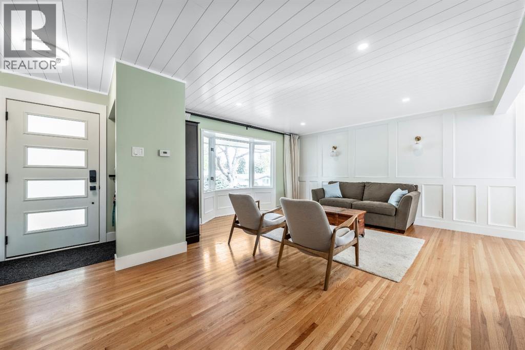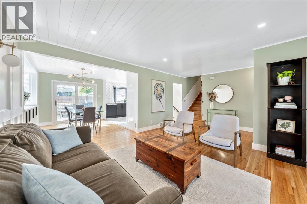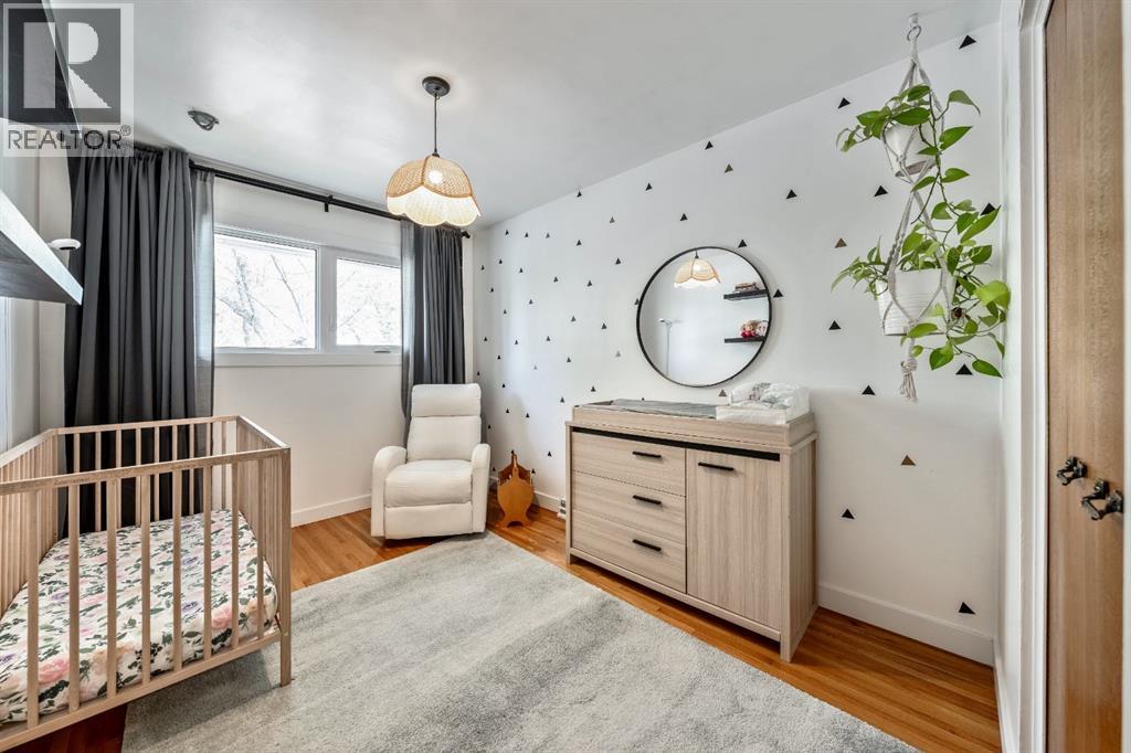 Charleswood Charmer with Updates! | Nestled on a peaceful, tree-lined street right in the heart of Charleswood, this beautifully updated four-level split is the perfect mix of charming character, modern convenience, and a welcoming, family-friendly community. With over 1,950 square feet of thoughtfully developed space, this home has been lovingly upgraded over the years to be both warm and stylish, and mechanically efficient. Step inside and you'll be greeted by gorgeous hardwood floors, rustic shiplap ceilings and wood panelled walls, and a bright, open-plan living space that feels inviting and effortlessly livable. The sleek designer kitchen is a dream for busy family life, with two-tone modern cabinetry, quartz countertops, stainless steel appliances, and plenty of counter space. The adjacent dining and living areas are both spacious and flexible, filled with natural light that creates a cheerful and homey vibe. Upstairs, you’ll find three comfortable bedrooms and a beautifully updated family bathroom. The lower level has a versatile fourth bedroom (or home office) along with an updated three-piece bathroom and fabulous dual purpose laundry-mudroom that keeps everything organized and the mess at bay. Check out the cozy family room in the lower level, with a stylish electric fireplace complimented by a wooden slat wall, and additional flexible space that’s perfect as a play space or exercise area. Out back, the south facing backyard feels like your own private oasis—complete with mature, fruit-bearing trees, lush landscaping, and enough space for outdoor fun and entertaining. The home also features a heated double detached garage in addition to the single attached garage, giving you plenty of parking and storage options. Located in one of Calgary’s most desirable NW neighbourhoods, you’re just minutes from the University, K-9 schools, parks, pathways, and all the amenities you could need. Don’t miss your chance to own this beautifully updated charmer in ever-pop ular Charleswood! (id:55577)
