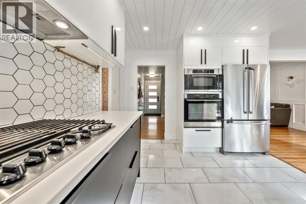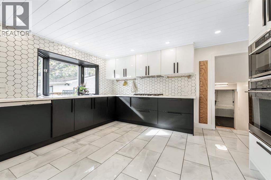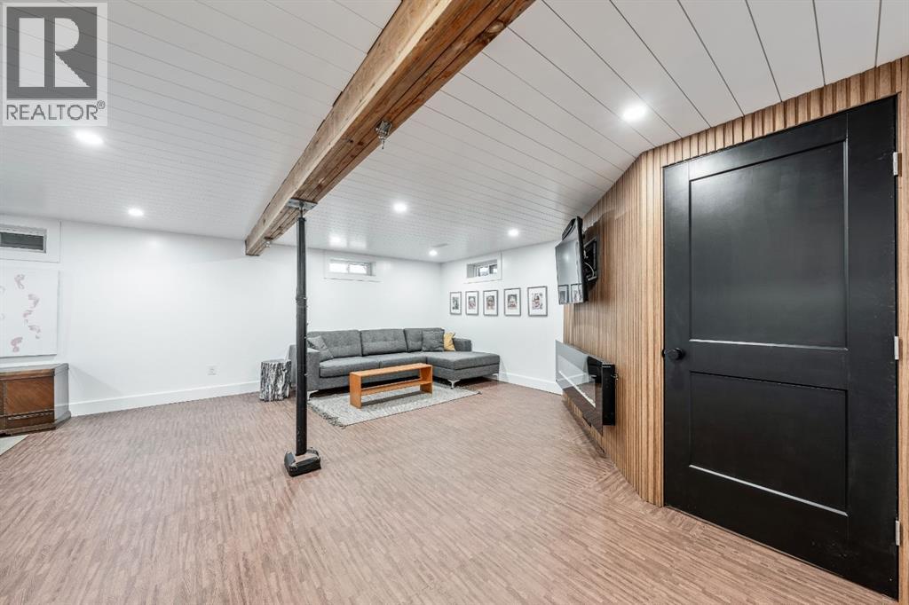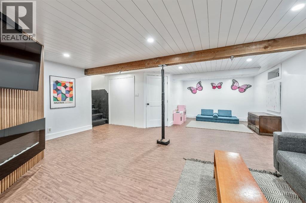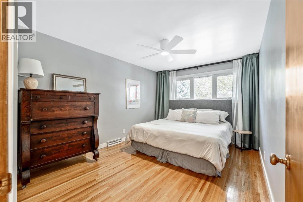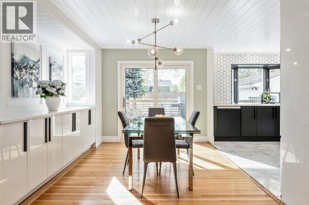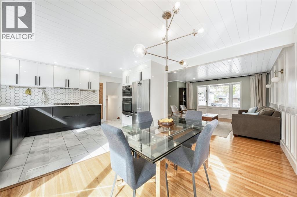 Charleswood Charmer with Updates! | Nestled on a peaceful, tree-lined street right in the heart of Charleswood, this beautifully updated four-level split is the perfect mix of charming character, modern convenience, and a welcoming, family-friendly community. With over 1,950 square feet of thoughtfully developed space, this home has been lovingly upgraded over the years to be both warm and stylish, and mechanically efficient. Step inside and you'll be greeted by gorgeous hardwood floors, rustic shiplap ceilings and wood panelled walls, and a bright, open-plan living space that feels inviting and effortlessly livable. The sleek designer kitchen is a dream for busy family life, with two-tone modern cabinetry, quartz countertops, stainless steel appliances, and plenty of counter space. The adjacent dining and living areas are both spacious and flexible, filled with natural light that creates a cheerful and homey vibe. Upstairs, you’ll find three comfortable bedrooms and a beautifully updated family bathroom. The lower level has a versatile fourth bedroom (or home office) along with an updated three-piece bathroom and fabulous dual purpose laundry-mudroom that keeps everything organized and the mess at bay. Check out the cozy family room in the lower level, with a stylish electric fireplace complimented by a wooden slat wall, and additional flexible space that’s perfect as a play space or exercise area. Out back, the south facing backyard feels like your own private oasis—complete with mature, fruit-bearing trees, lush landscaping, and enough space for outdoor fun and entertaining. The home also features a heated double detached garage in addition to the single attached garage, giving you plenty of parking and storage options. Located in one of Calgary’s most desirable NW neighbourhoods, you’re just minutes from the University, K-9 schools, parks, pathways, and all the amenities you could need. Don’t miss your chance to own this beautifully updated charmer in ever-pop ular Charleswood! (id:55577)