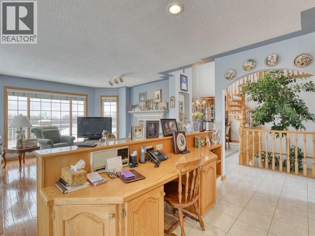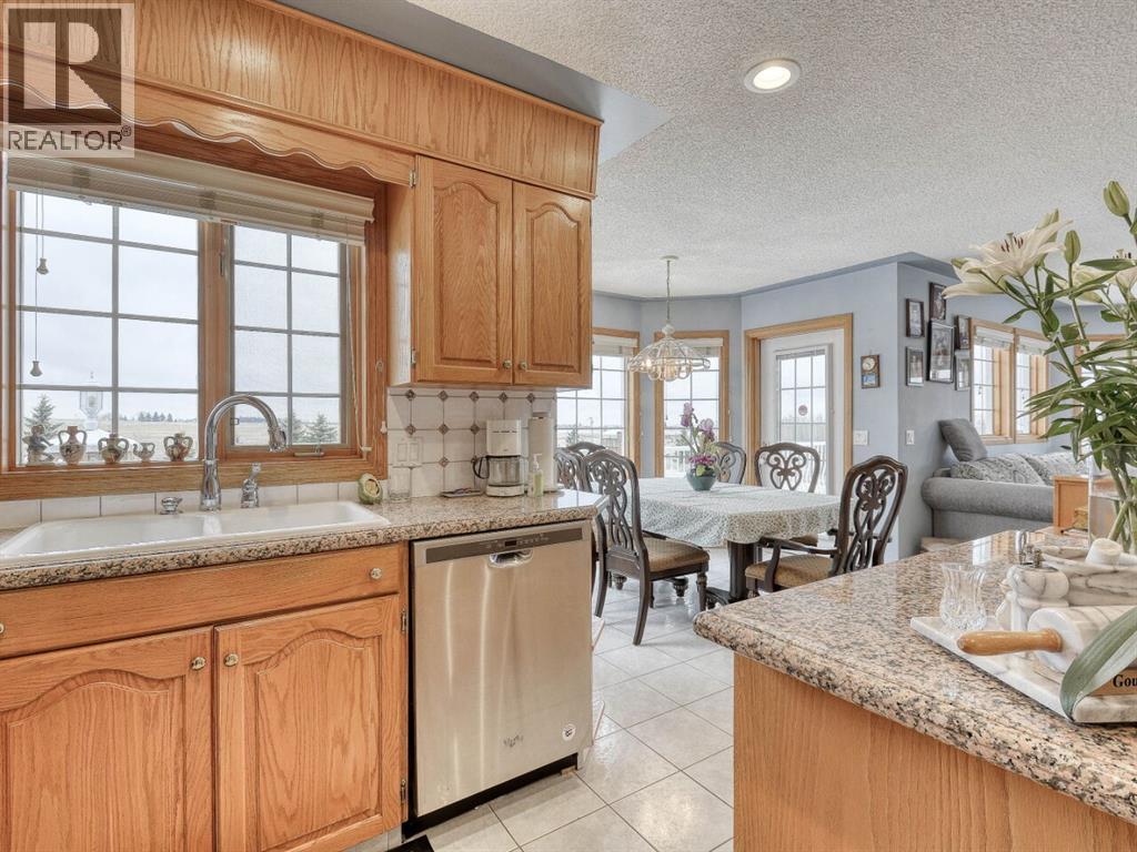 Immaculate Home close to Calgary situated on a sub-dividable 15.99 acre lot surrounded by beautiful trees and landscaping. Italian inspired construction with predominant concrete throughout and a cold room cellar that's naturally cold all year round without mechanical intervention. The 3 Bedroom (two above grade) open concept Walkout Home is well illuminated and features a beautiful kitchen, eating area / dining room, upper loft flex room / floor, gas fire place on main floor, wood burning fire place on lower floor, split access from the garage to the lower level and main level, laundry roughed in upstairs and full laundry downstairs, wet bar downstairs, second kitchen on lower floor and den. Incredible attached heated greenhouse and enclosed patio in the back. (id:55577)