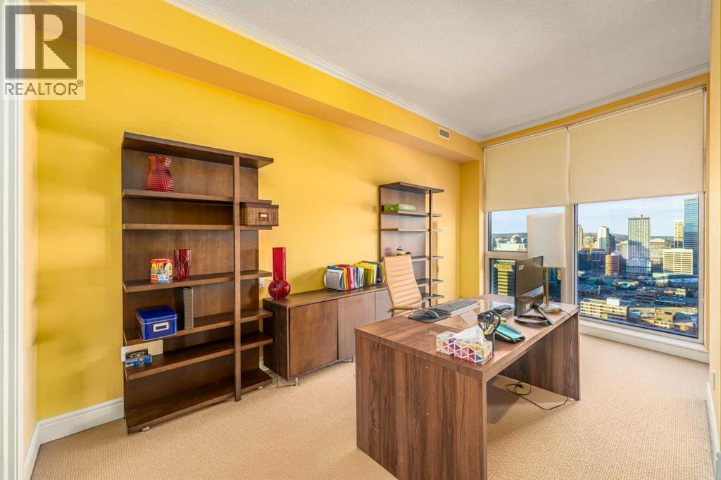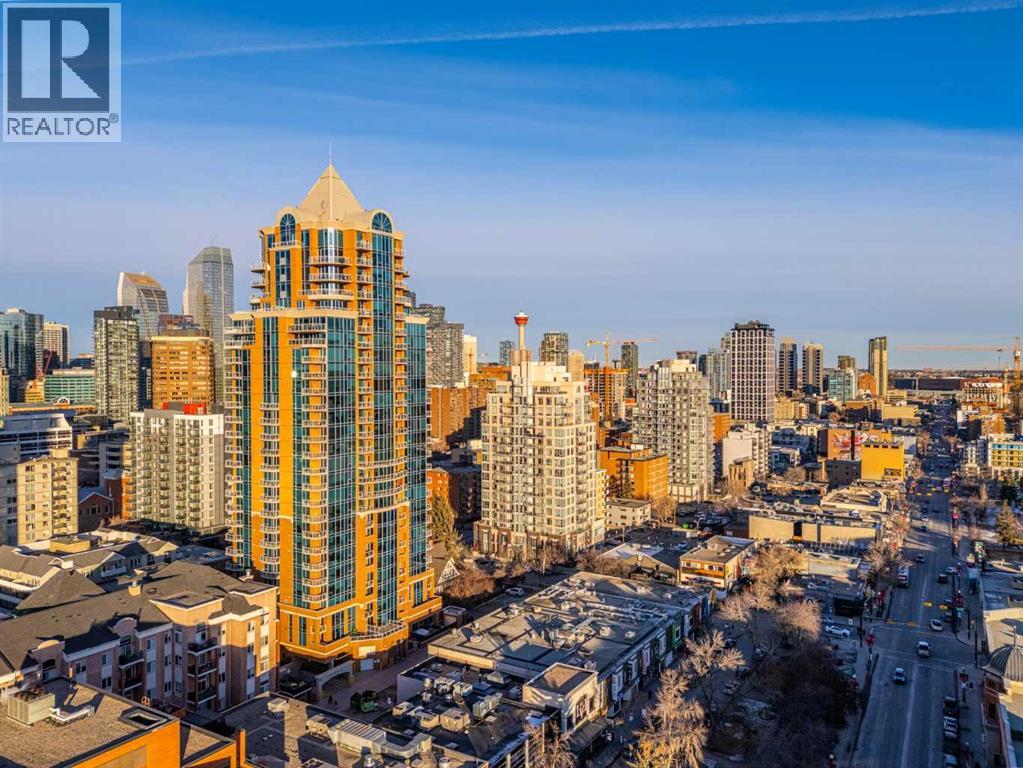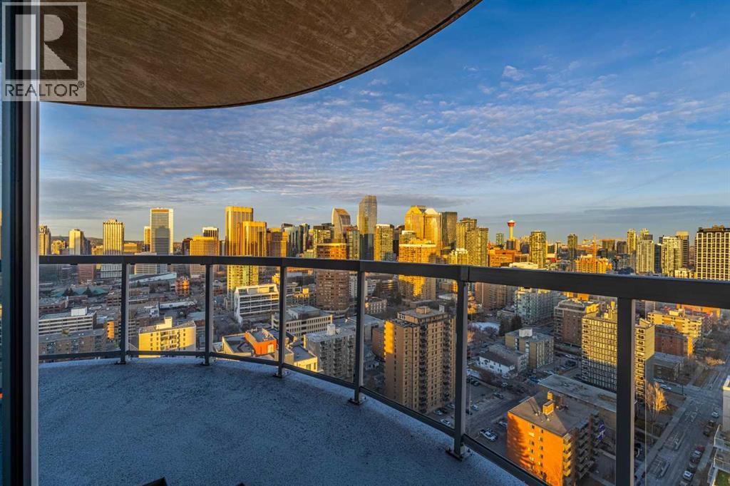 A rare opportunity in the Beltline offering unobstructed, 180-degree sweeping views from four private balconies. Privately positioned on a floor shared with only one other residence, this 3-bedroom, 2,300 sq. ft. home combines expansive living spaces with exceptional quality. The primary suite exceeds an impressive 200 sq ft, featuring a luxurious five-piece ensuite and a generous walk-in closet. Two additional bedrooms, two full bathrooms, a powder room, and a den provide flexibility and comfort for family or guests. Constructed with quadruple-glazed windows, 8-inch concrete floors, and double-layered drywall, the home offers superior soundproofing, privacy, and comfort. Interior highlights include a gas fireplace framed by stunning city views, dual heating zones with air conditioning, Hunter Douglas automated window coverings, and a gourmet open-concept kitchen equipped with Wolf and Bosch appliances. The four private balconies provide uninterrupted views spanning from east to west, capturing both the downtown skyline and the mountains. Enjoy city events such as the Stampede fireworks right from your balcony. Included are two titled side-by-side P1 parking stalls conveniently located near the elevator, featuring upgraded EV chargers. Two storage lockers are also included, and the unit can be offered fully furnished. The Montana offers full concierge service and a level of construction and privacy that continues to set it apart. Ideally located in the heart of the Beltline—home to Calgary’s finest dining, culture, and entertainment—this residence defines elevated urban living. (id:55577)