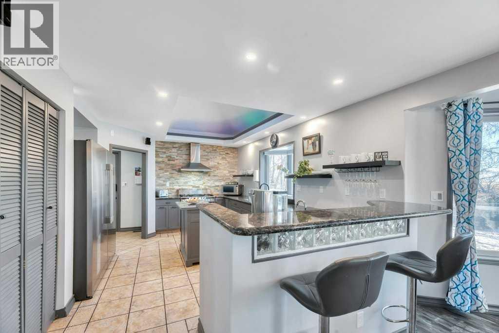 A rare property with one-of-a-kind home. This fully wooded acreage is where space, privacy, and everyday comfort come together—just 20 minutes from Strathmore. Set on 1.8 acres, this property offers the perfect blend of country living with the convenience busy families need. This walk-out bungalow with a loft offers 2,997 sq ft of total developed living space and a layout designed to grow with your family. With five bedrooms, there’s room for kids, guests, home offices, and hobbies. Vaulted ceilings, multiple skylights, and the open loft space flood the home with natural light and give it a bright, welcoming feel you’ll notice the moment you walk in. A spiral staircase adds character and connects the spaces in a way that feels fun, functional, and far from cookie-cutter. Outside is where family memories are made. A deck that wraps the entire home creates endless options for outdoor living—morning coffee, family dinners, kids playing, or entertaining friends. A hot tub is included, offering a private place to unwind. The acreage is perfectly set up for both play and practicality. Equipped with air conditioning for year-round comfort, a detached double garage, a tack shed or playhouse, and a root cellar cold room for extra storage. The mature trees provide privacy while still leaving plenty of open space for kids to explore and enjoy the outdoors. If you’ve been dreaming of more room to breathe, a safe place for your family to grow, and a home with real personality—this property delivers. (id:55577)