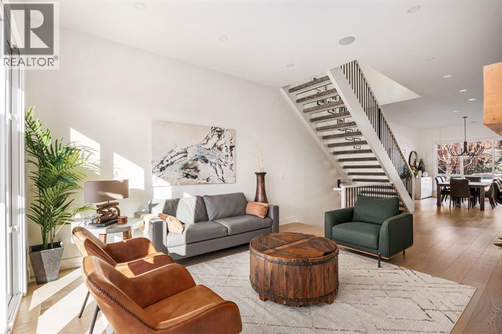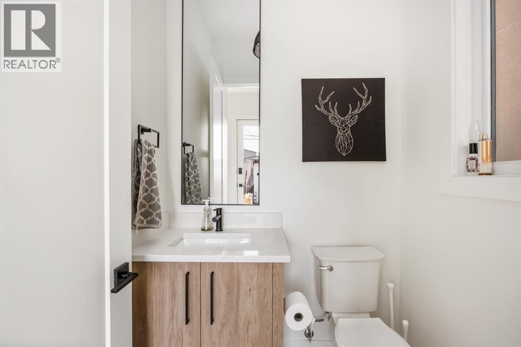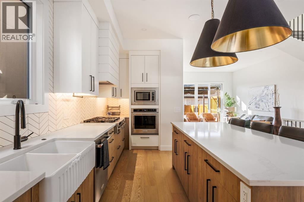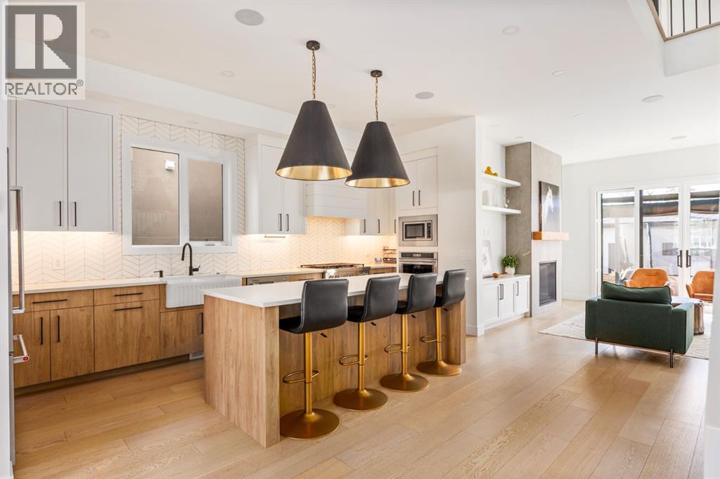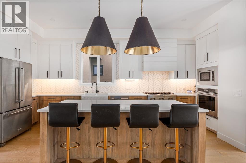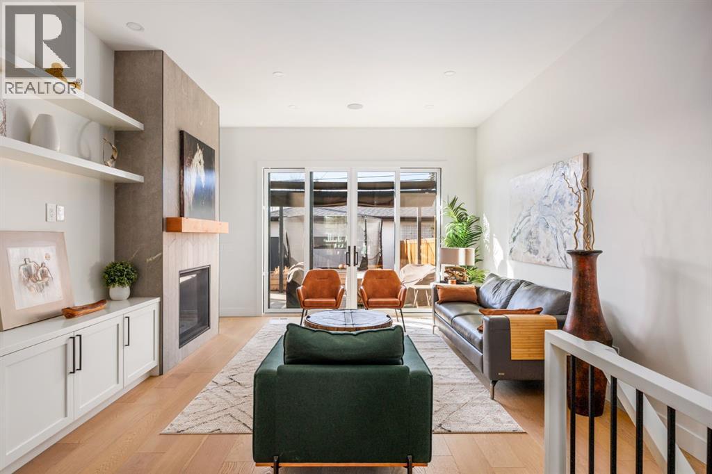 Welcome to this exceptional infill in the inner-city community of Killarney. Built in 2023, this executive two-storey residence is situated on a beautiful tree lined street and showcases a fully landscaped, west-facing yard with built in planters and covered deck, and a detached two-car garage.Thoughtfully designed for both family living and upscale entertaining, the home features over 2,800 sq.ft. of living space. The entryway leads to a spacious dining room, a beautiful contemporary kitchen and a sun filled living room with tiled fireplace. The main floor also includes convenient rear entrance with a well designed mudroom and powder room. Upstairs, the expansive primary suite is accompanied by two additional bedrooms, a generous laundry room, and a family bath. The fully developed lower level offers a large recreation area with wet bar and beverage fridge, a fourth bedroom, a full bathroom and generous storage. Luxury finishes and thoughtful details are found throughout, and every add-on has already been installed, including Kitchen Aid Pro appliances, air conditioning, outdoor smart lights, smart door locks, garage heater and water softener. This extraordinary home is within walking distance to the shops and restaurants of 26th Avenue and 37th Street, and is located in the catchment area for some of Calgary’s top public and seperate schools. (id:55577)