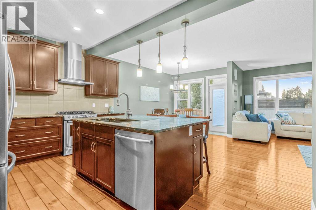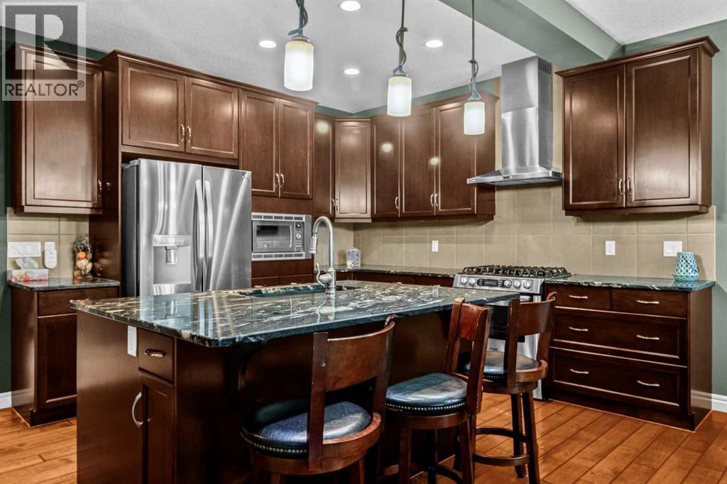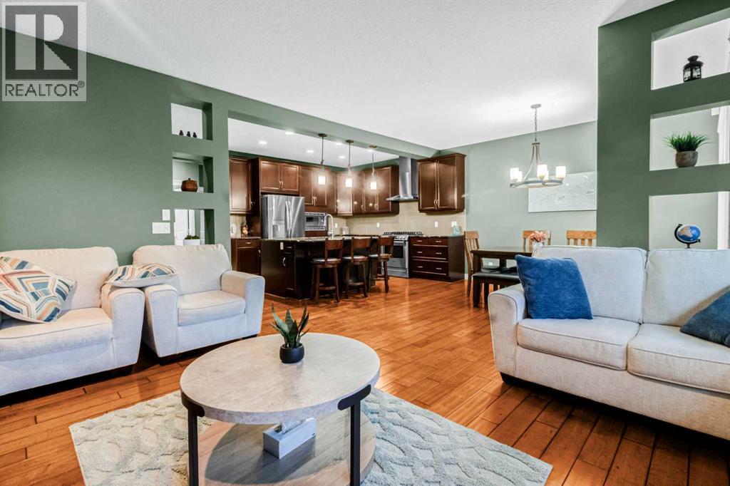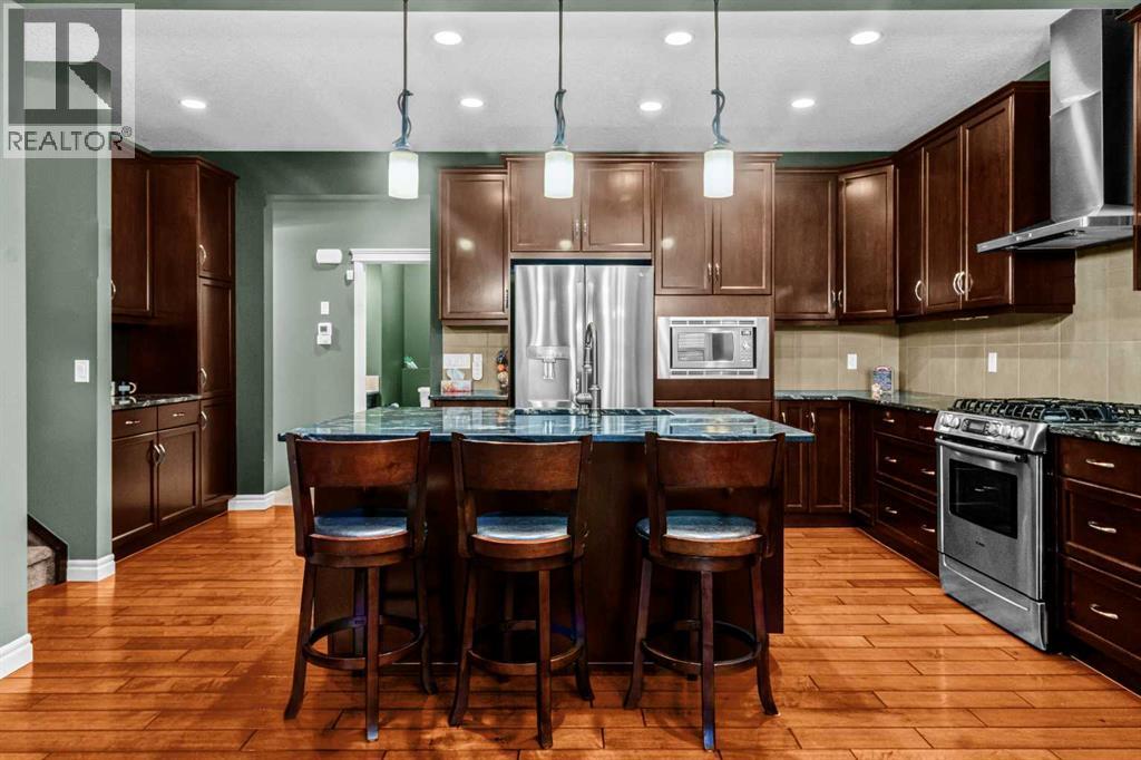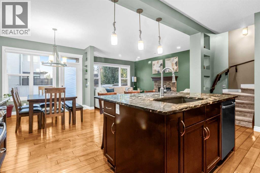 A UNIQUE GEM! Welcome to luxury living in the heart of Hillcrest, one of Airdrie's most sought-after communities. As you step into this stunning 3-bedroom home, you are greeted by a grand foyer that opens onto a breathtaking open-concept main floor. The kitchen is a chef's dream! Designed to impress with elegant cabinetry, granite countertops, designer lighting, and premium appliances, including a built-in microwave and gas stove, all accented by a huge island with an eating bar. The ultimate culinary space for family bonding or stylish hosting. It effortlessly transitions into an open-concept layout that extends to the generous dining and living spaces, perfect for entertaining. Throughout the main floor, engineered hardwood flooring enhances the sense of flow and style. The dining room and living room feature huge windows, allowing for loads of natural light and a 9-foot ceiling throughout the main floor. The rear living room features a stacked stone-finished gas fireplace with a classic mantle, while the adjoining dining area boasts a patio door that opens to the sunny, south-facing backyard. Enjoy the low-maintenance backyard oasis featuring a custom concrete patio and lush artificial grass, both in front and back of the home – perfect for relaxing or entertaining. A smart walk-around layout connects seamlessly to the mudroom, convenient half bath, and attached garage. Upstairs, you will find a spacious bonus room with a vaulted ceiling and a wet bar, ideal for a media lounge or children's retreat. Three bedrooms, with the primary bedroom having a walk-in closet and a lavish spa-like five-piece ensuite bathroom. The laundry is conveniently located on the upper level, just beside the bedrooms. The unfinished basement comes with standard windows, complemented by roughed-in plumbing, and presents endless opportunities for your personalized touches. The home also offers additional upgrades, including central air conditioning and a water softener. This smoke-free, pe t-free move-in-ready home is situated just steps away from great schools, scenic walking pathways, shopping centers, restaurants, and playgrounds, offering the perfect balance of community, comfort, and accessibility. With quick access to Deerfoot Trail, CrossIron Mills, Amazon shipping depot, and The Airport. You’ll be well-connected to go anywhere you want to explore. Schedule your viewing today! (id:55577)